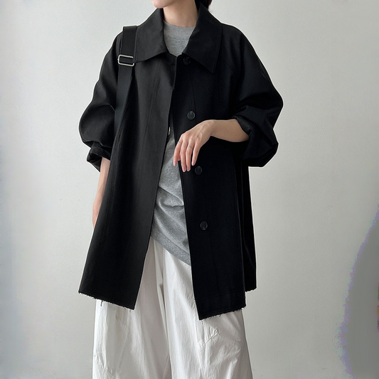 [外套] 日式簡約棉麻布料春秋奢華素色風衣【SN系列】