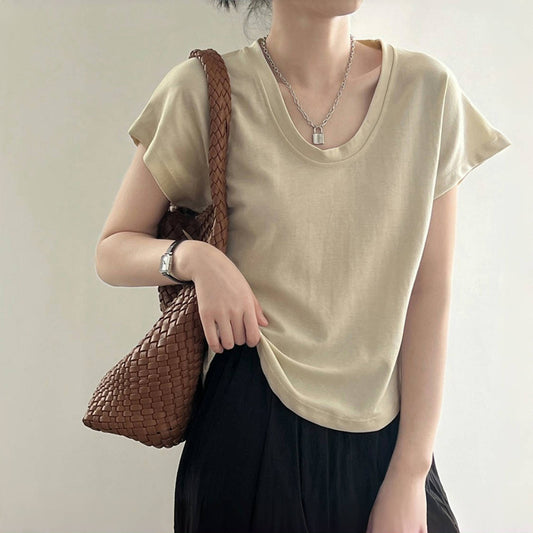 【上衣】夏季簡約U領修身寬袖短袖T卹【JZ系列】