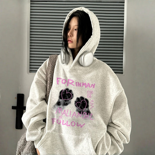 【トップス】ベロアプリント 春 秋 冬 プリント 裏起毛 フード付き パーカー【FCシリーズ】