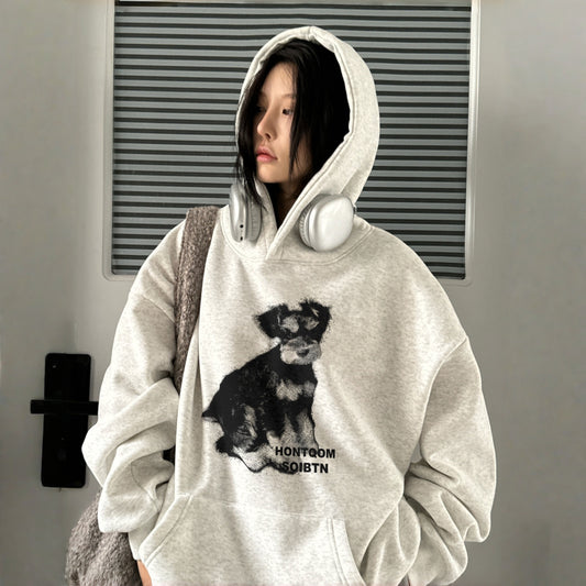 【トップス】レトロ感たっぷり ぼかしシルエットプリント ストリートゆるパーカー【FCシリーズ】
