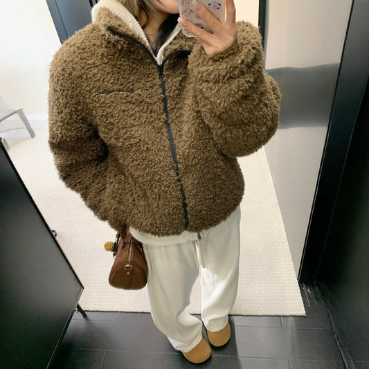 【アウター】レトロ感×バイカラー♡ボアジャケット 冬新作 レディース あったか【JZシリーズ】