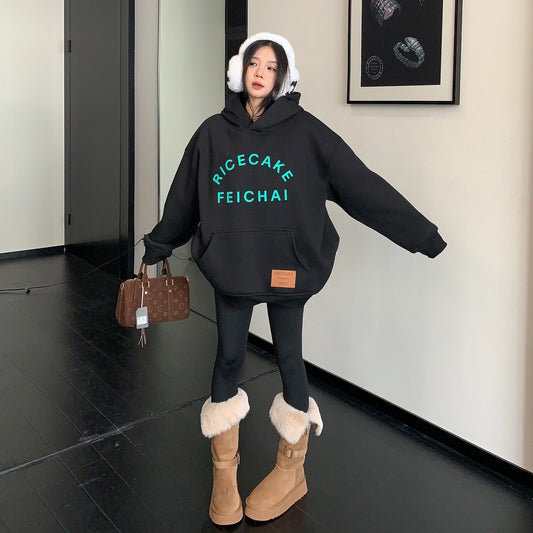 【トップス】💖カップルでも着られる!ワイドフーディ 裏起毛 重工パッチ&刺繍 レディース 冬新作【FCシリーズ】