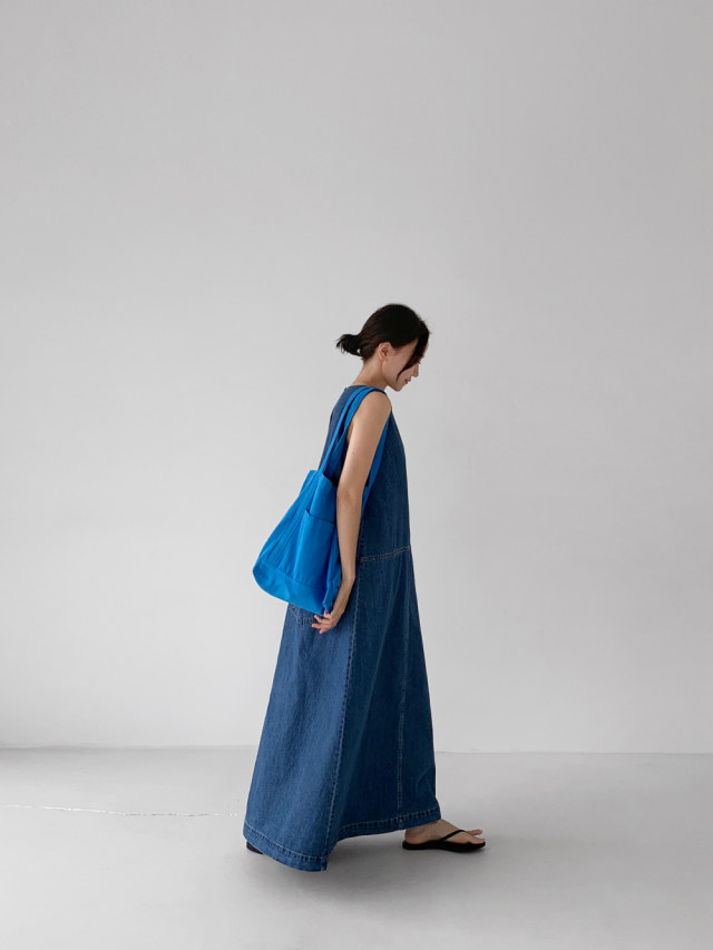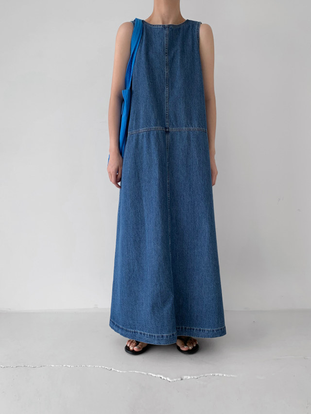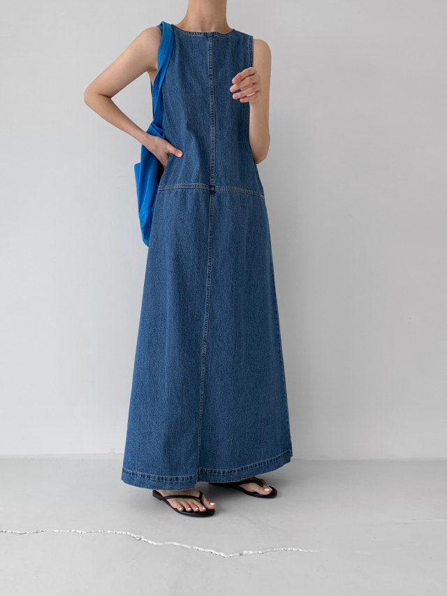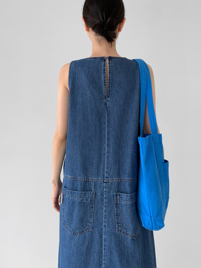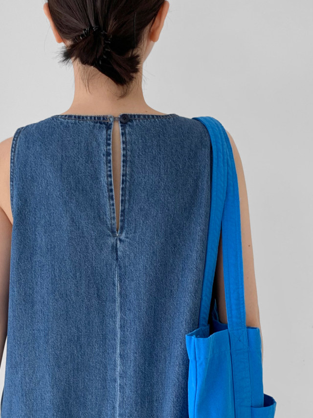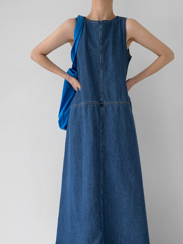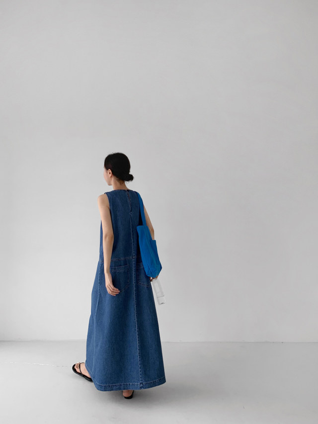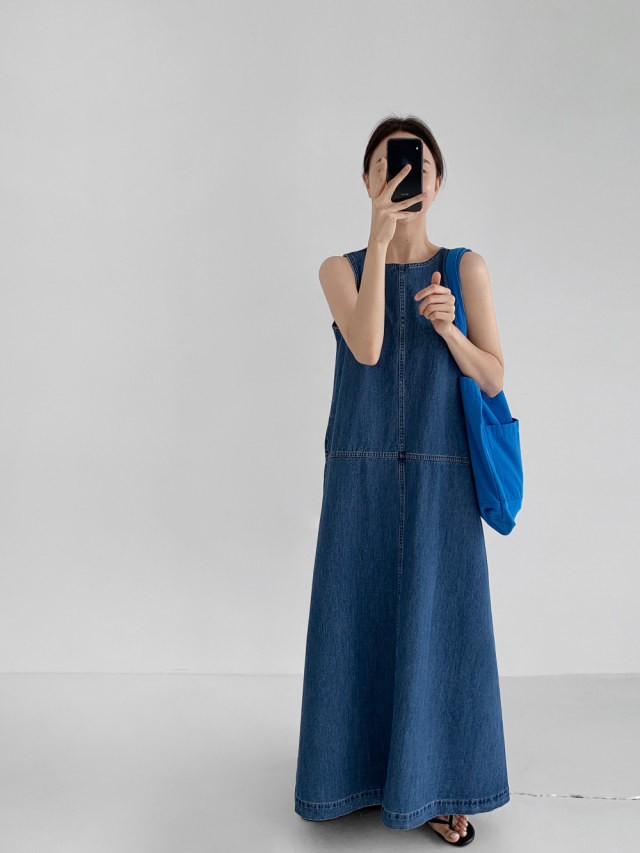 [洋裝] 夏季牛仔復古簡約寬鬆無袖連身裙