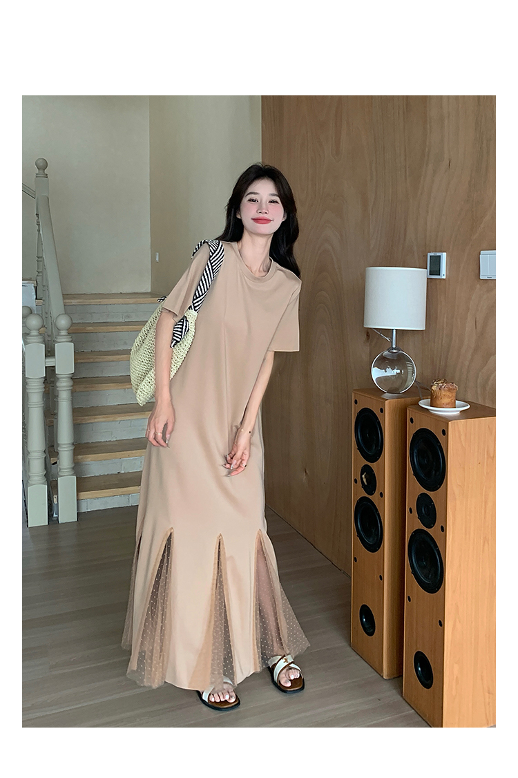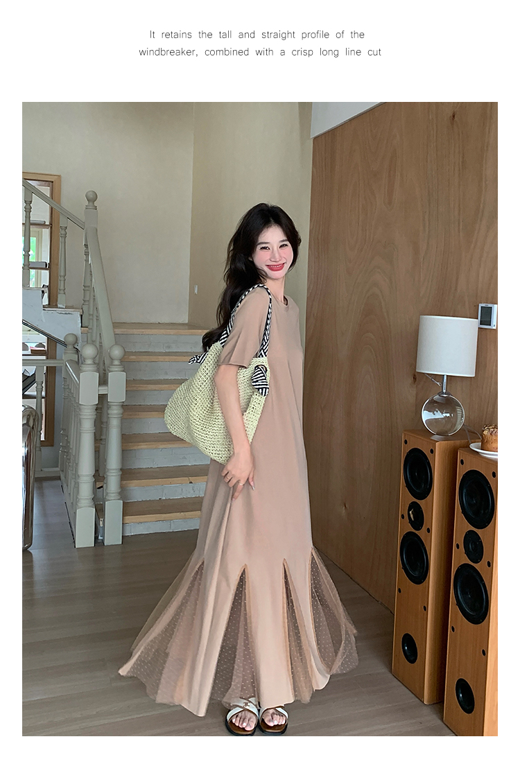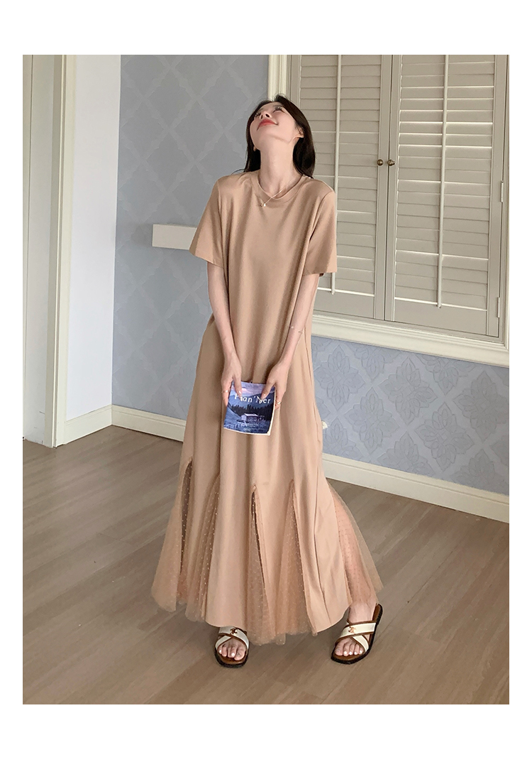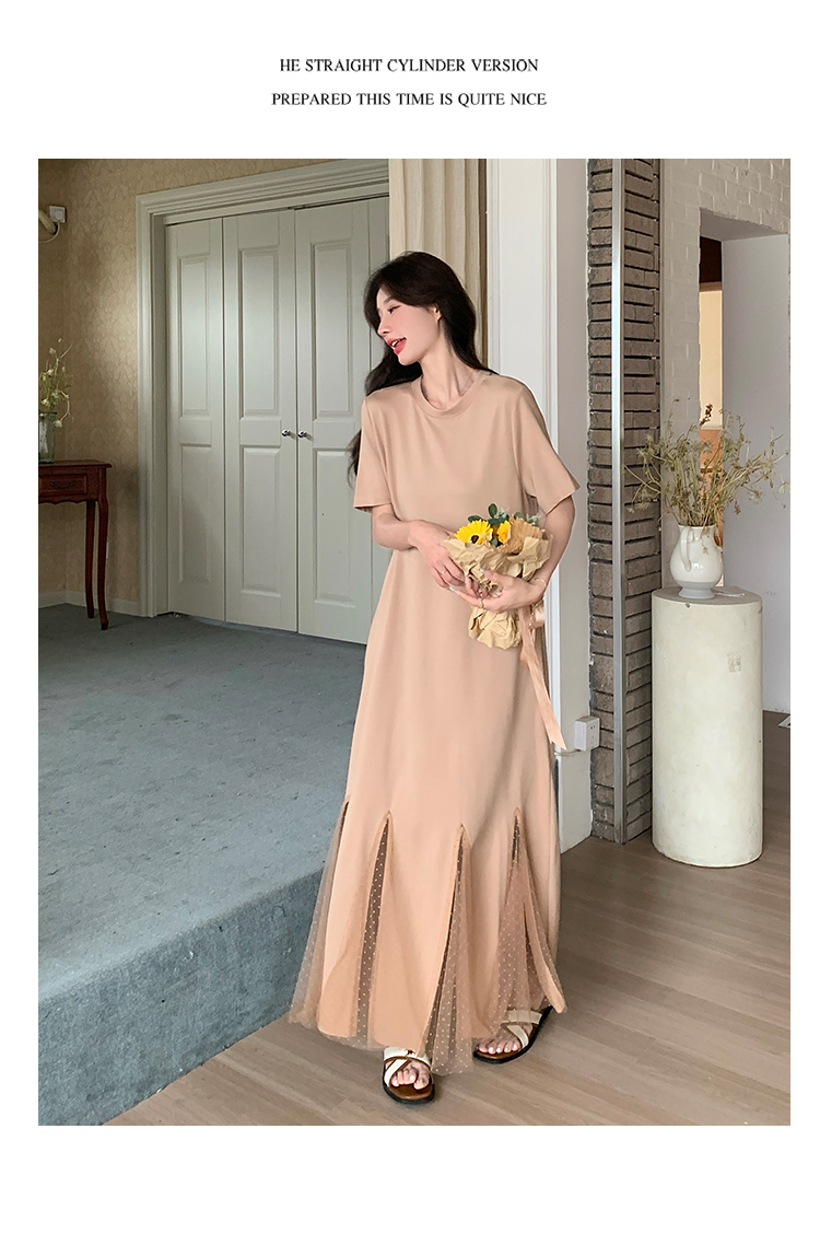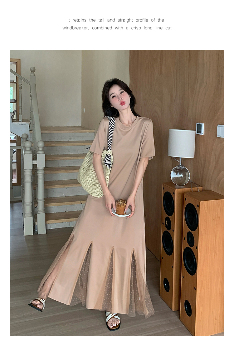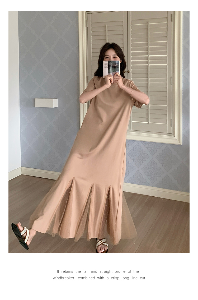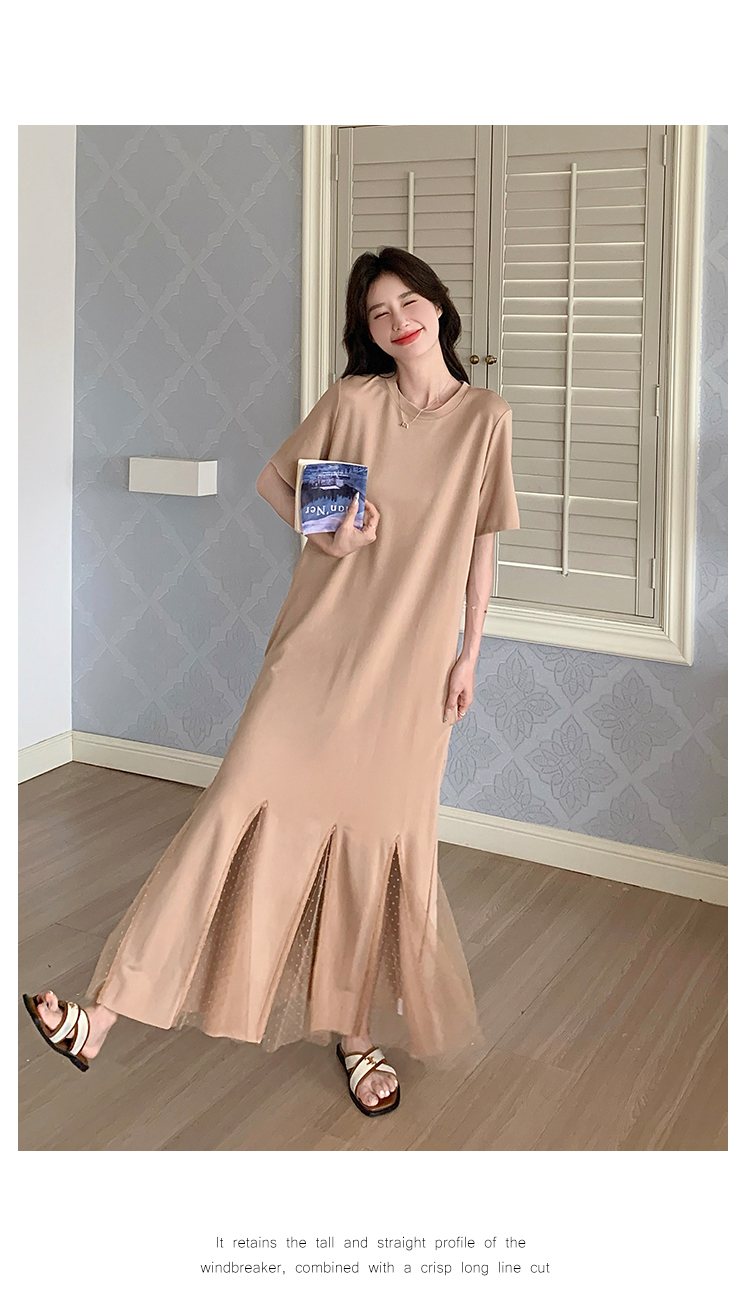 [商品名稱] [連身裙] 復古及踝修身短袖連身裙