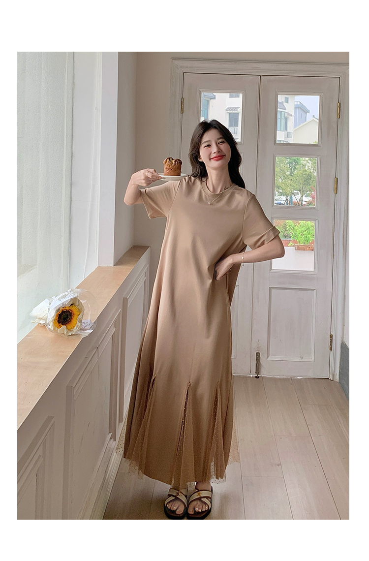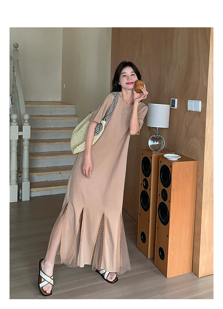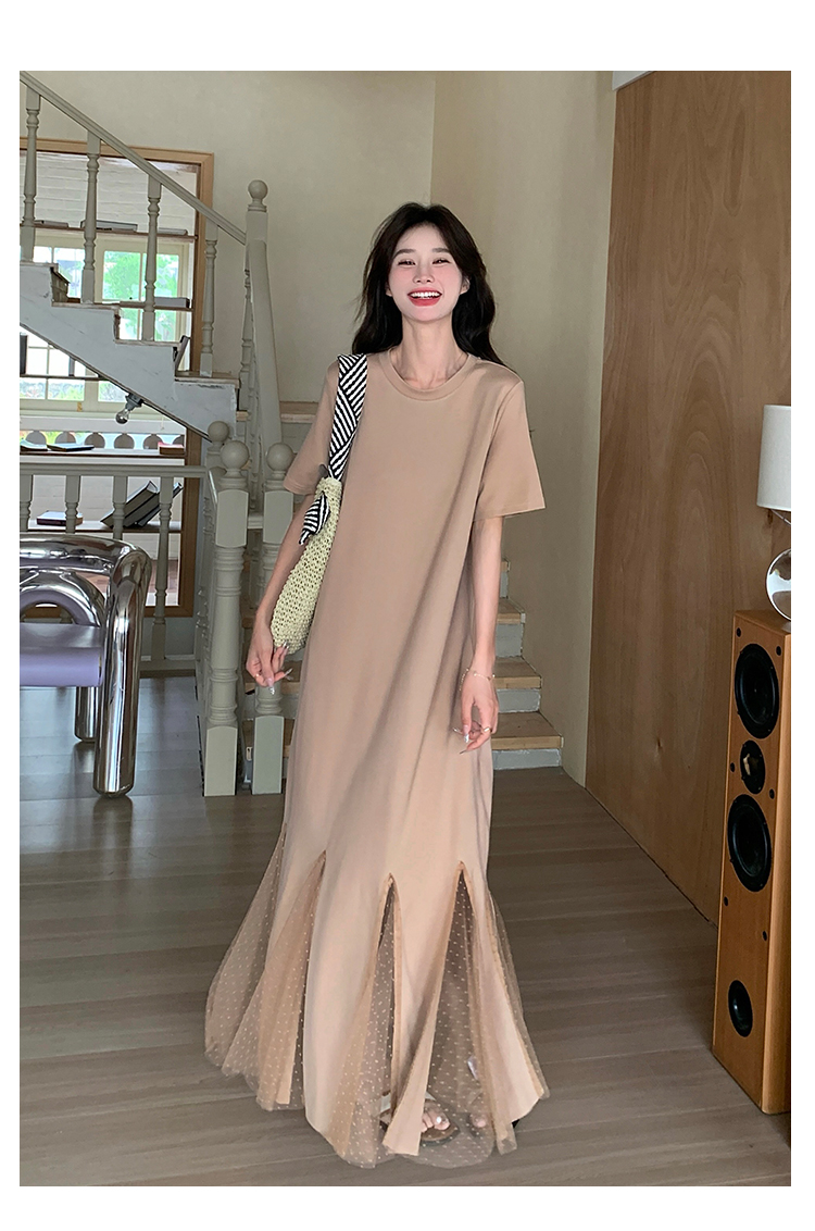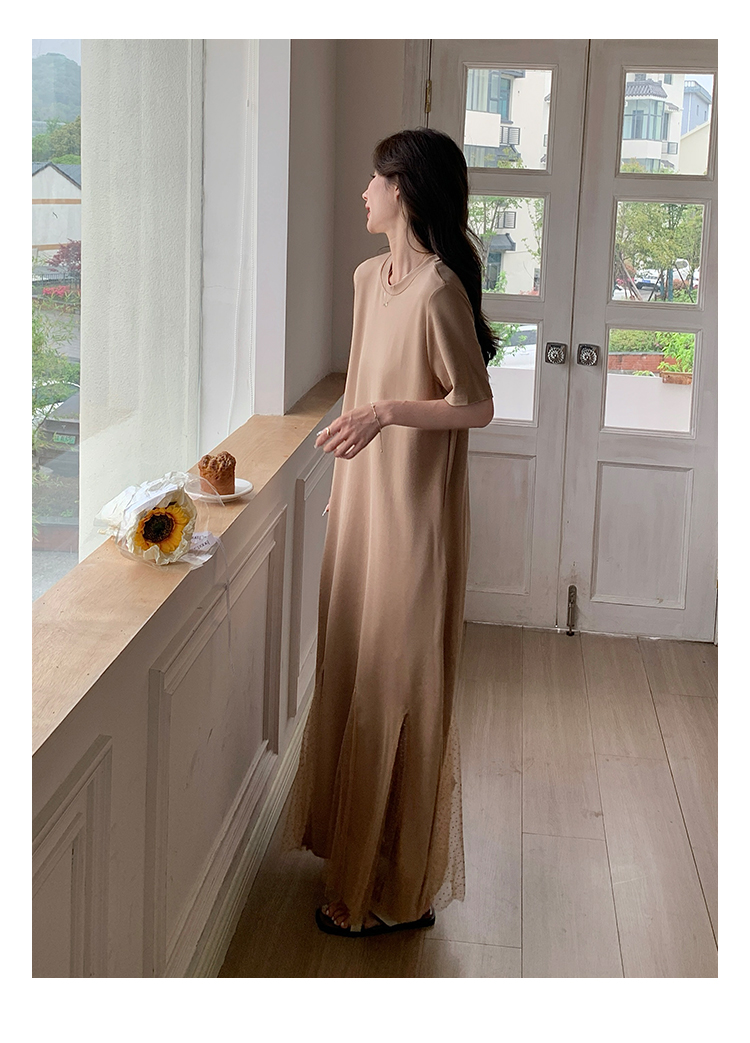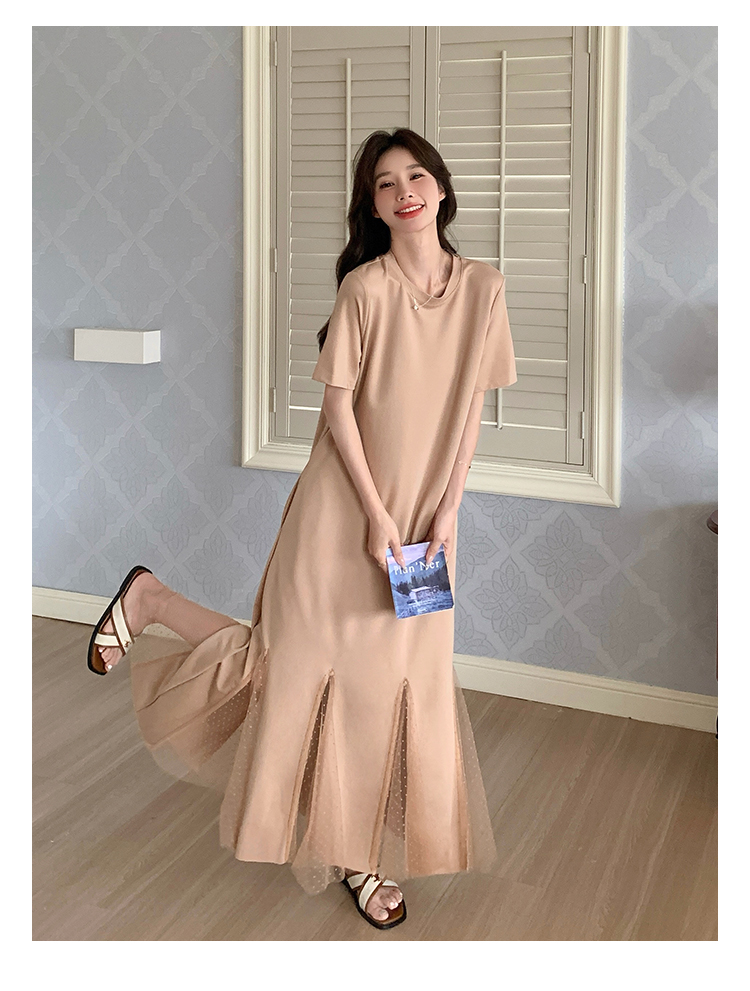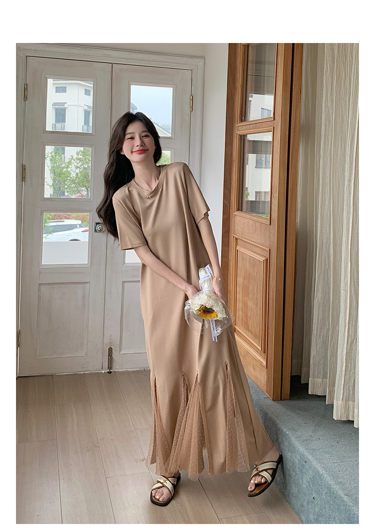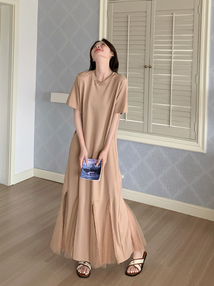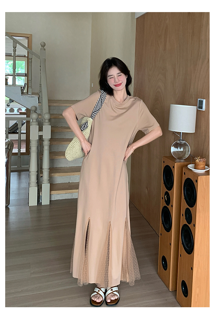 [商品名稱] [連身裙] 復古及踝修身短袖連身裙