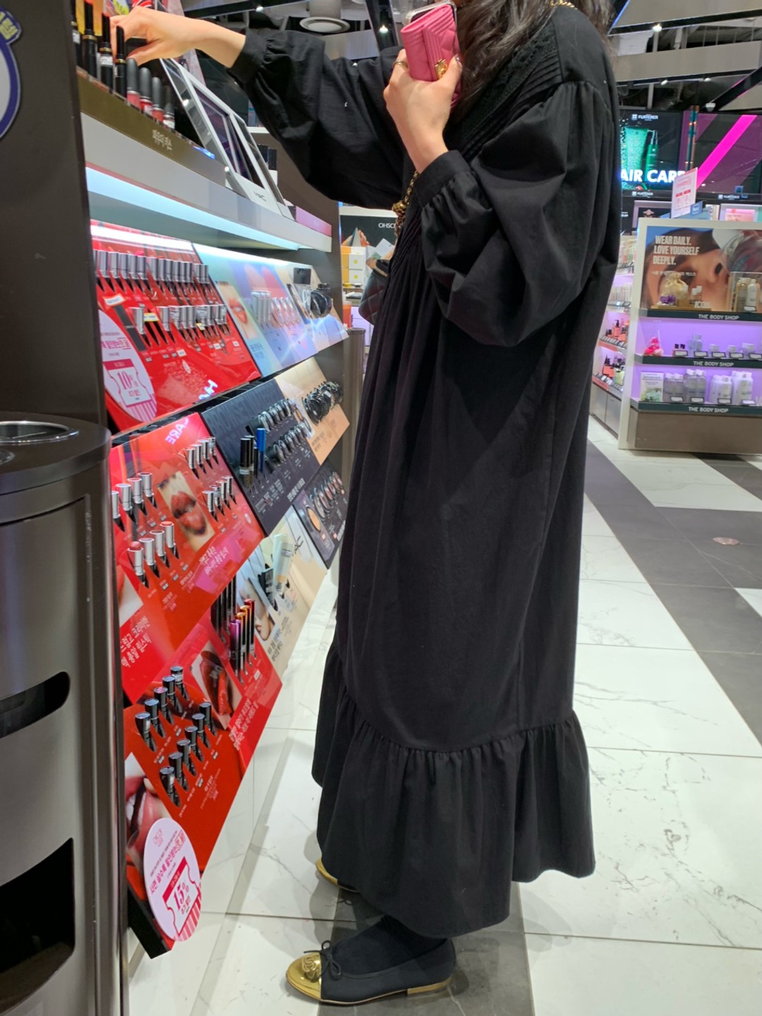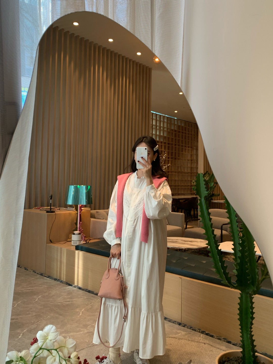 【ワンピース】韓国風 春秋新作 ゆったり大きめサイズ 体型カバー 花柄長袖ミディアムワンピース【SHシリーズ】