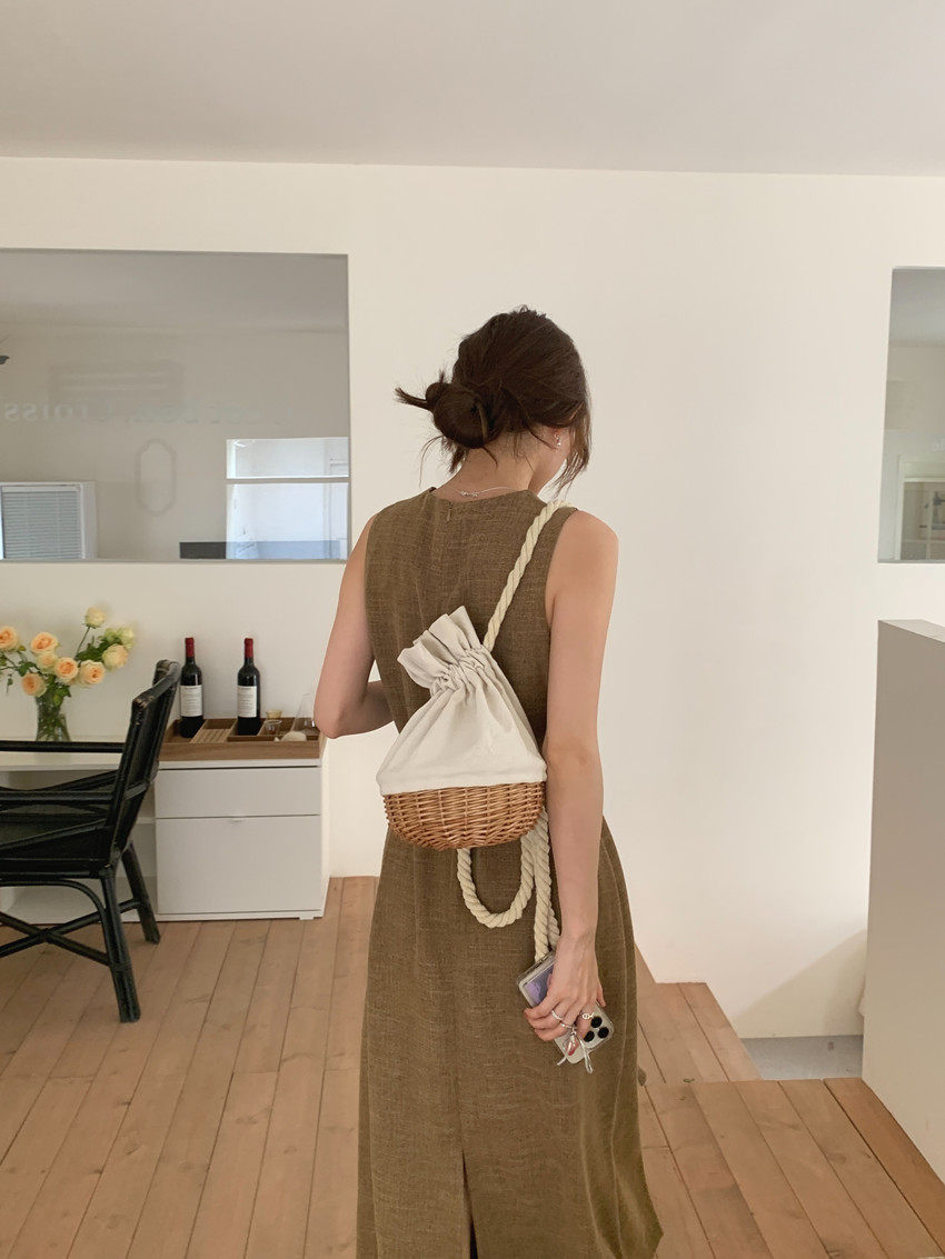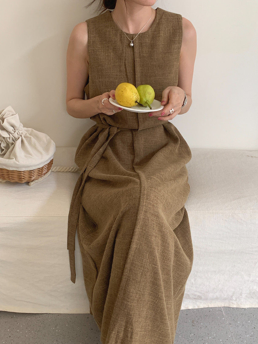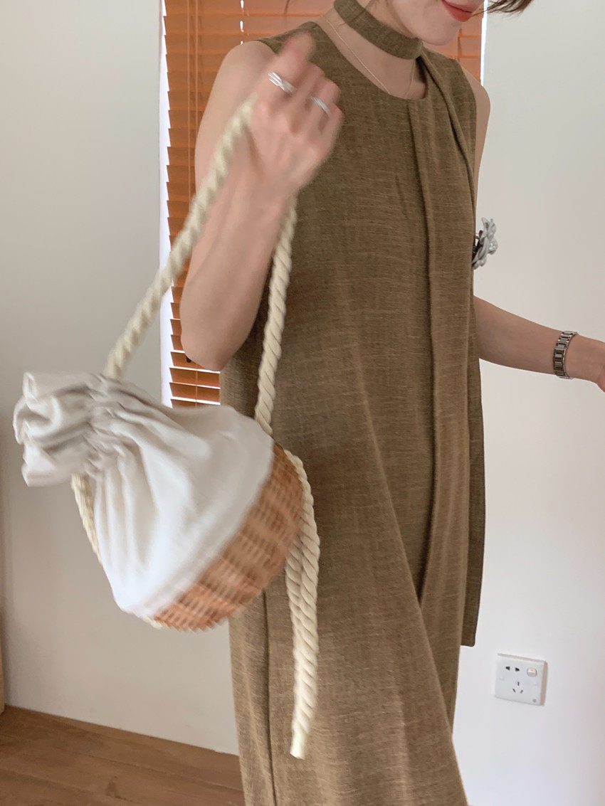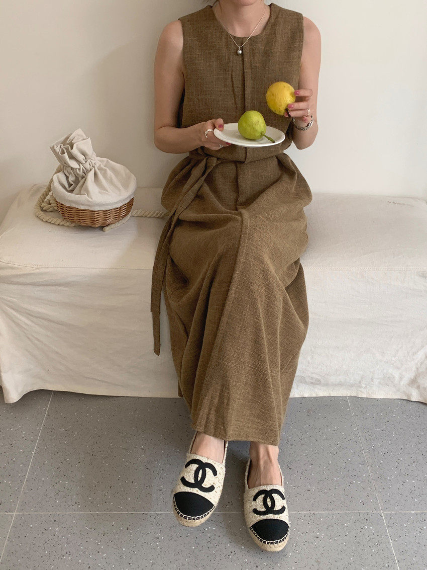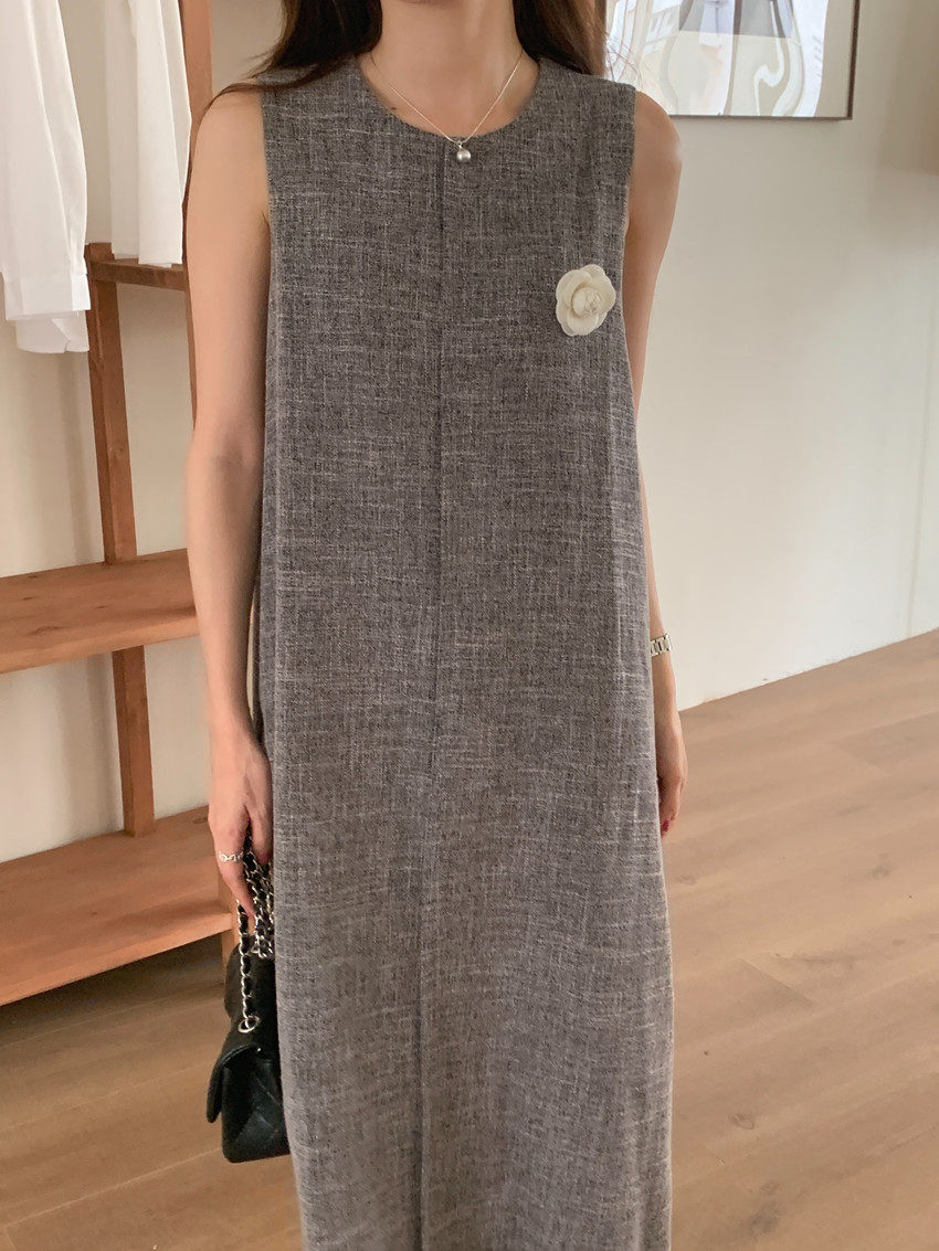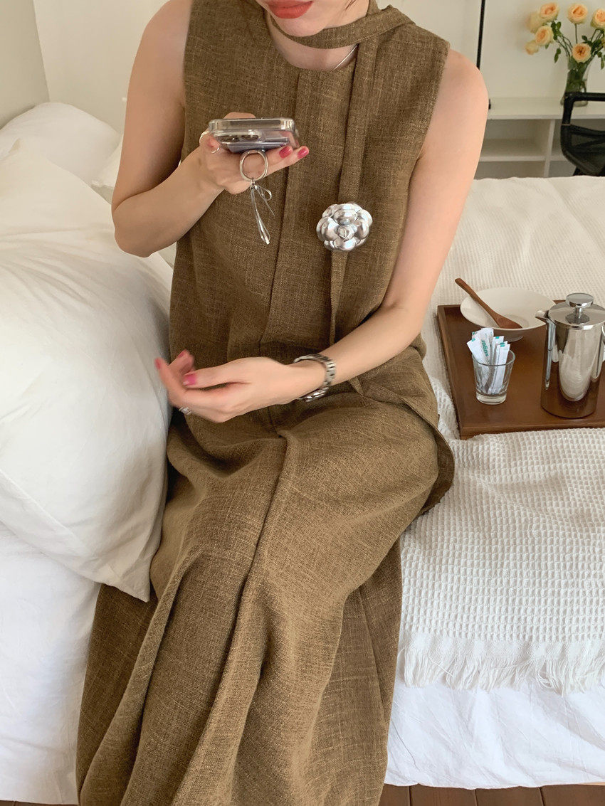 【商品名稱】【連身裙】復古圓領顯瘦無袖連身裙