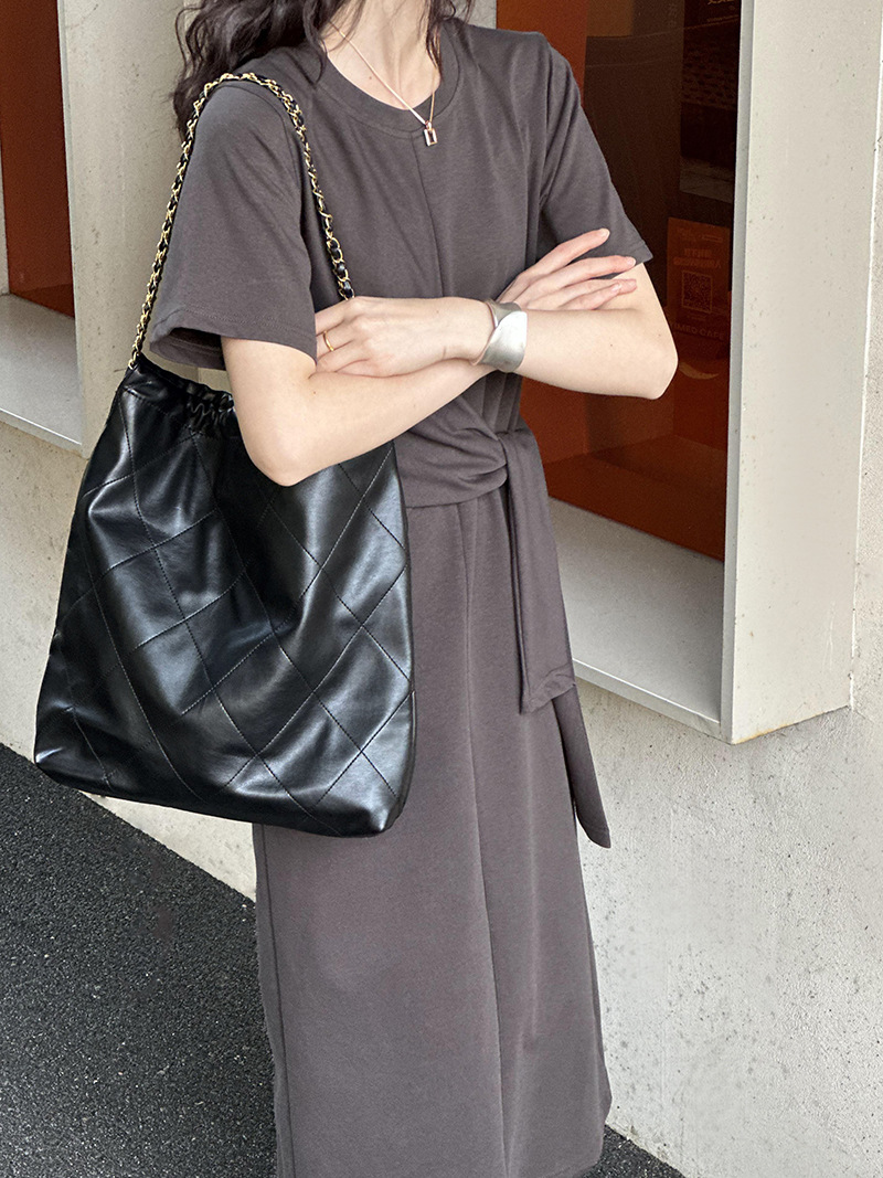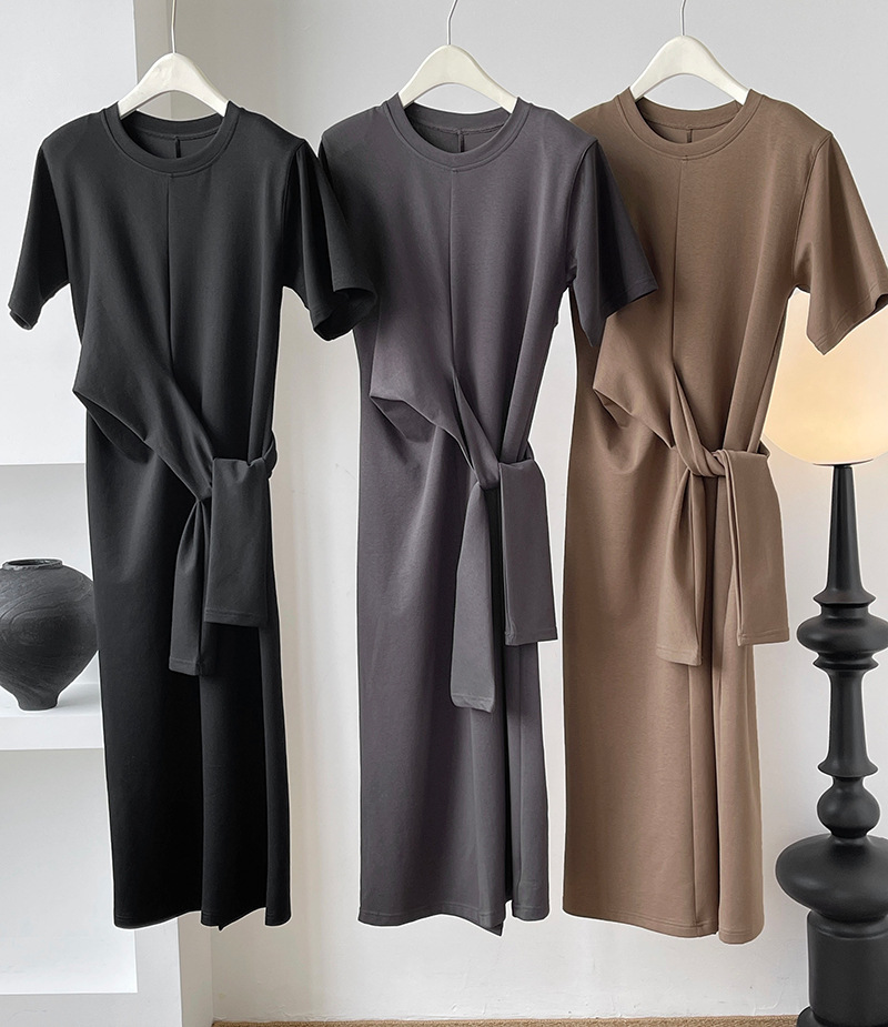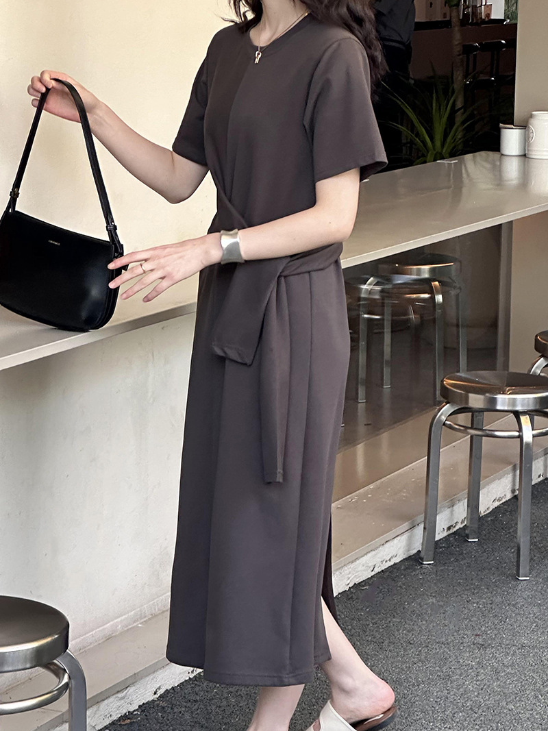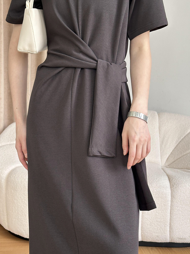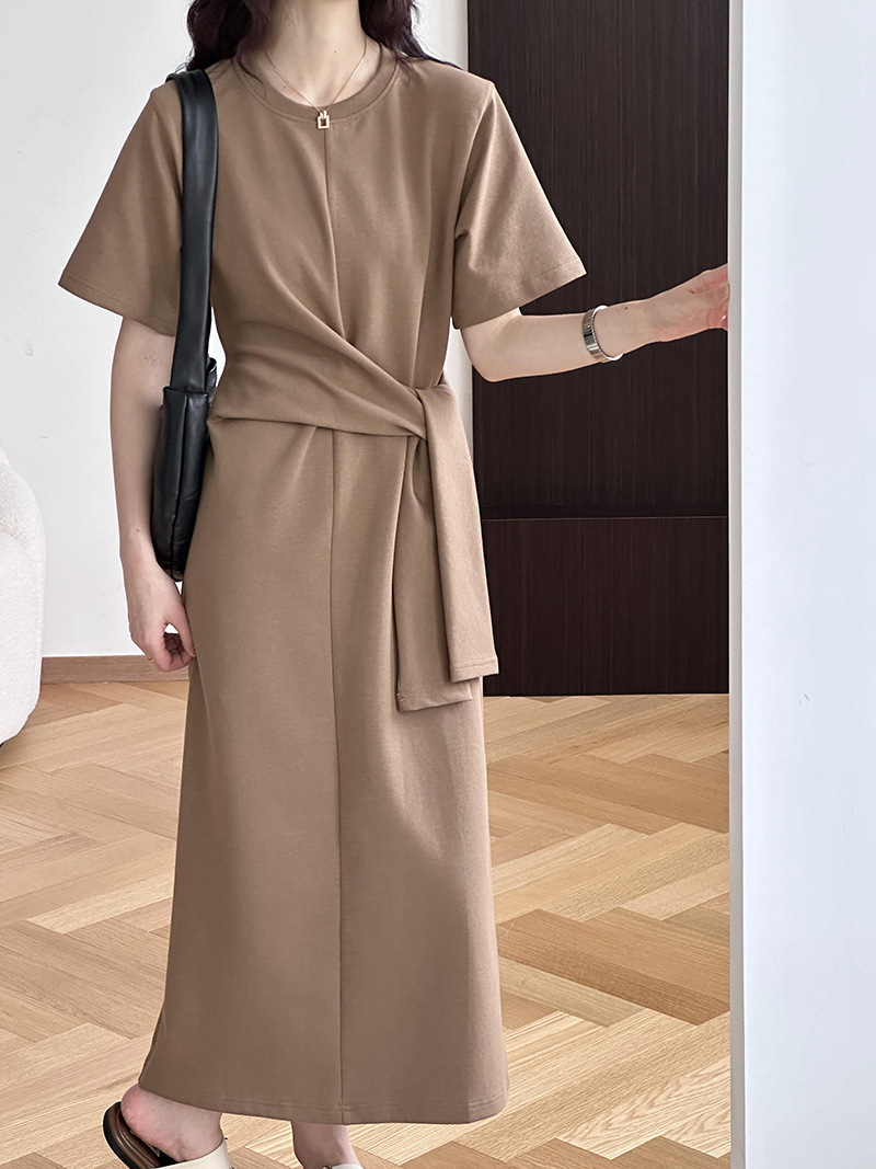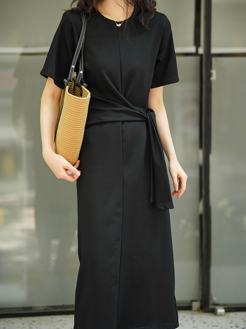 [洋裝] 夏季海外潮流好看顯瘦綁帶裝飾短袖洋裝【JZ系列】