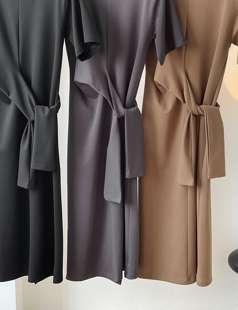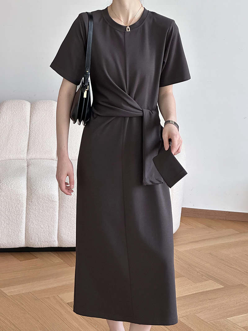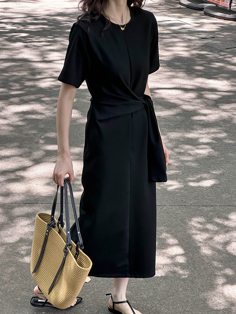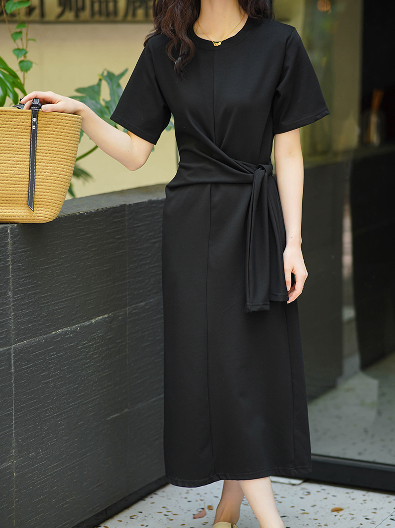 【商品名稱】【洋裝】海外潮流好看顯瘦綁帶裝飾短袖連身裙