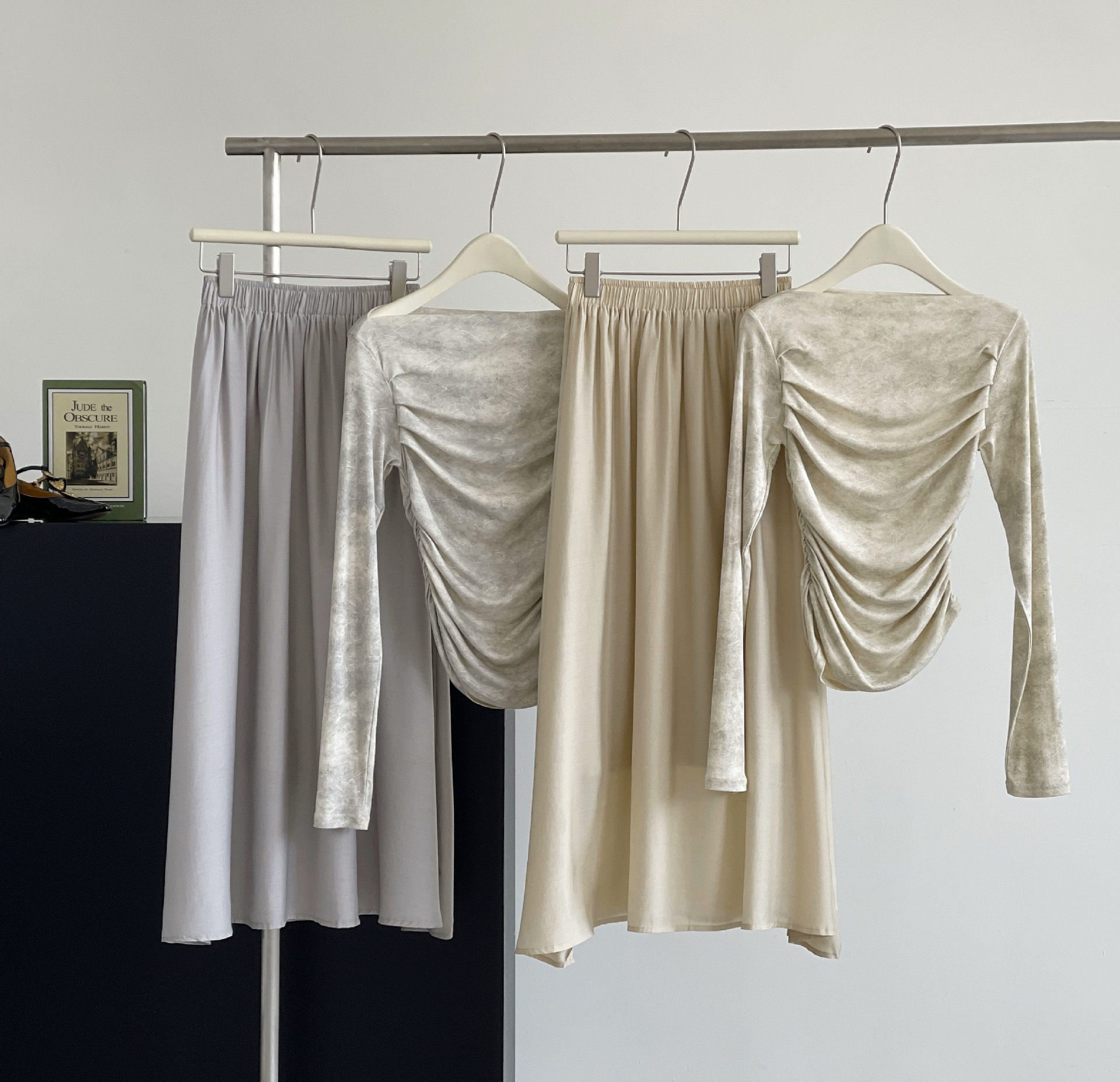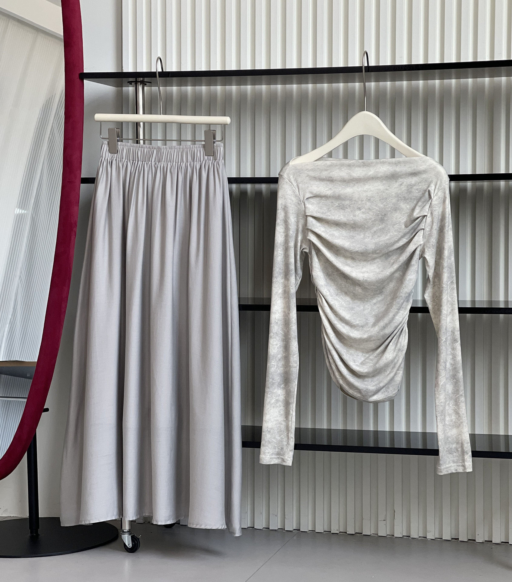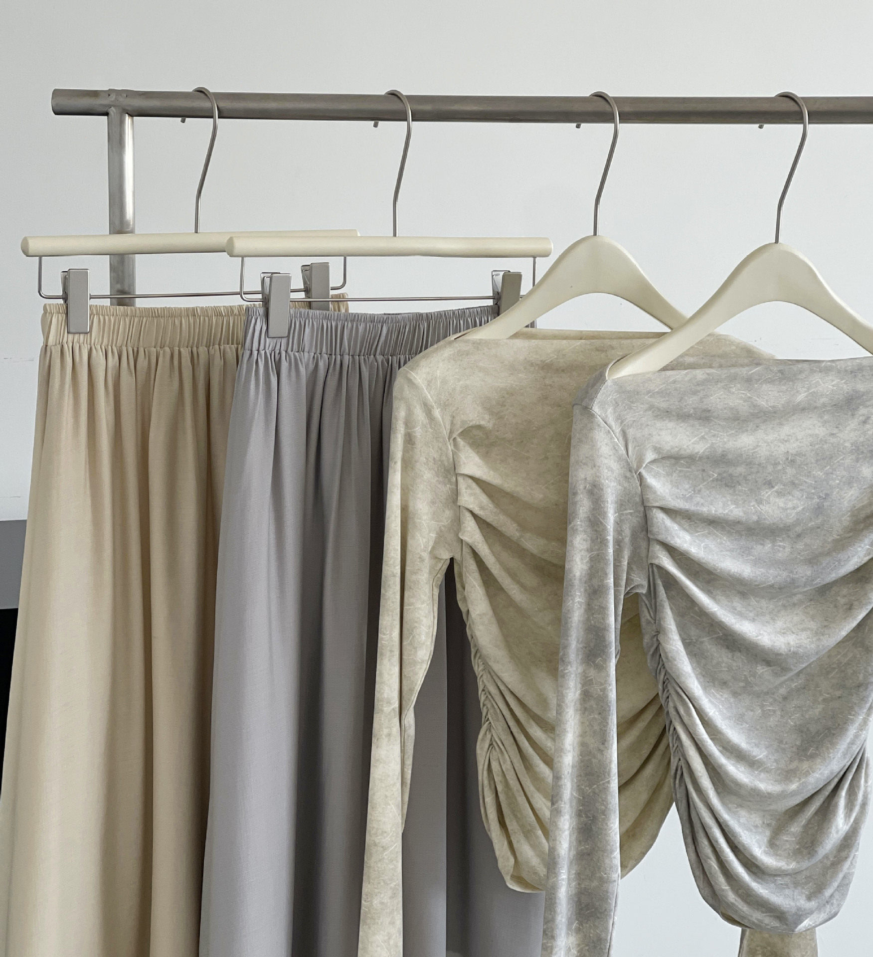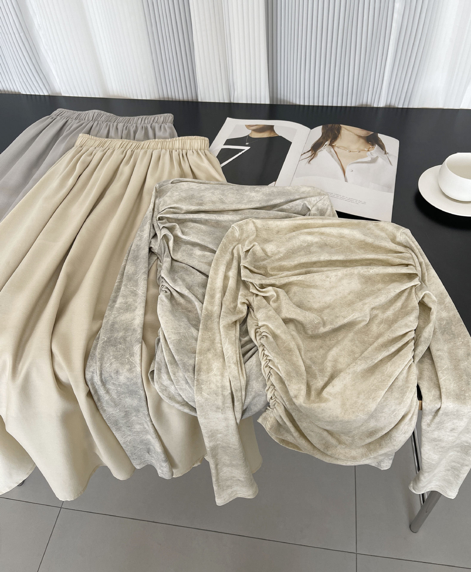 【顏色】灰色上衣(單品),象牙色上衣(單品),灰色裙子(單品),象牙色裙子(單品),灰色(套裝),象牙色(套裝)