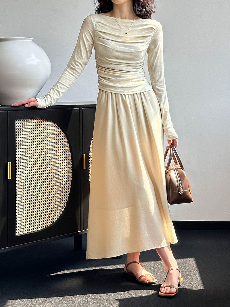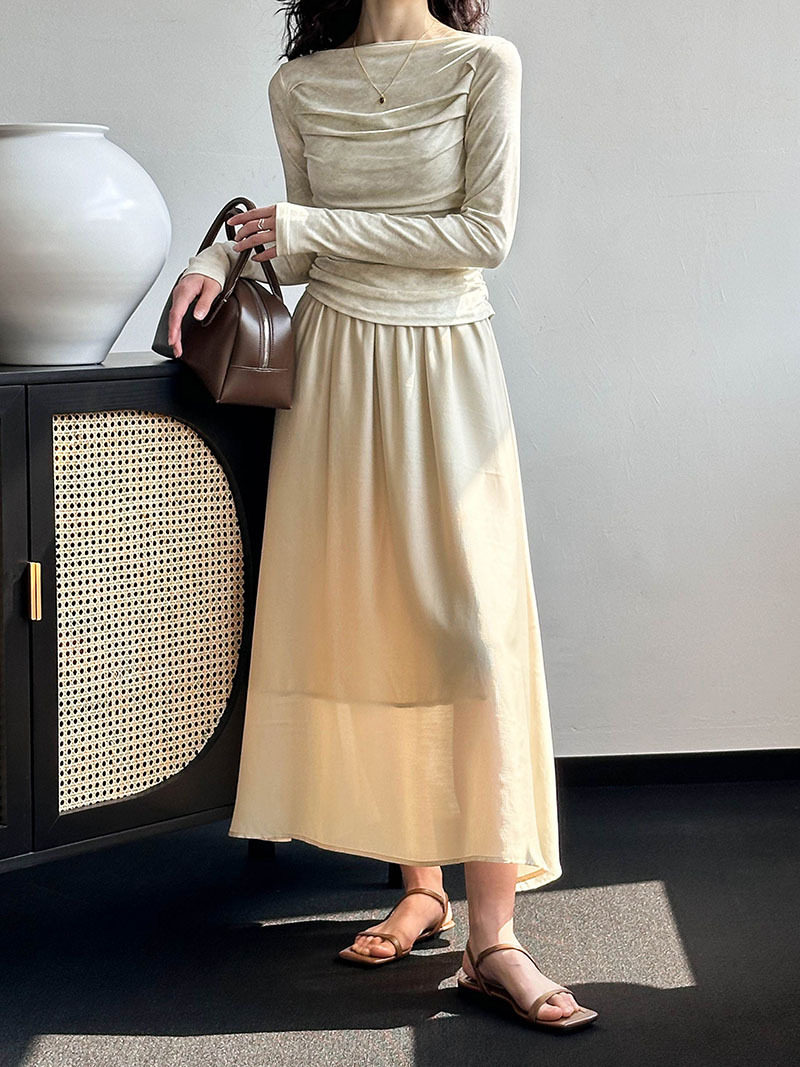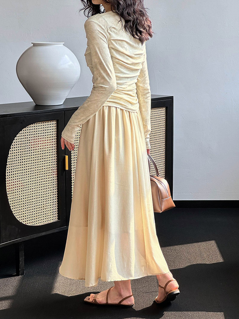 [材質] 上衣:94% 黏膠纖維,6%氨綸。裙子:95% 天絲、5% 聚酯纖維