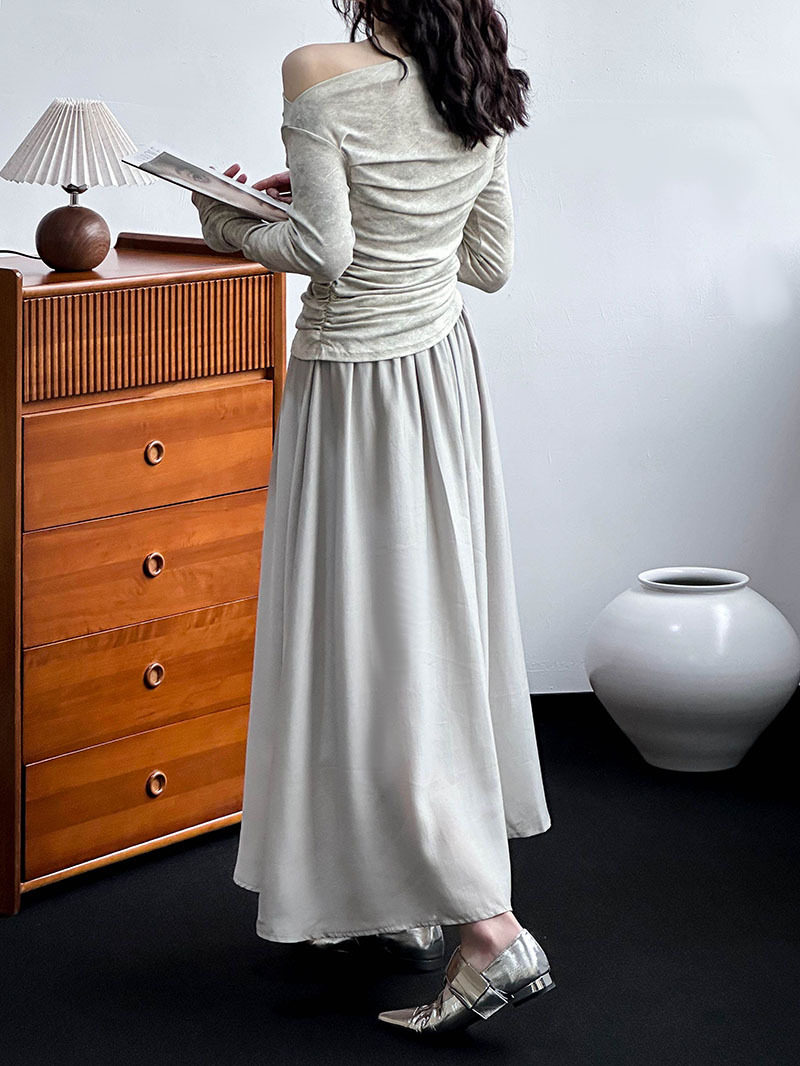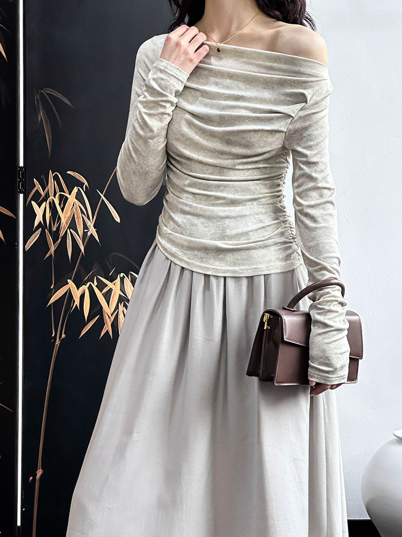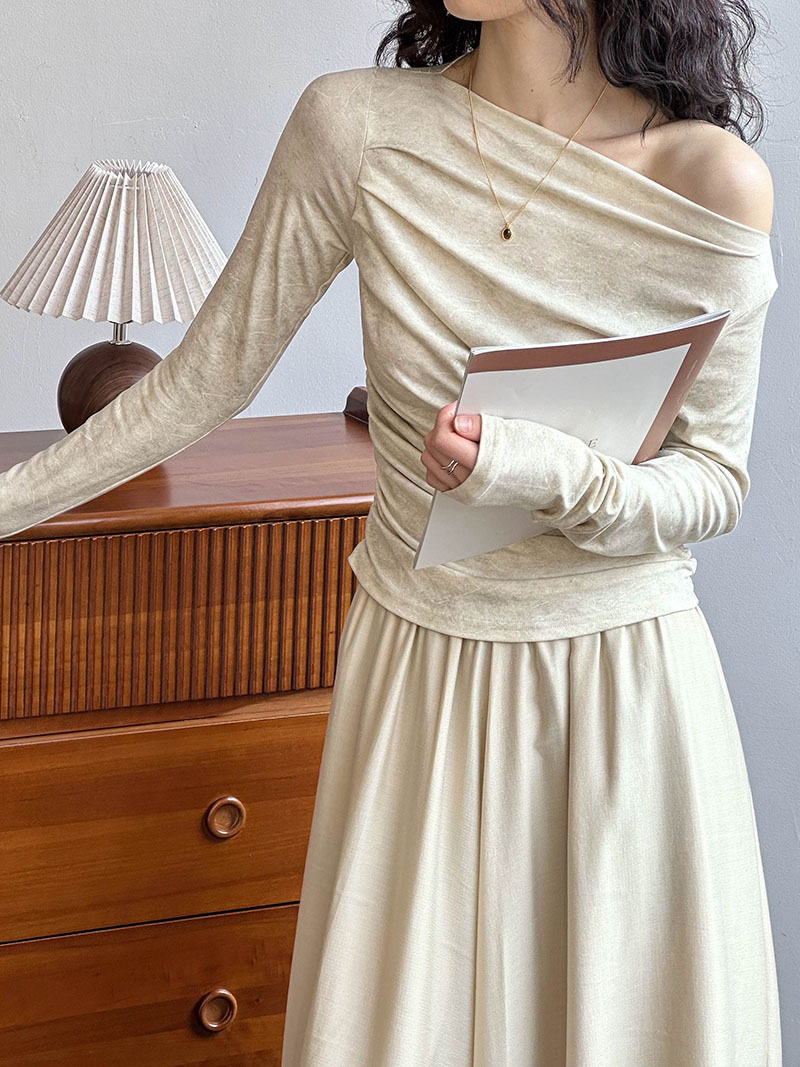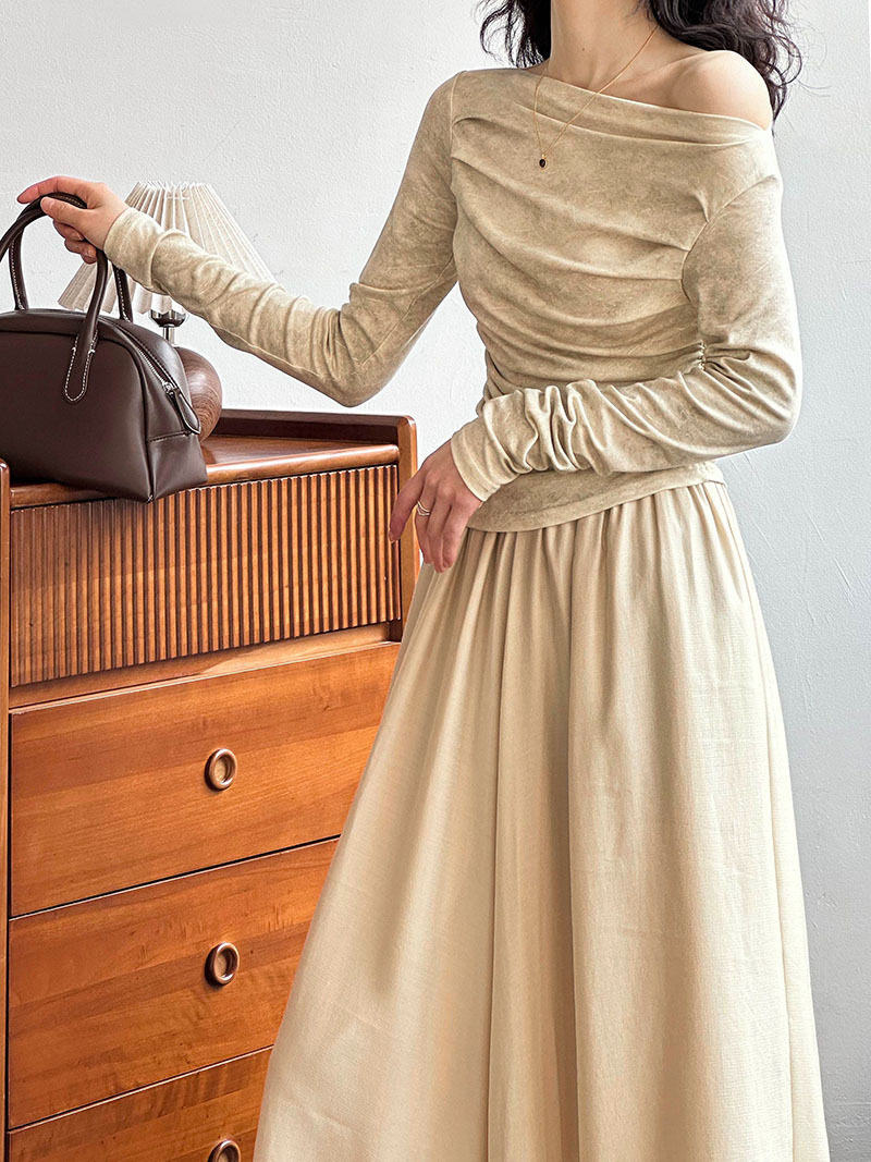 【下裝】氣質套裝 單肩春秋冬上衣+高腰裙 上下裝套裝【JZ系列】