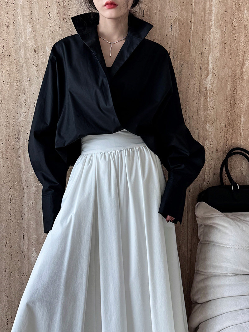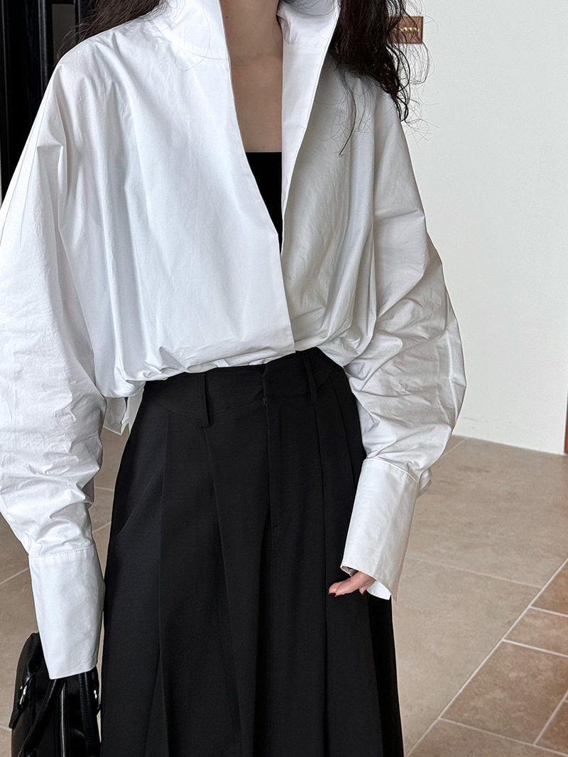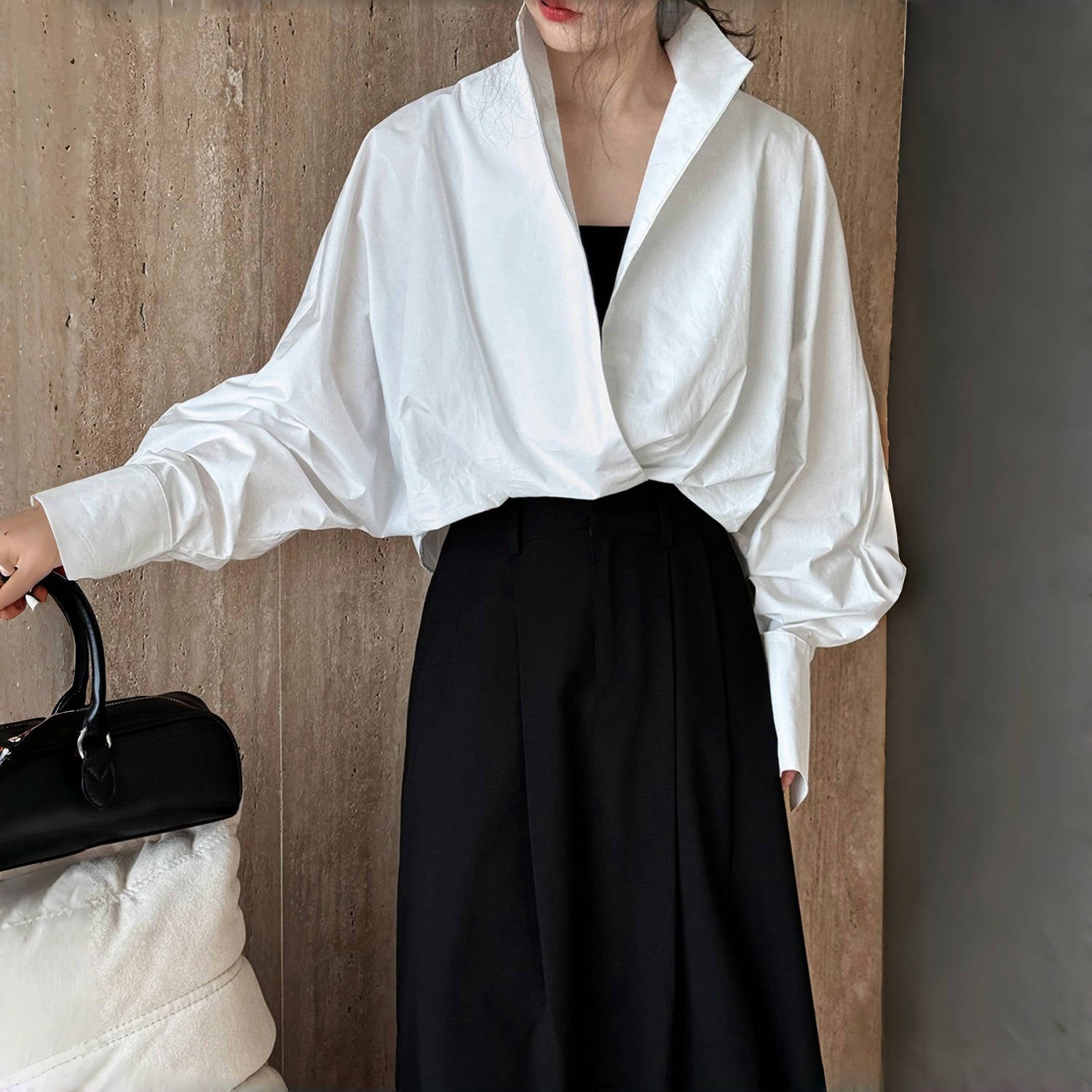 [上衣] 春秋款V領時尚蝙蝠袖襯衫[SN系列]