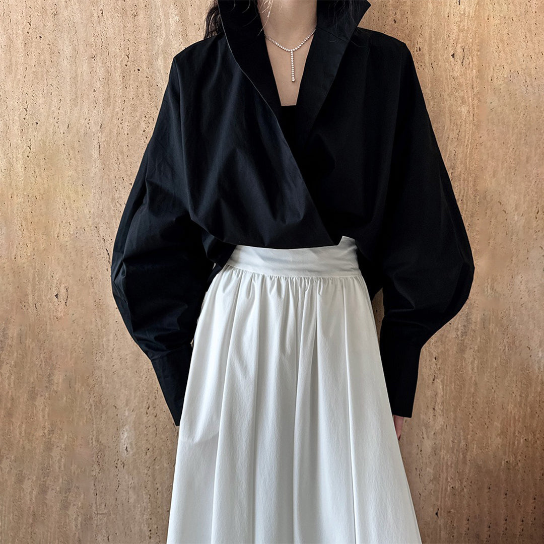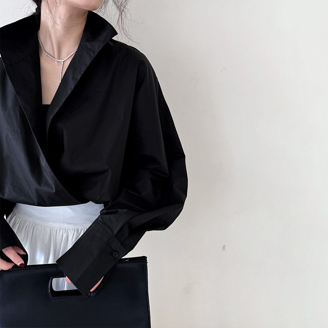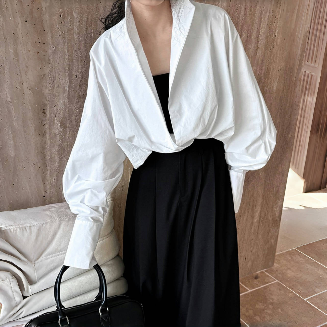 [上衣] 春秋款V領時尚蝙蝠袖襯衫[SN系列]