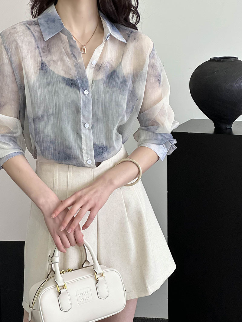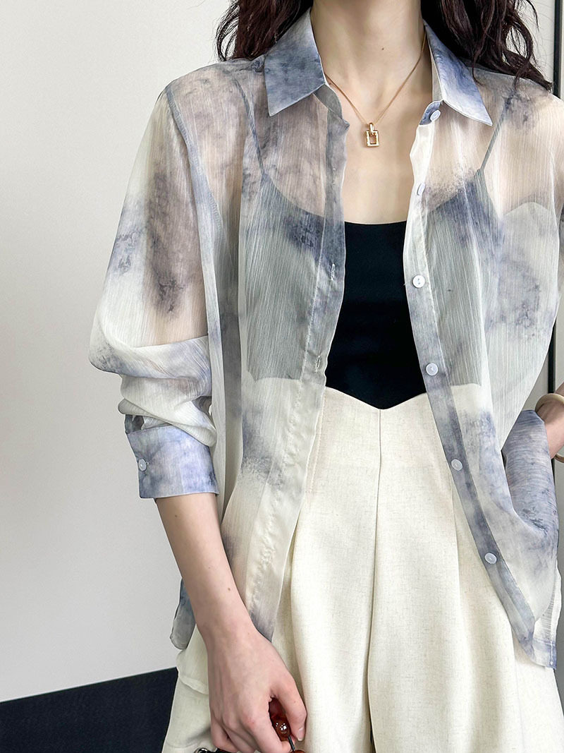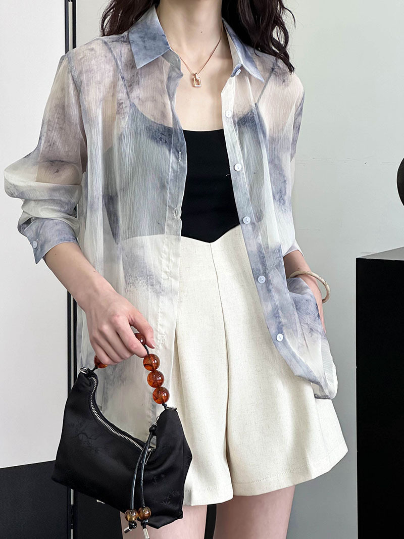 [上衣] 春夏復古印花寬鬆防曬襯衫【JZ系列】