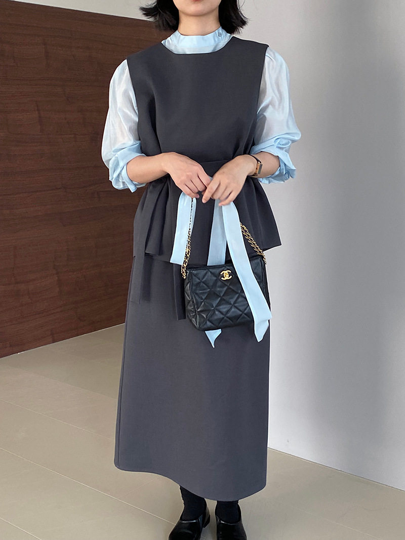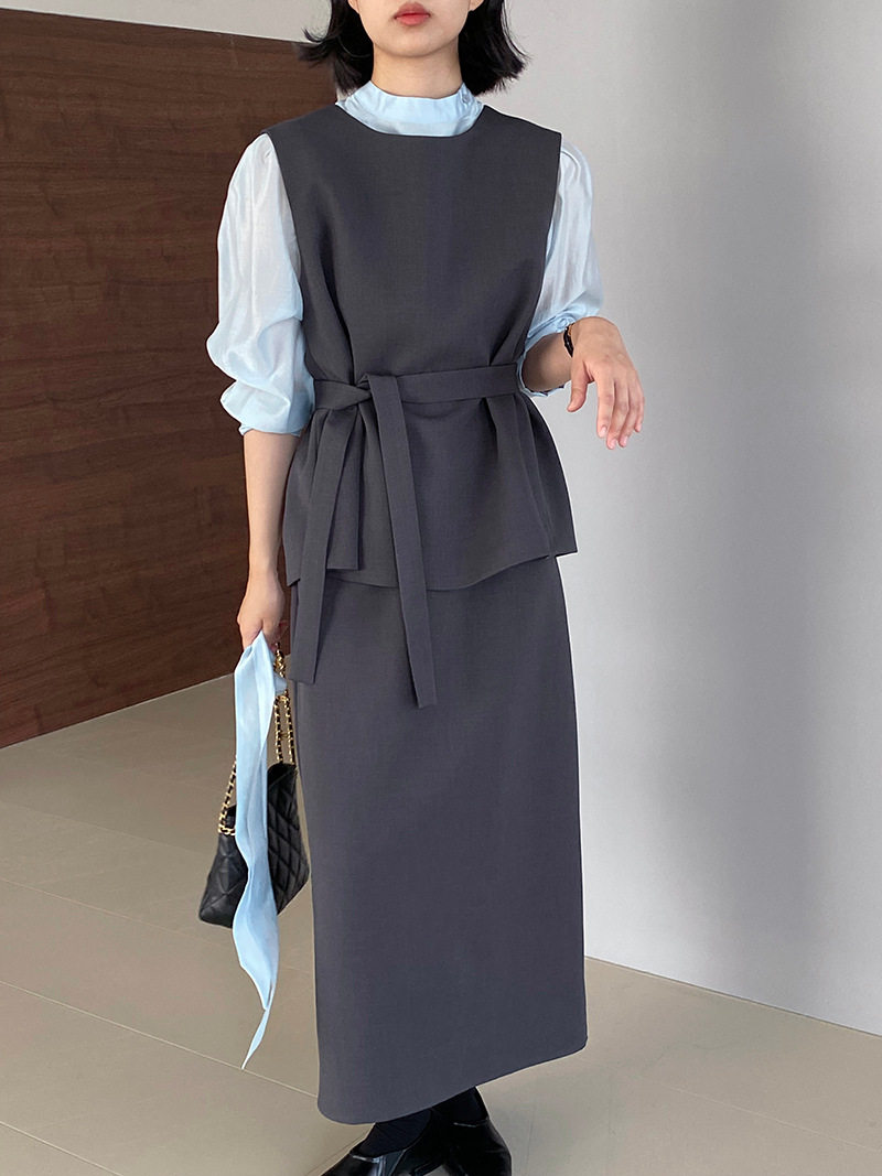 【商品名稱】【下裝】優質修身易搭配背心+裙子上下裝套裝