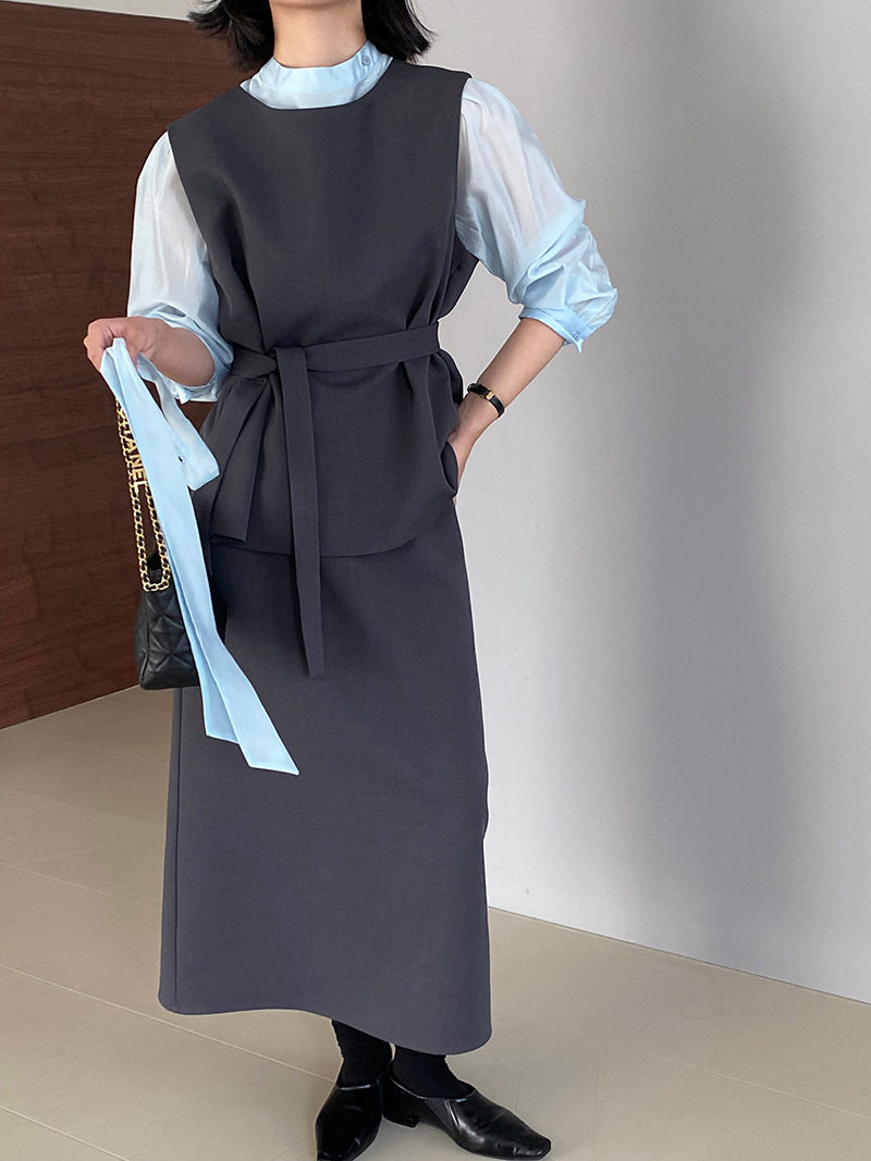 【下裝】優質修身春秋易搭配背心+裙子上下裝套裝【JZ系列】