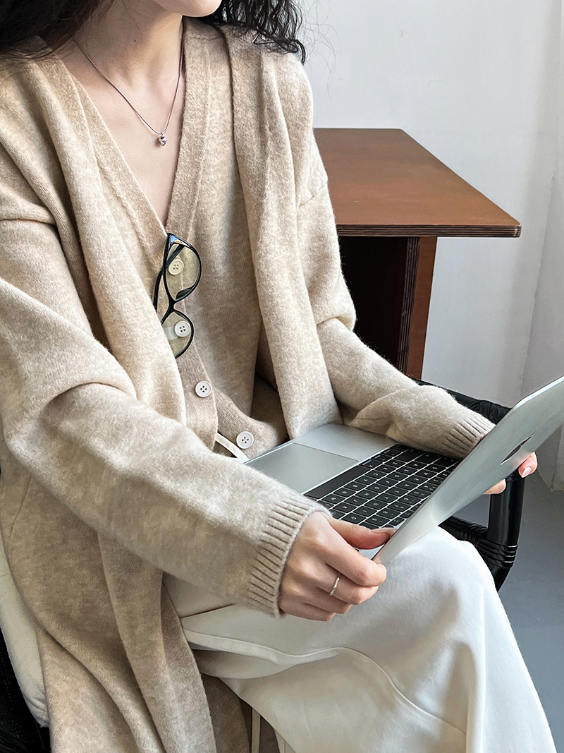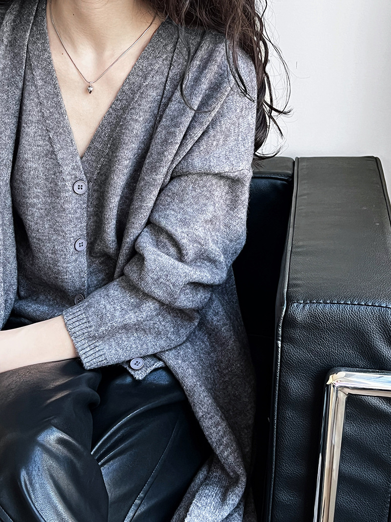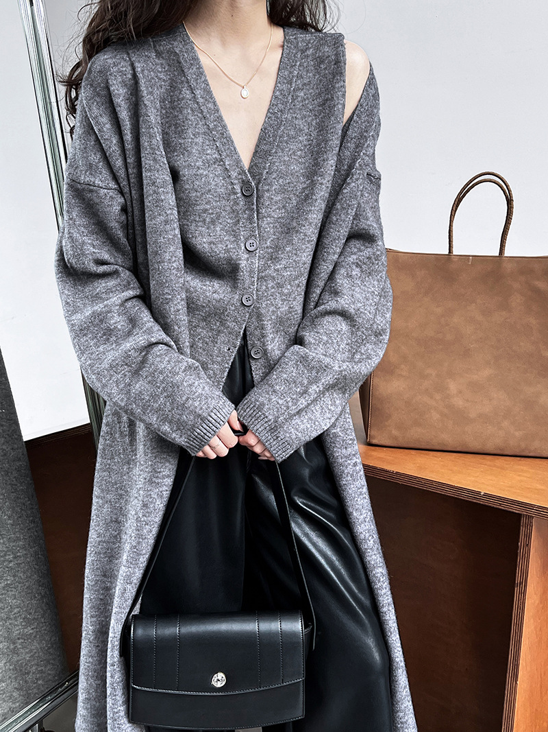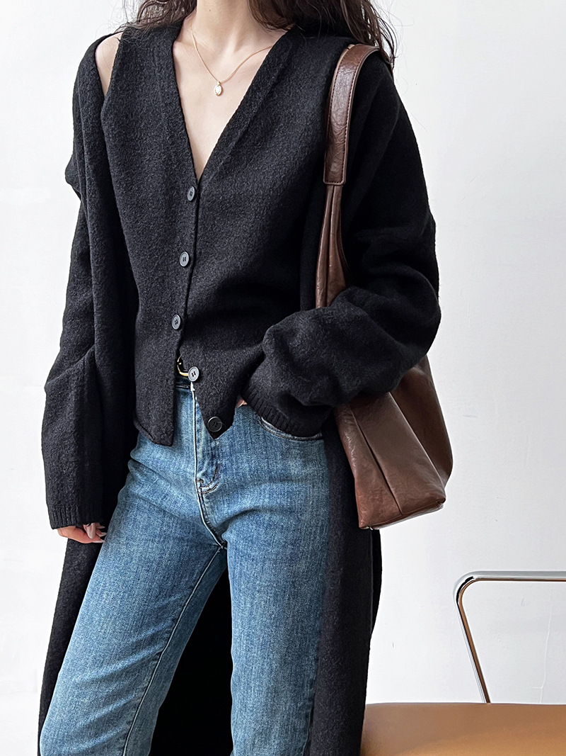 [外套] 簡約中長春秋針織開襟衫+背心兩件式【SN系列】