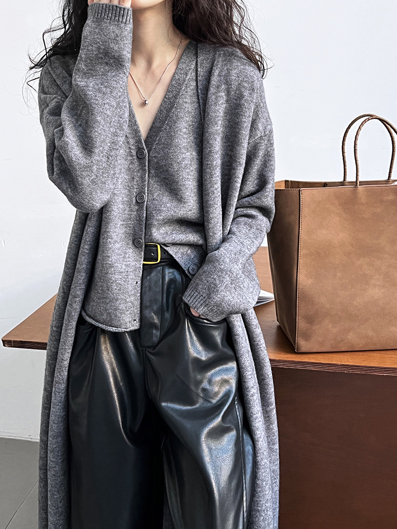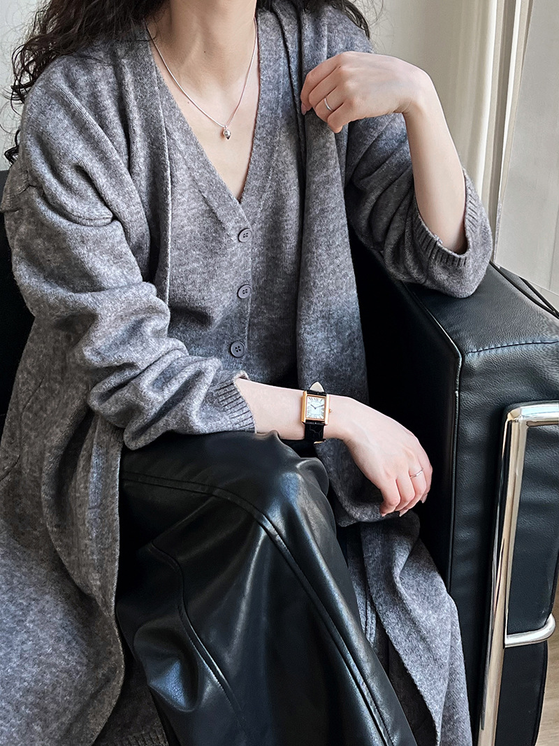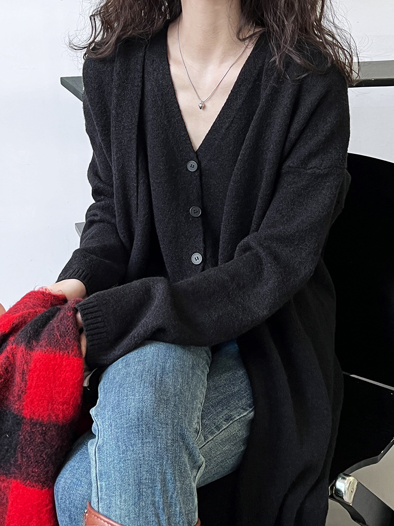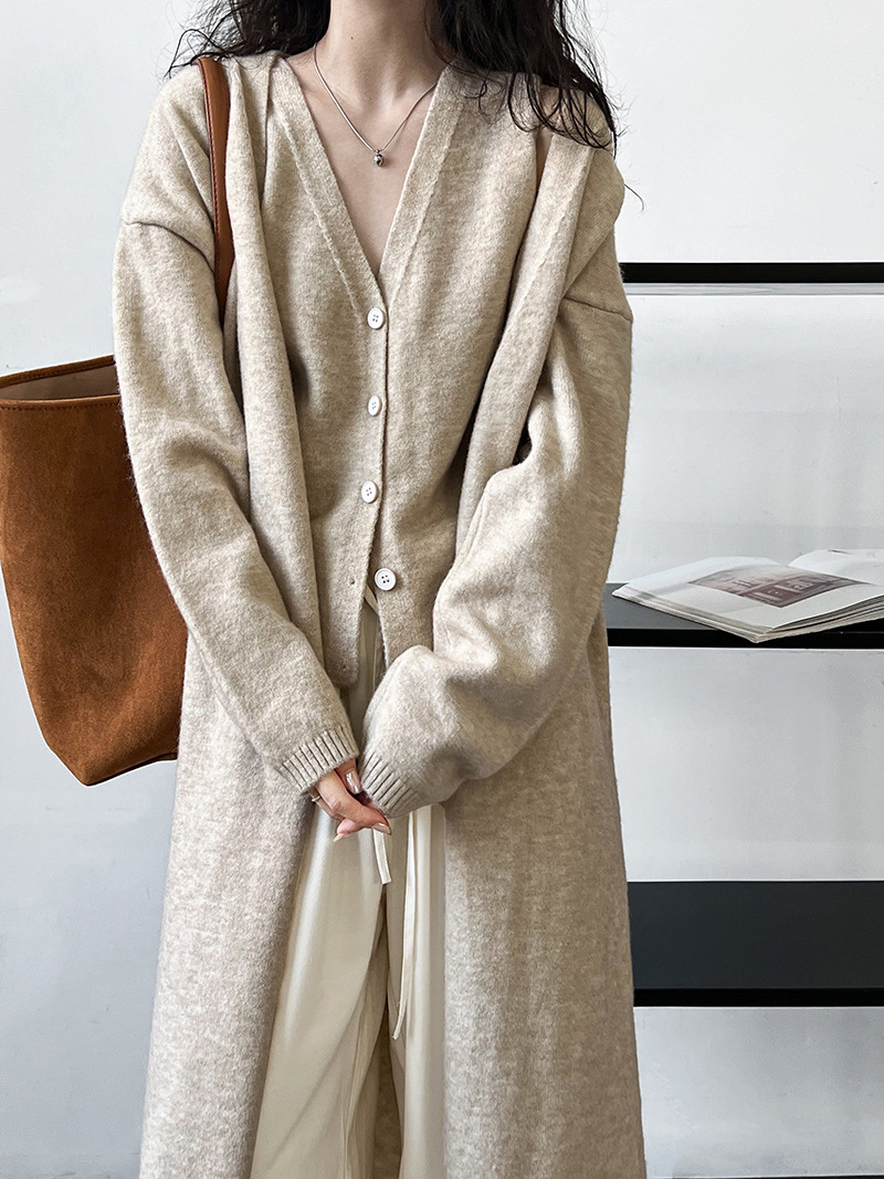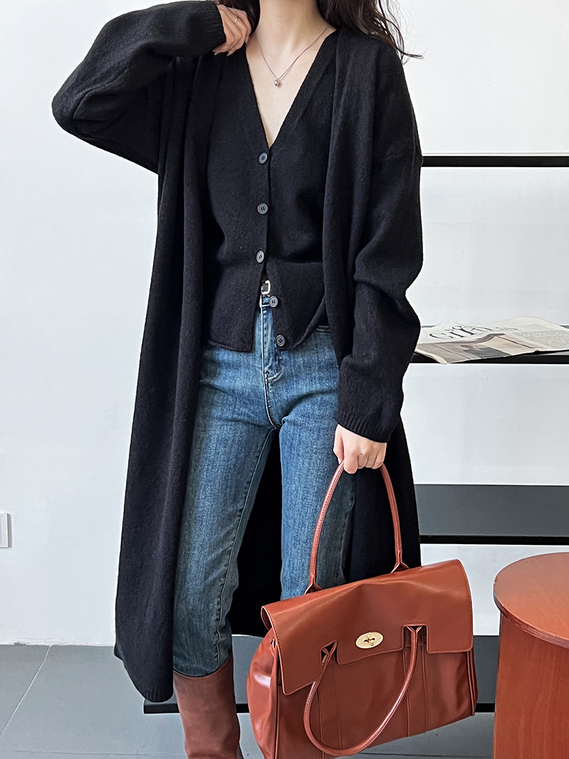 [外套] 簡約中長春秋針織開襟衫+背心兩件式【SN系列】
