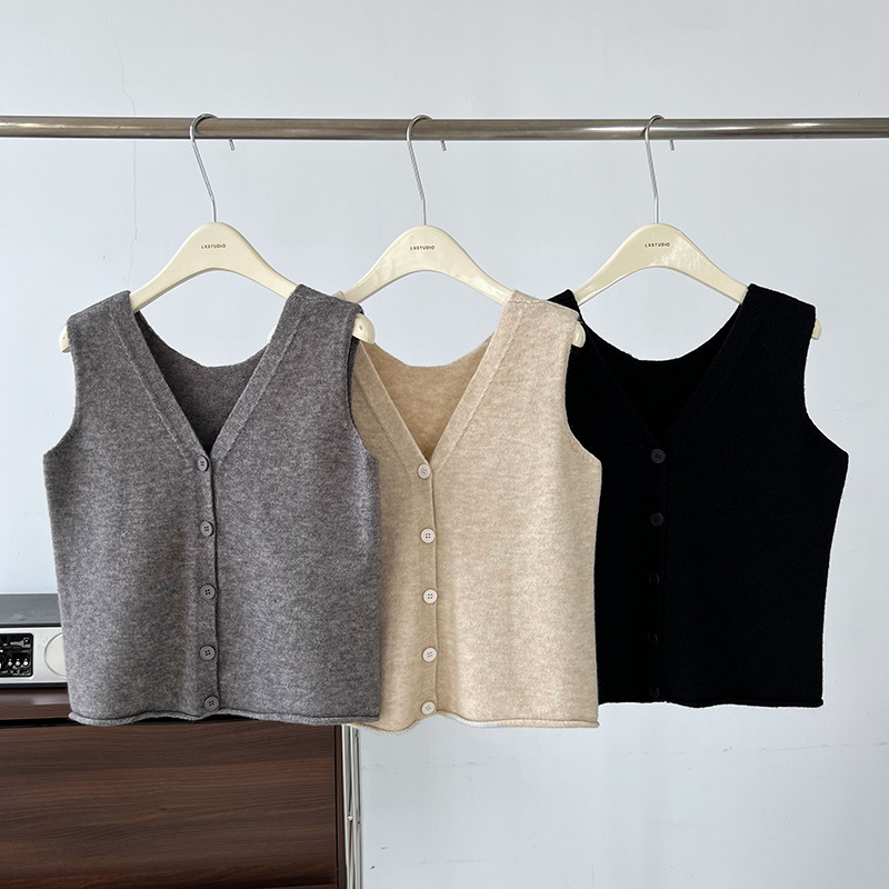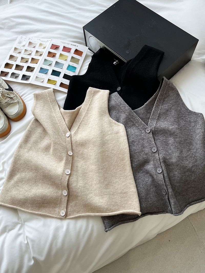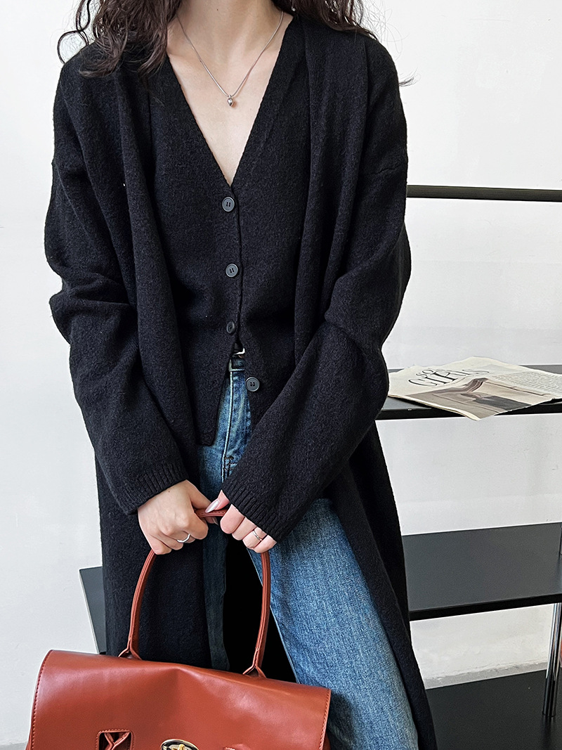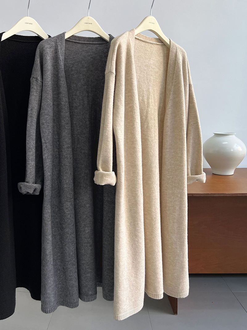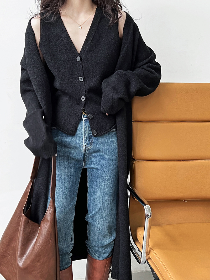 [商品名稱] [外套] 簡約中長針織開襟衫+背心2件套