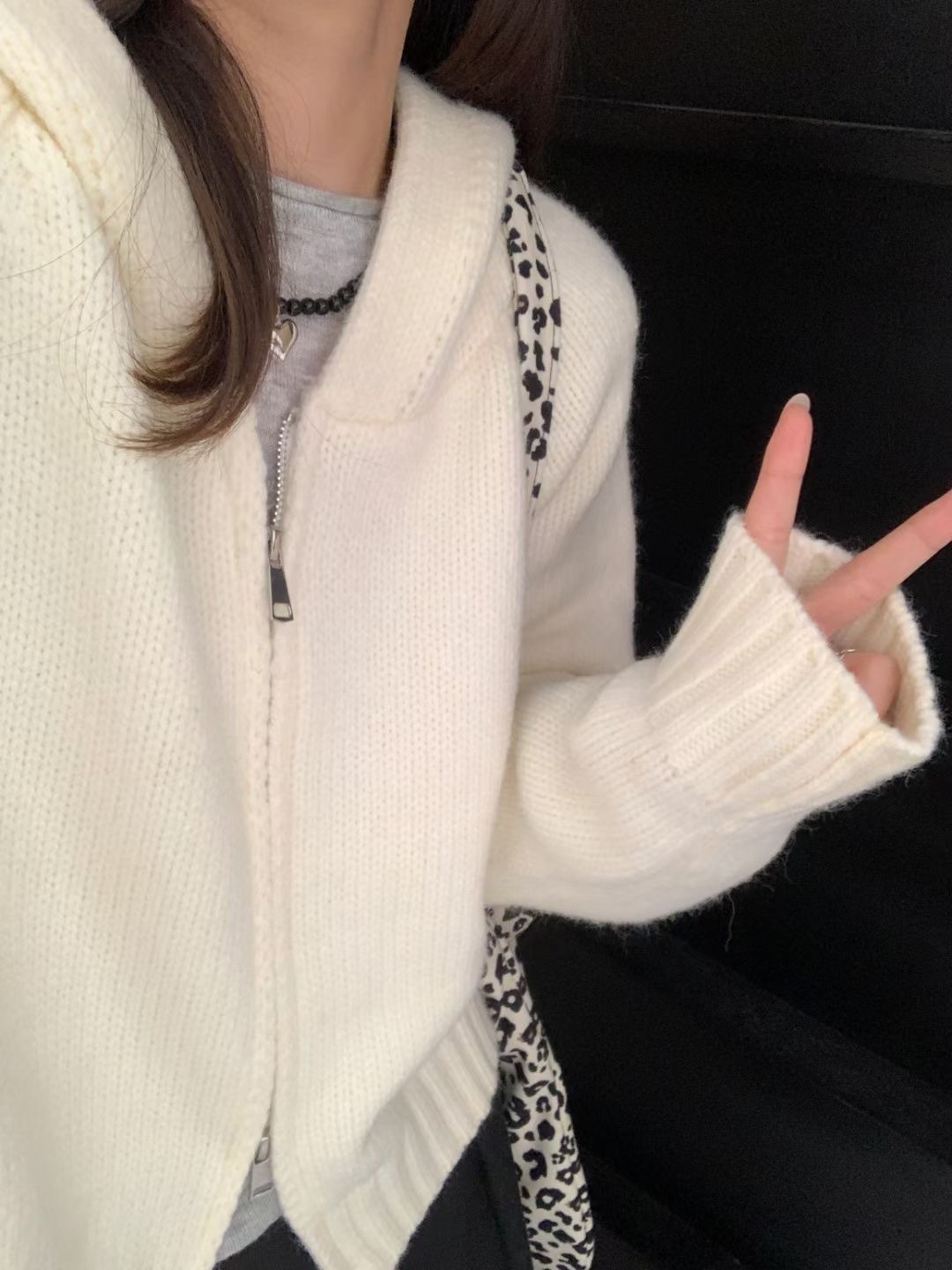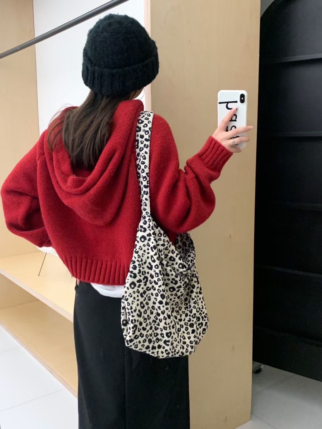【トップス】レトロ 豹柄 猫 ゆったり ラウンドネック ニットセーター【FCシリーズ】