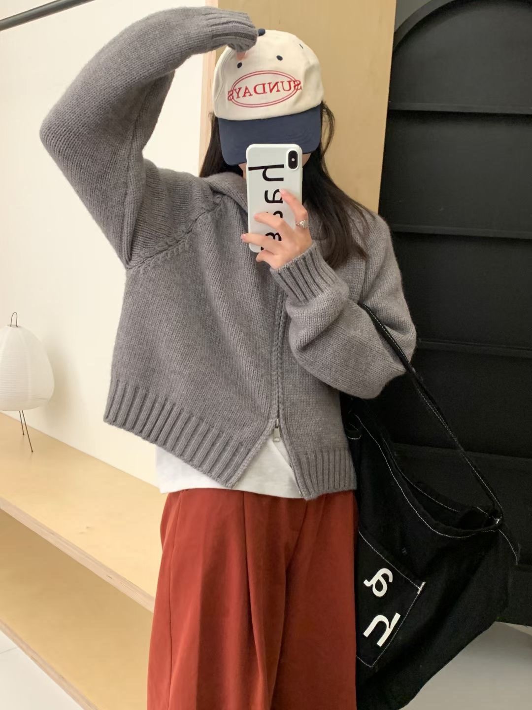【トップス】ルーズ ファスナー付き 立襟 春 秋 冬 プルオーバー ニット セーター 【FCシリーズ】