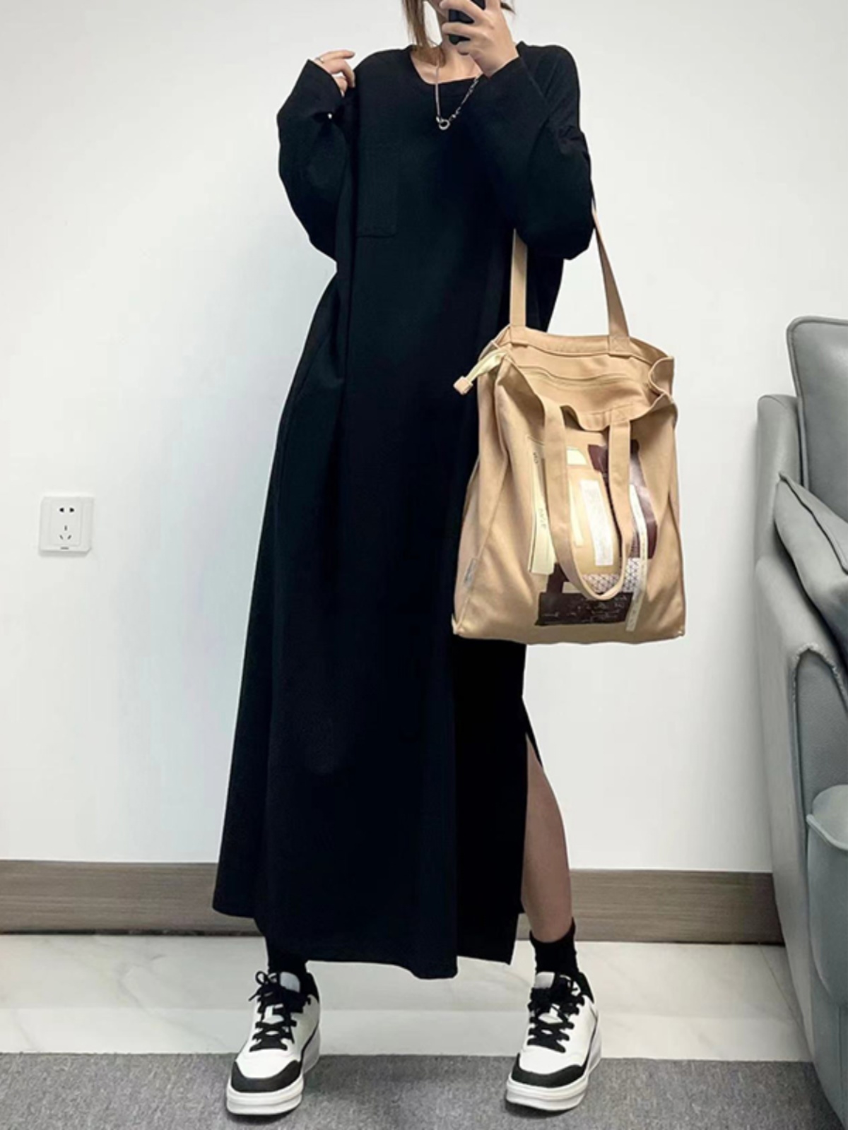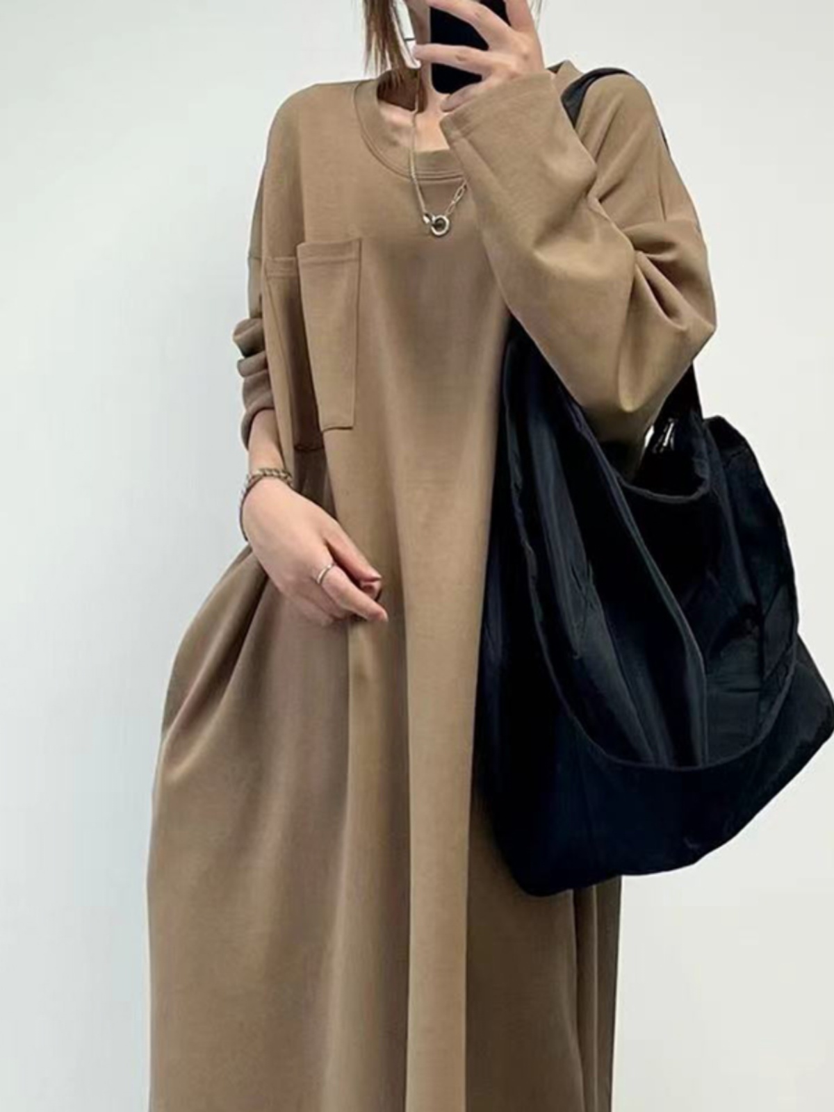 [產品名稱] [連身裙] 高品質、素色、易搭配的長袖連身裙