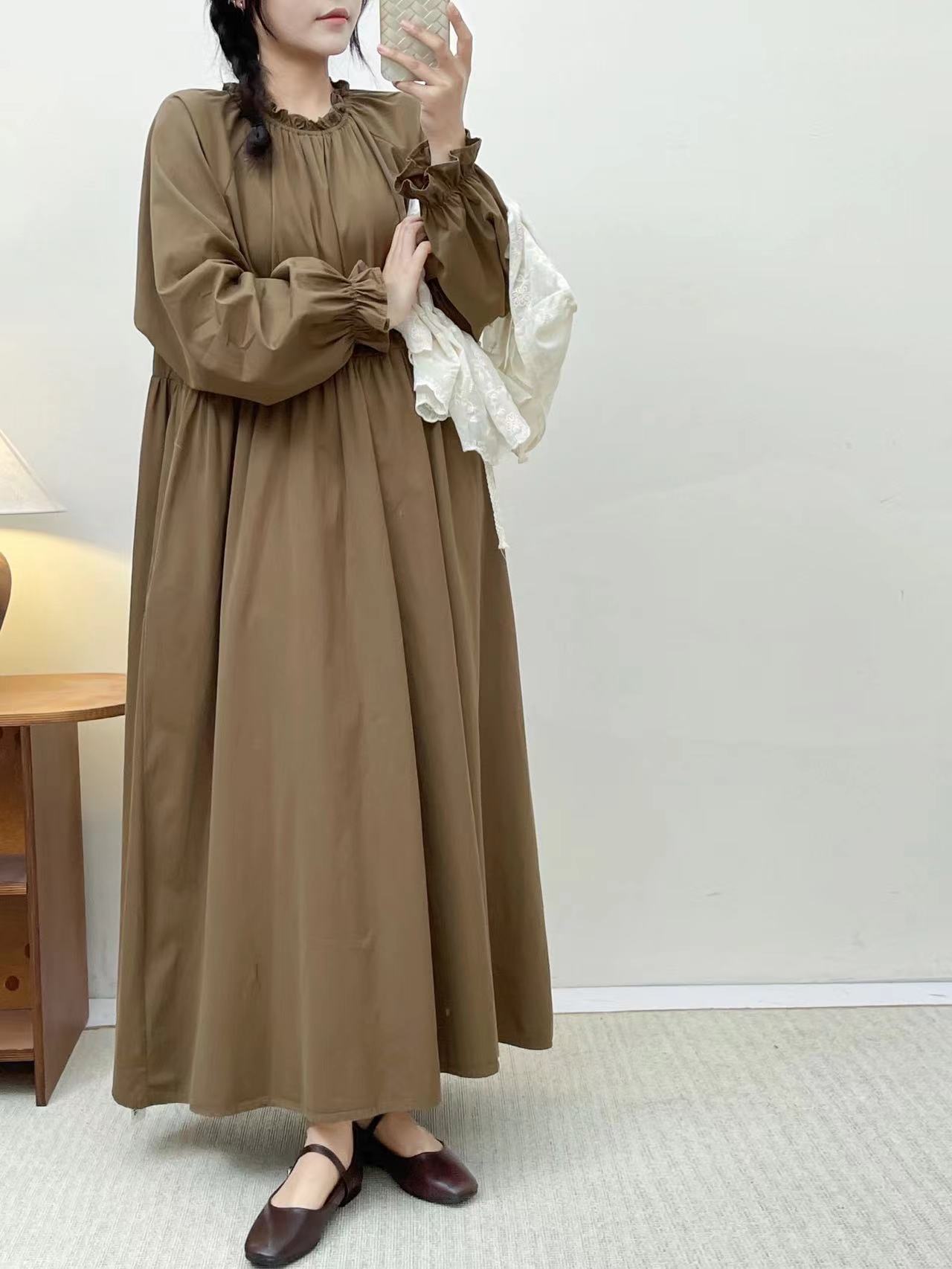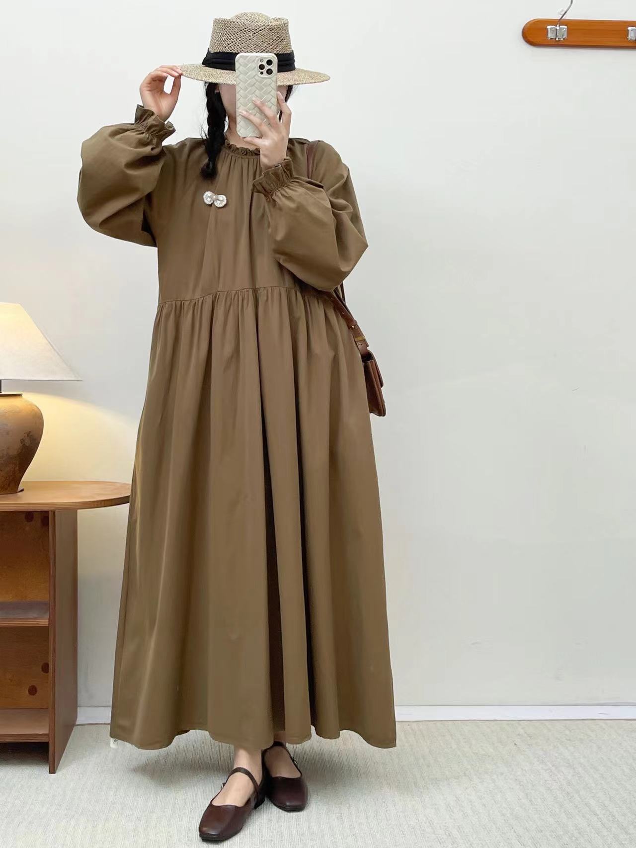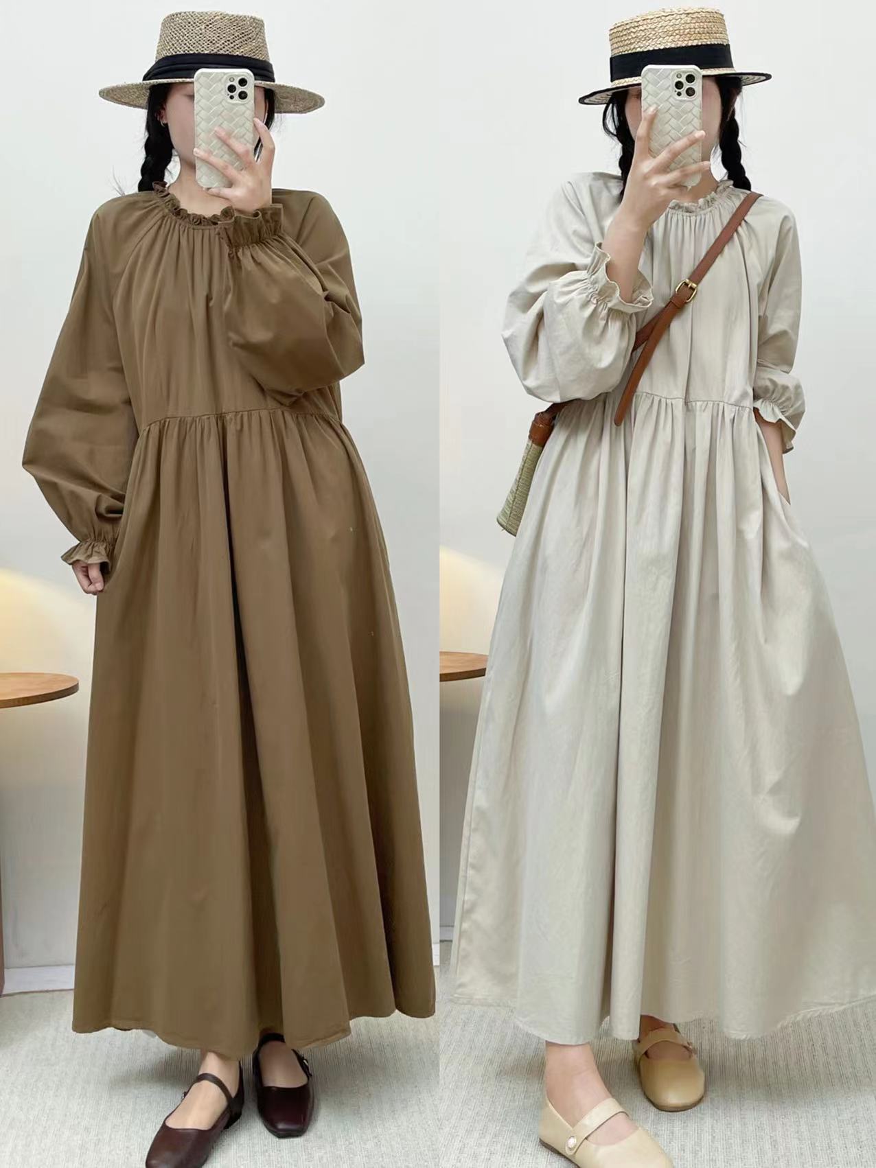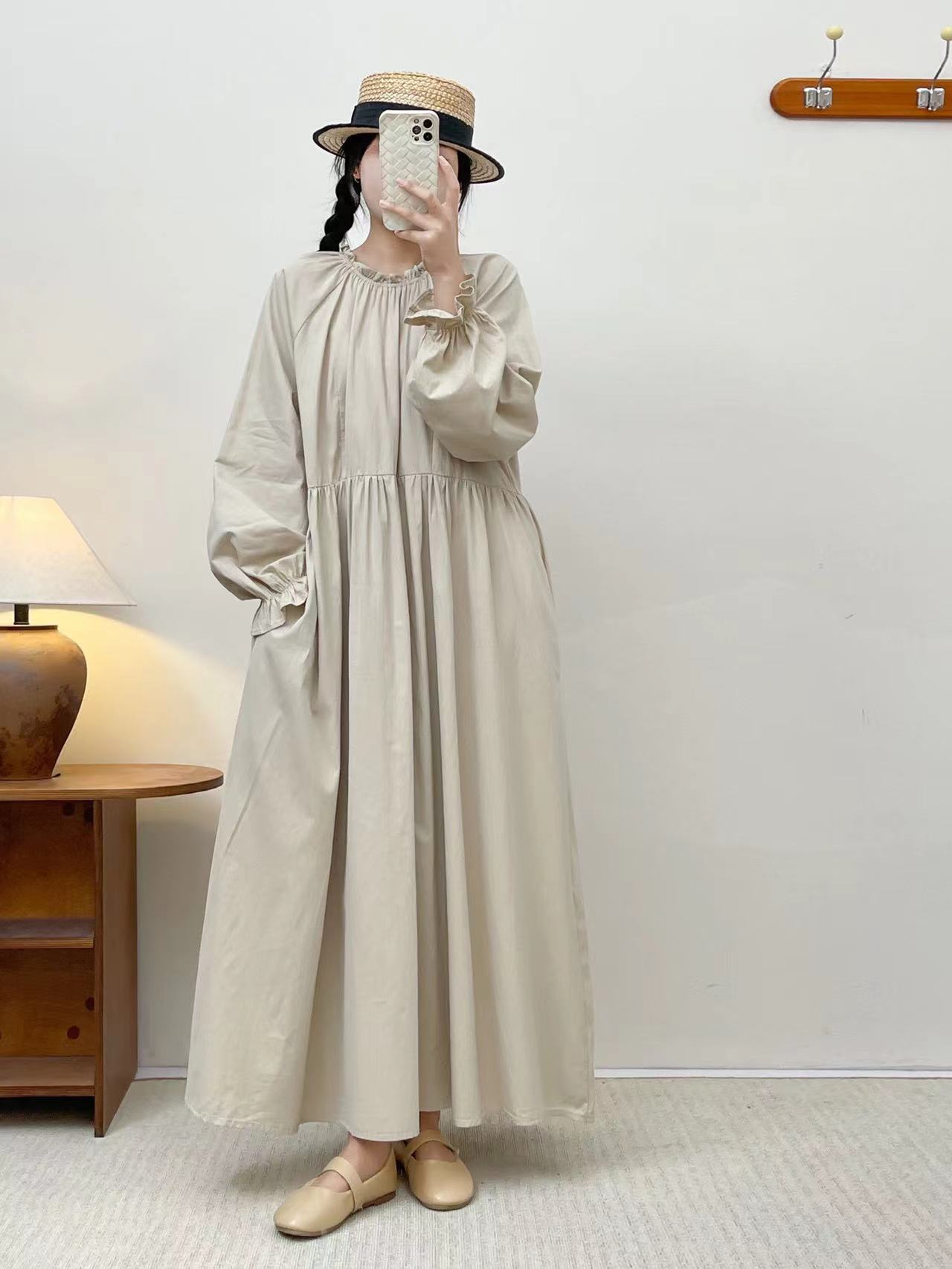 [商品名稱] [洋裝] 純色休閒修身寬鬆長袖連身裙