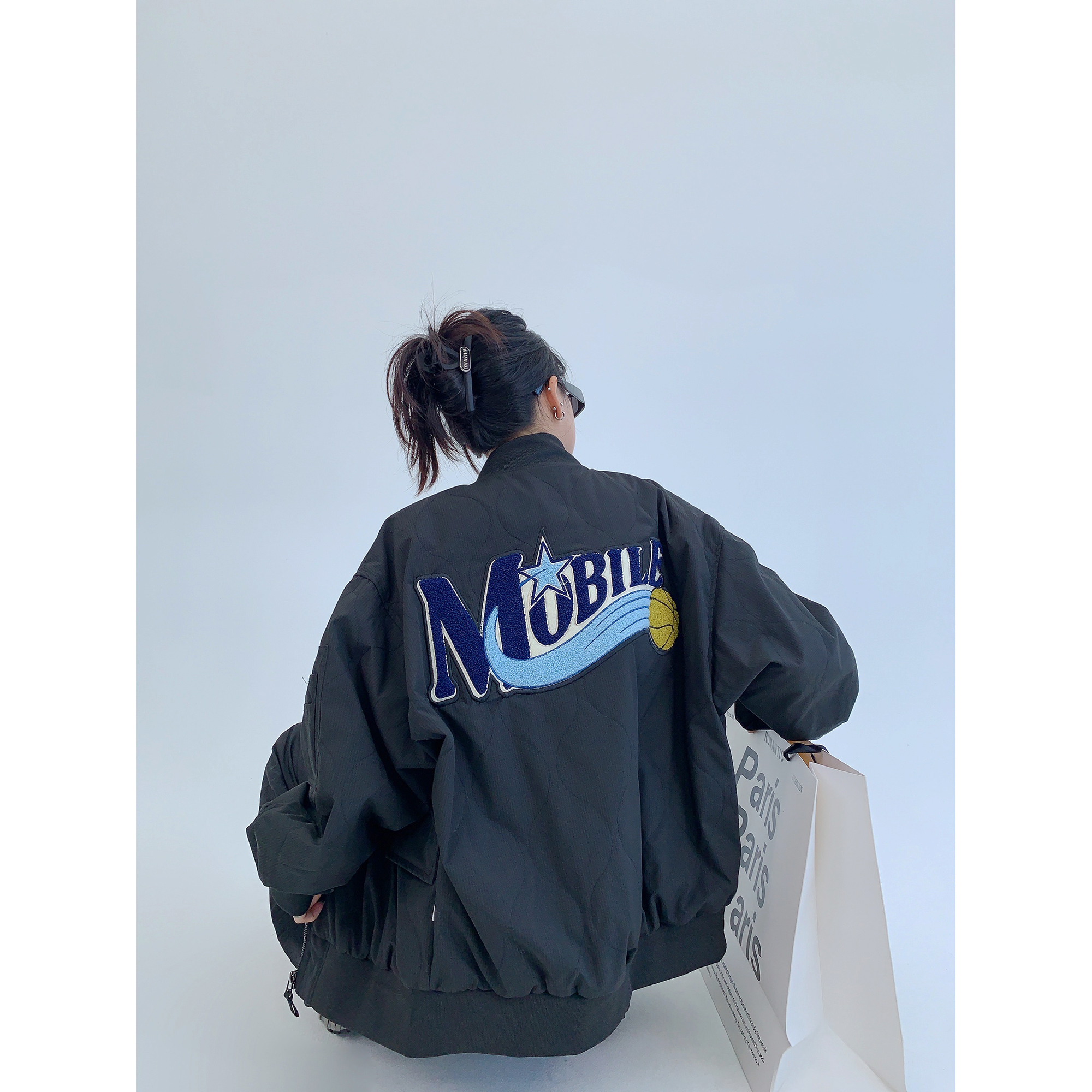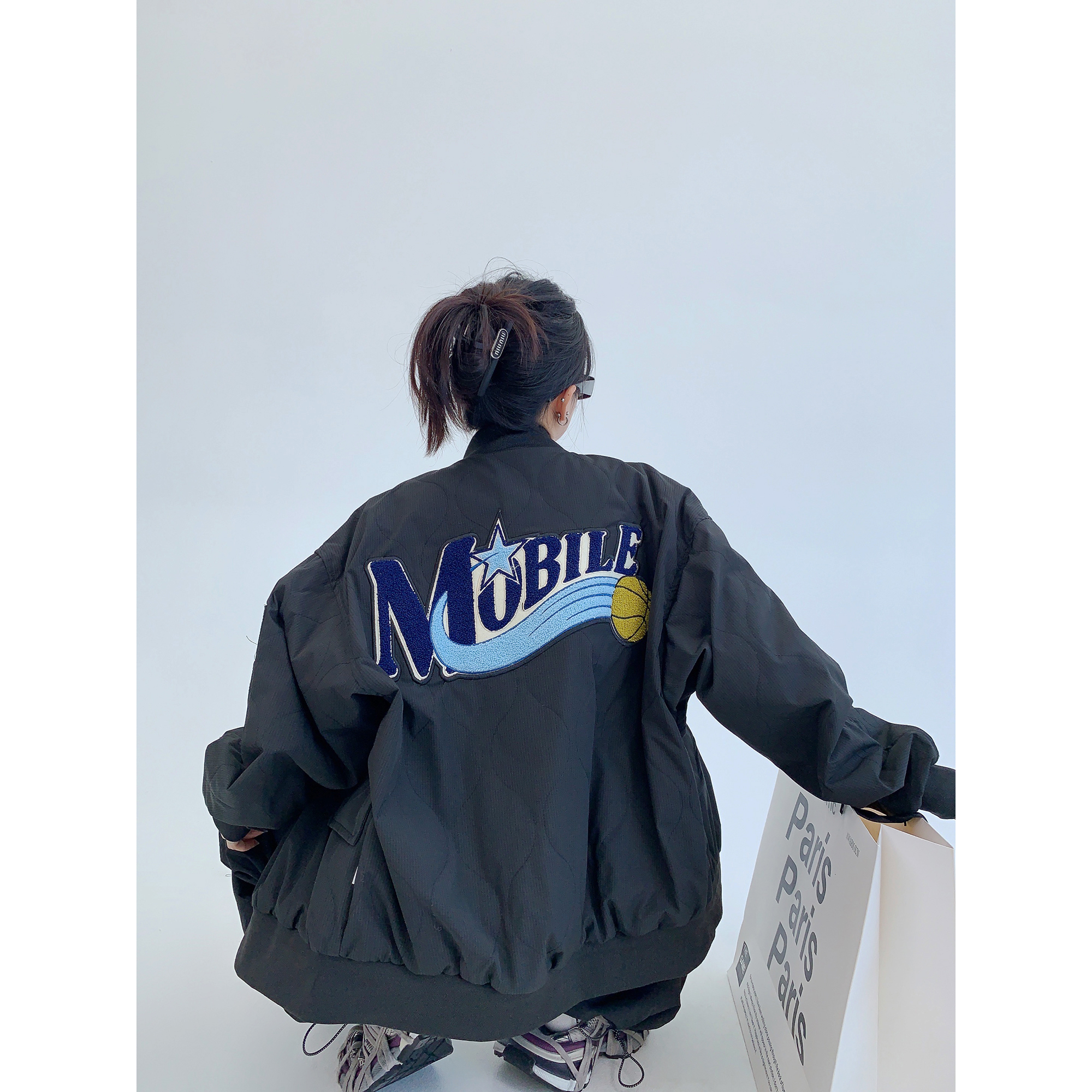 【トップス】💖カップルでも着られる!ワイドフーディ 裏起毛 重工パッチ&刺繍 レディース 冬新作【FCシリーズ】