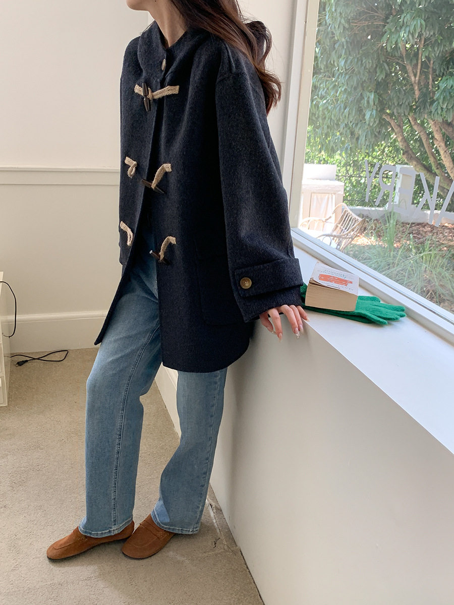 [外套] 超高品質秋冬含羊絨復古水牛籃扣羊毛大衣