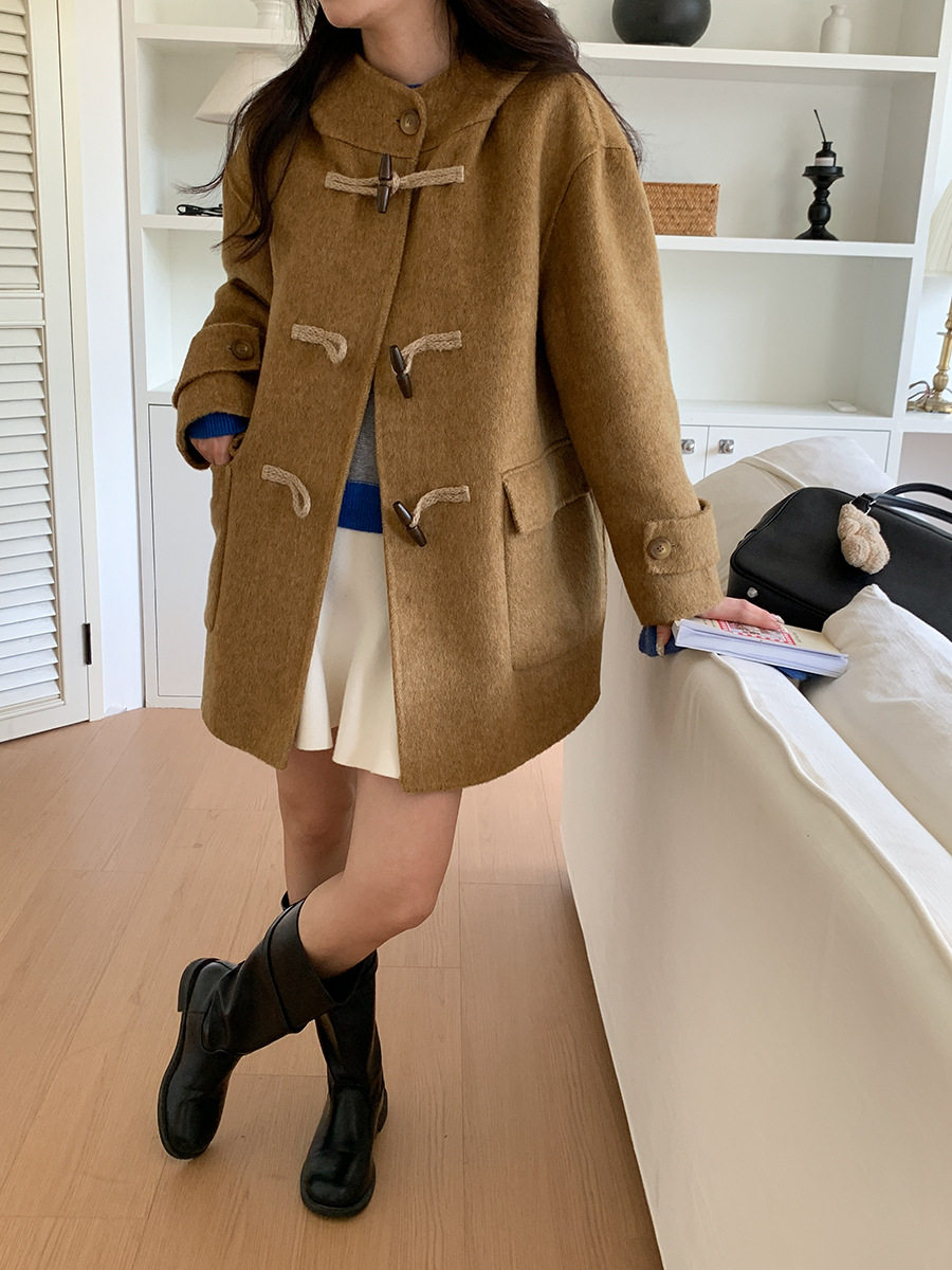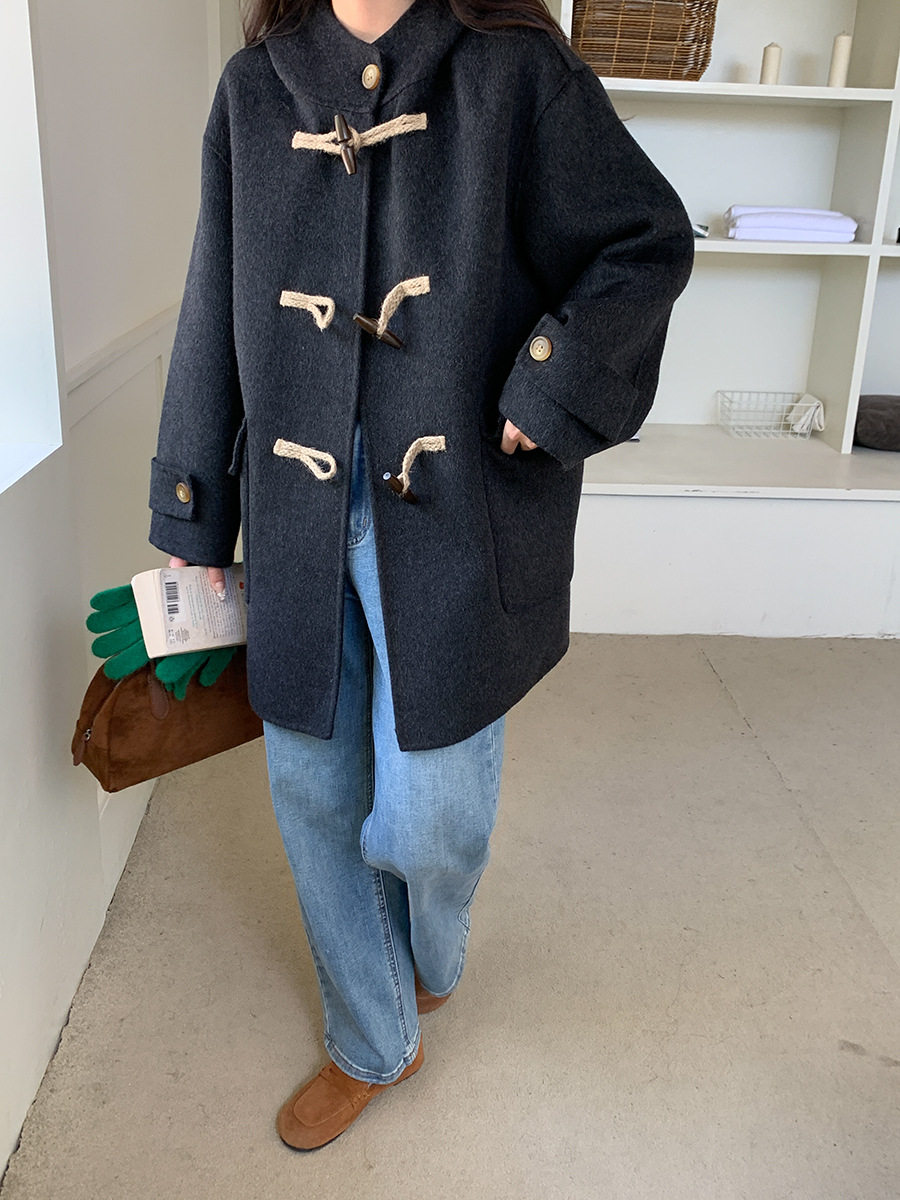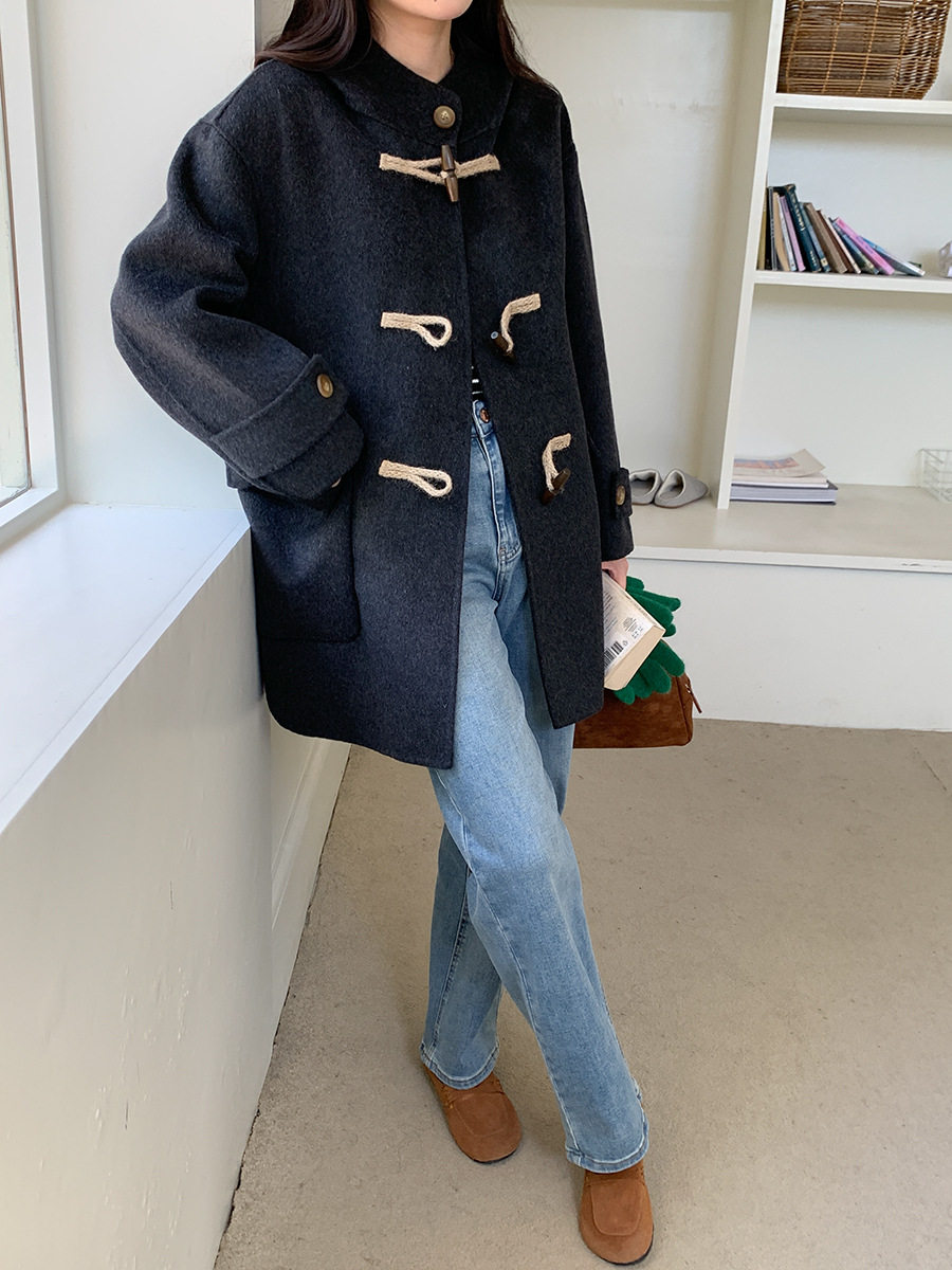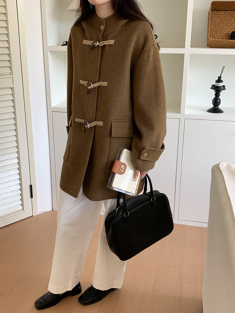 [商品名稱] [外套] 超高品質含羊絨復古水牛羈扣羊毛大衣