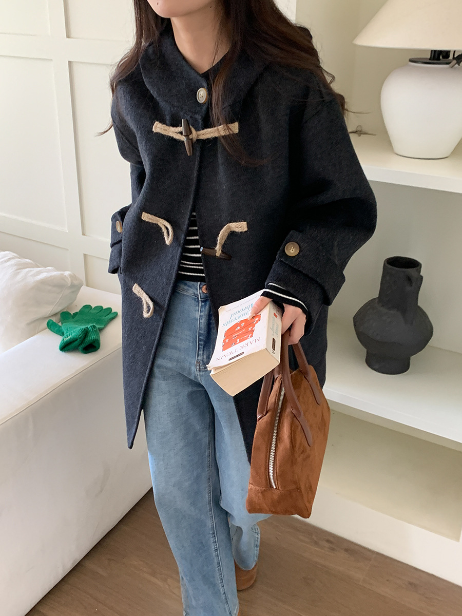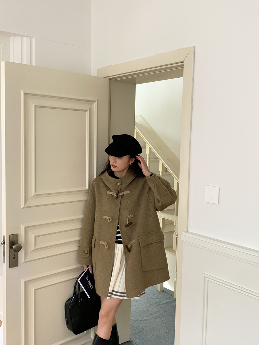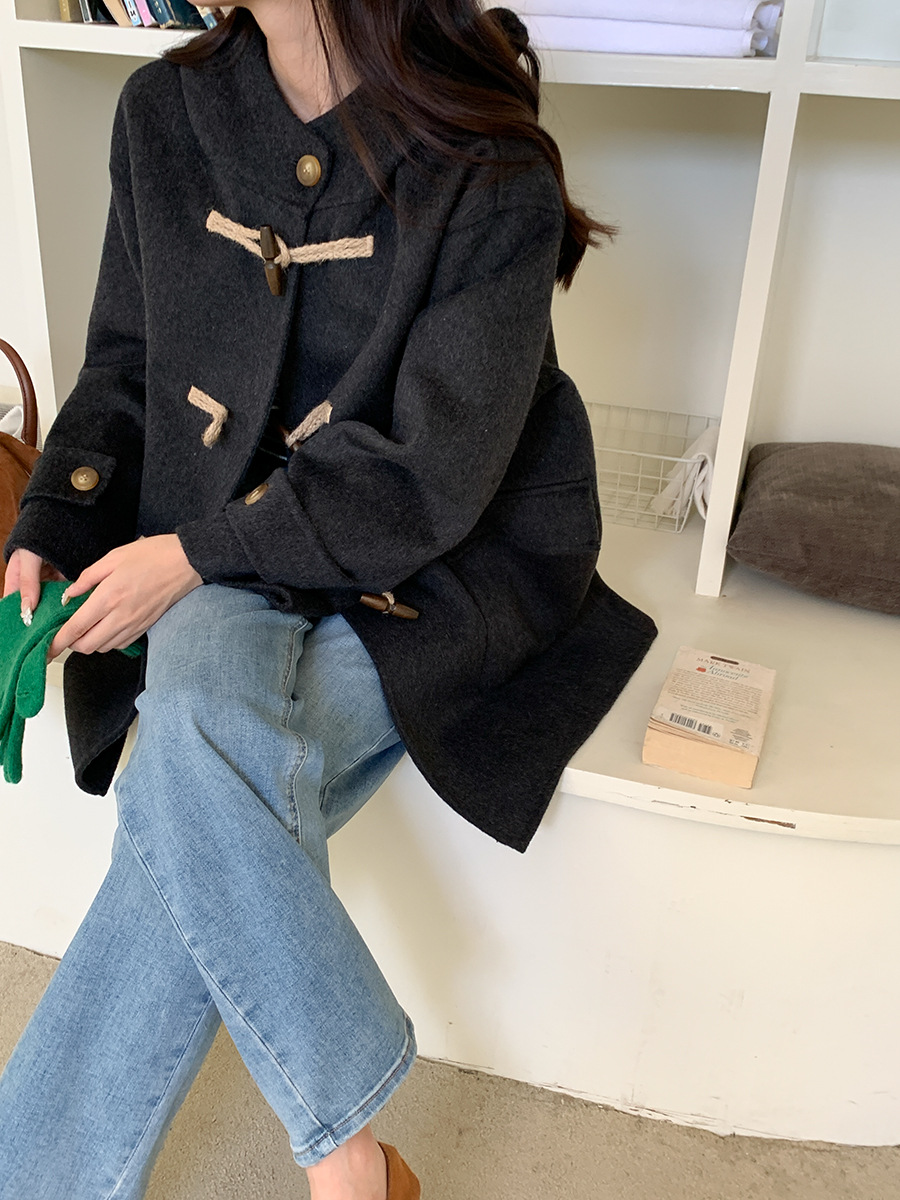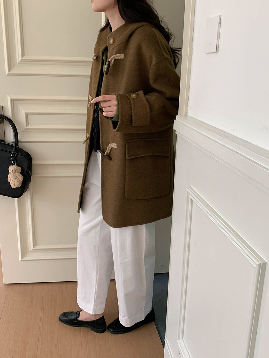 [商品名稱] [外套] 超高品質含羊絨復古水牛羈扣羊毛大衣