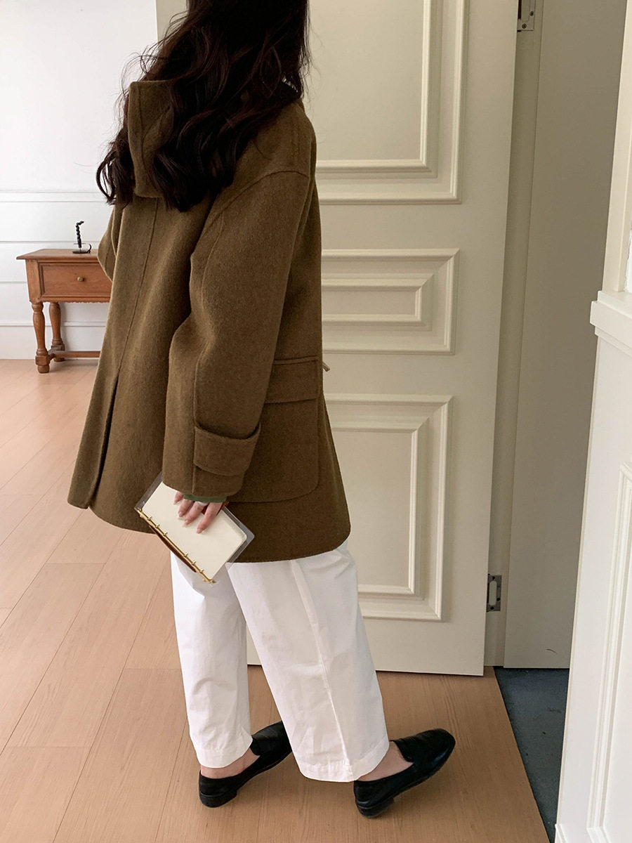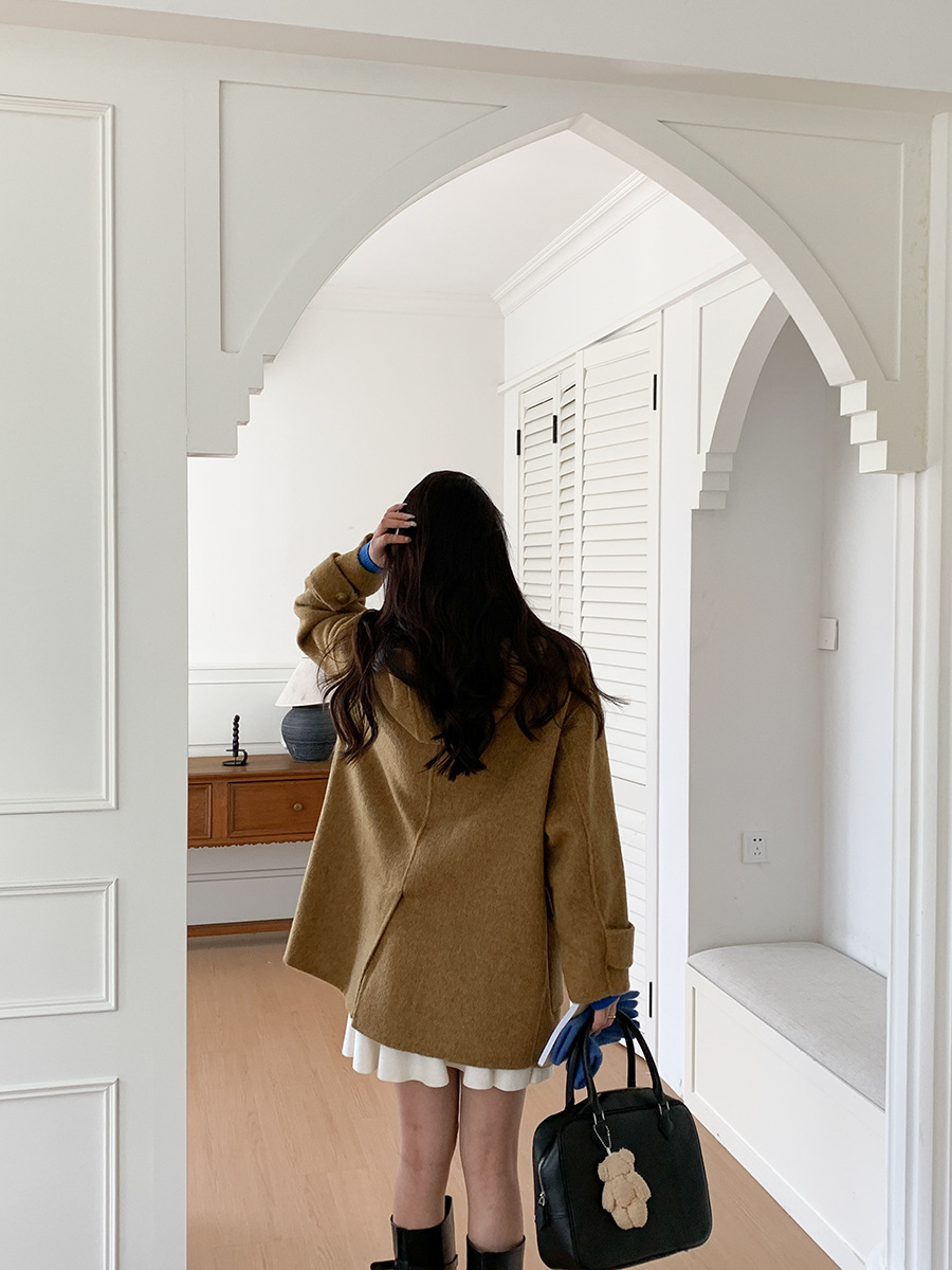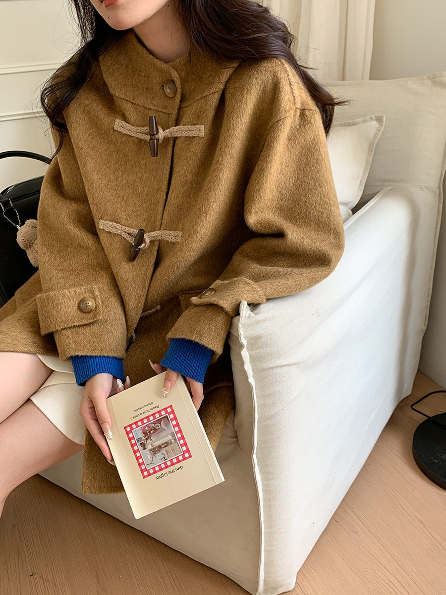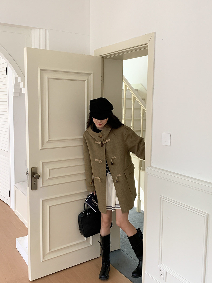 [商品名稱] [外套] 超高品質含羊絨復古水牛羈扣羊毛大衣