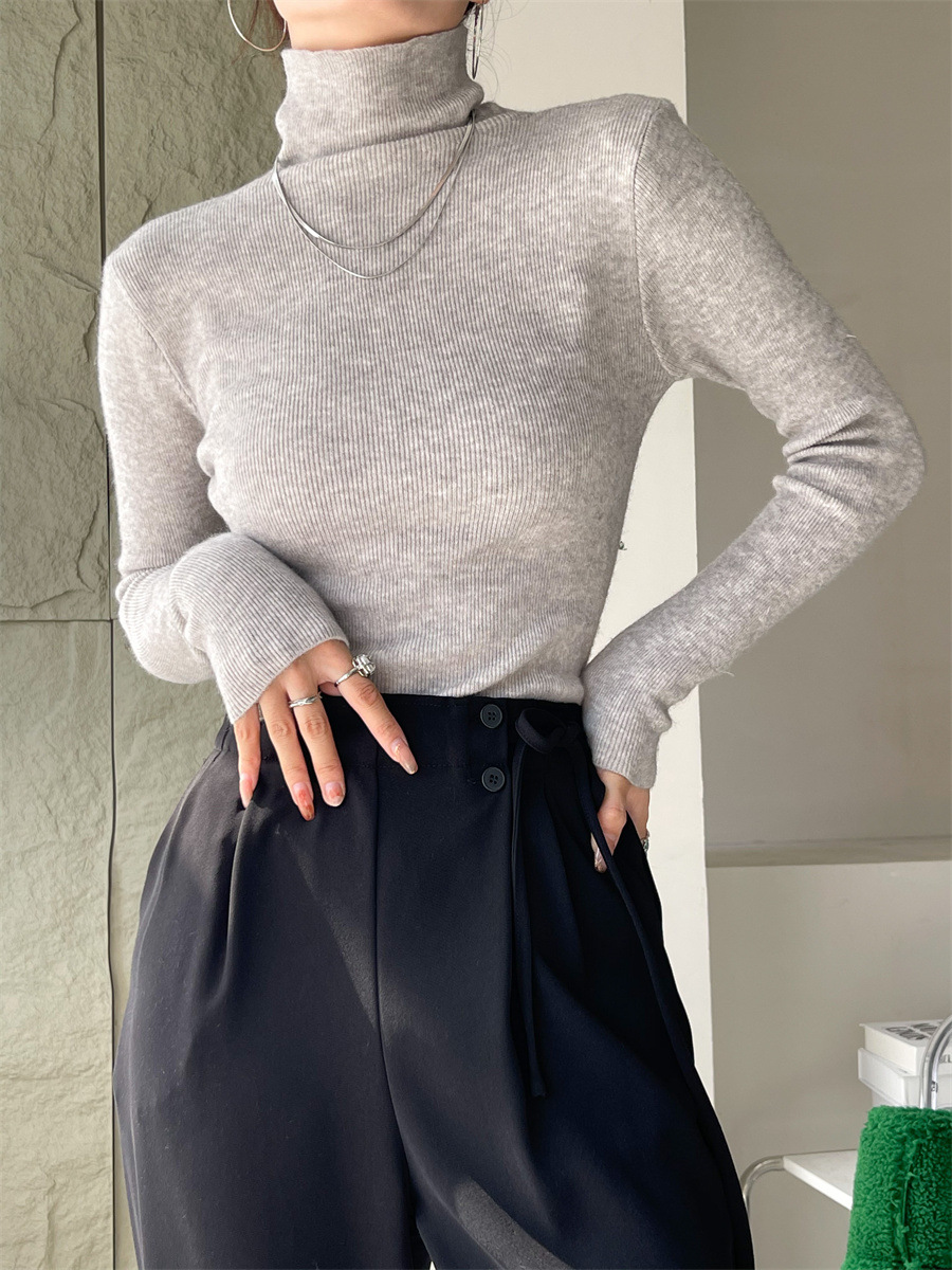 [商品名稱] [上衣] 仿羊絨高領荷葉邊針織毛衣