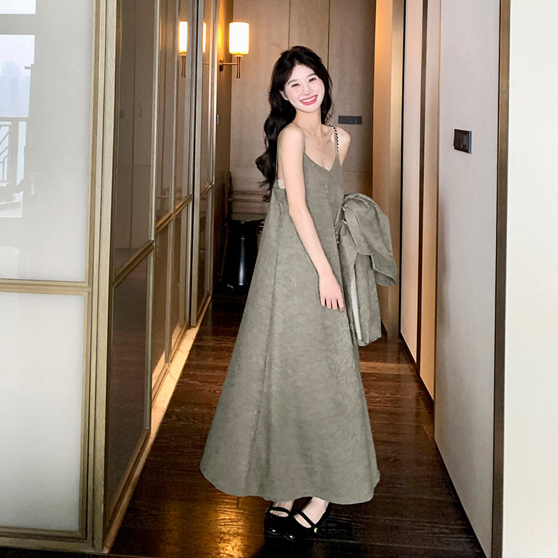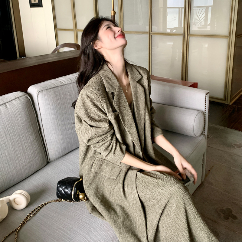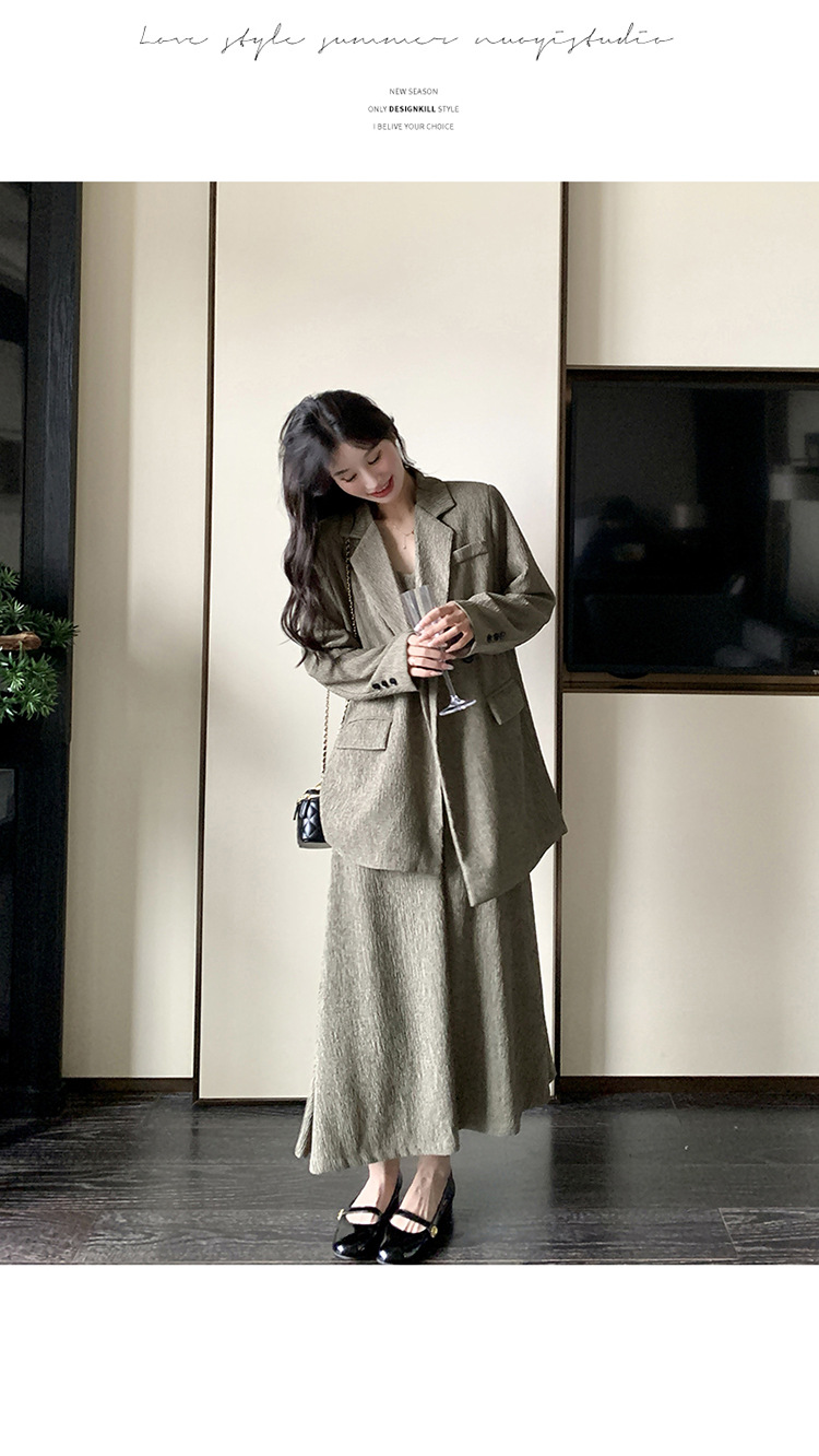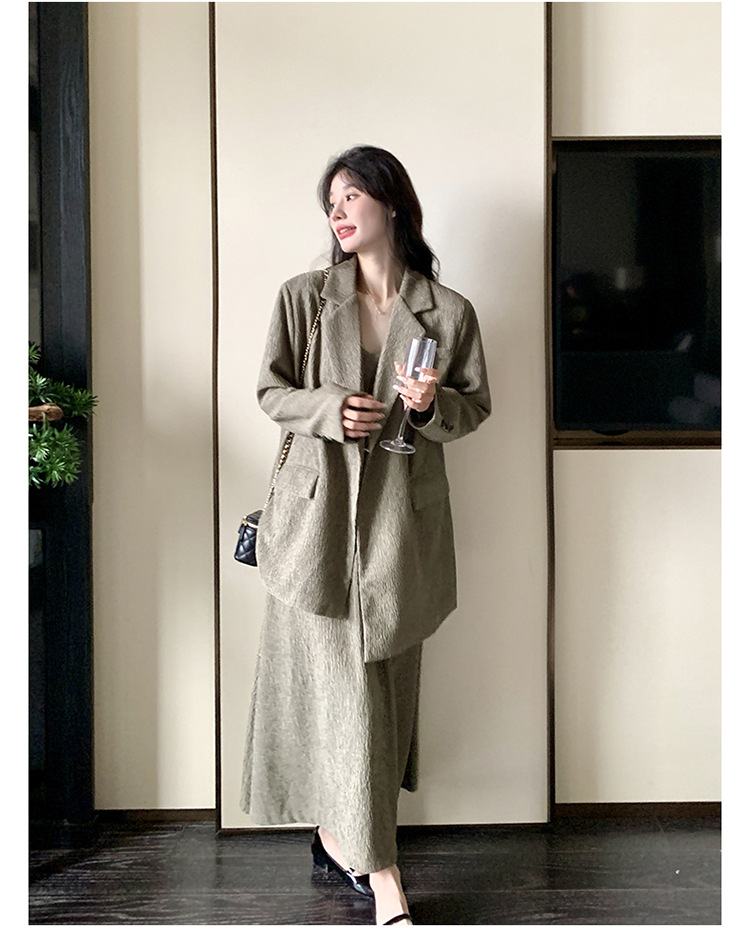 [洋裝] 春秋優雅西裝外套+吊帶裙2件式洋裝
