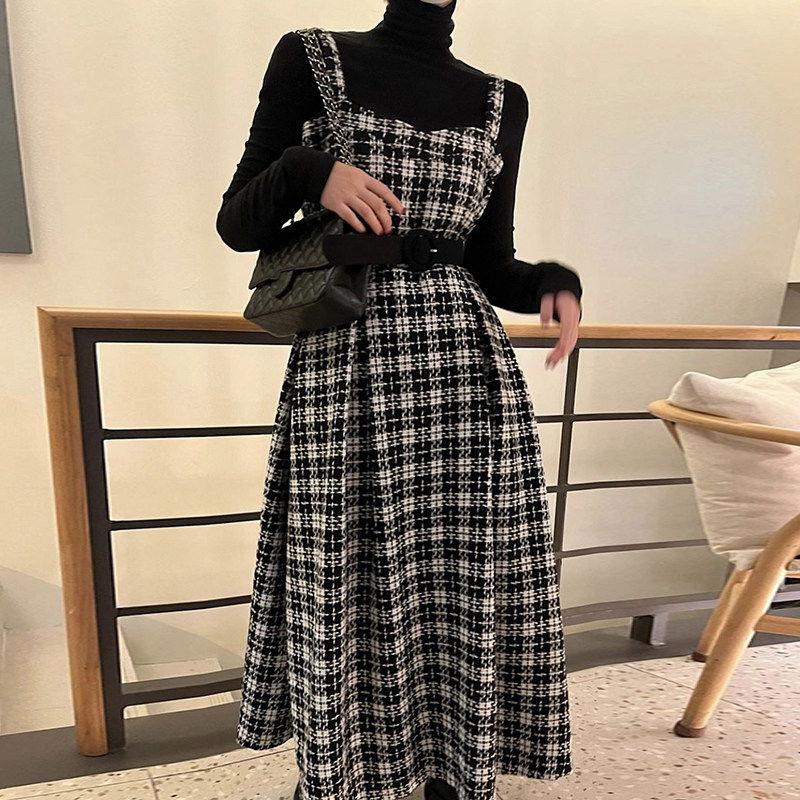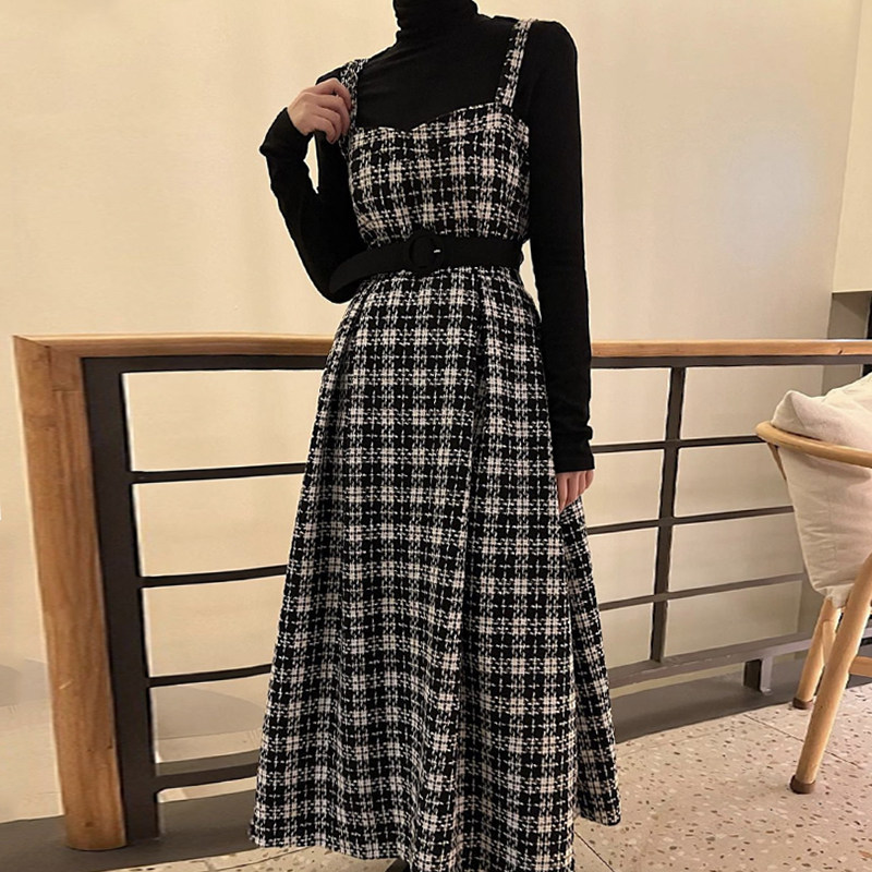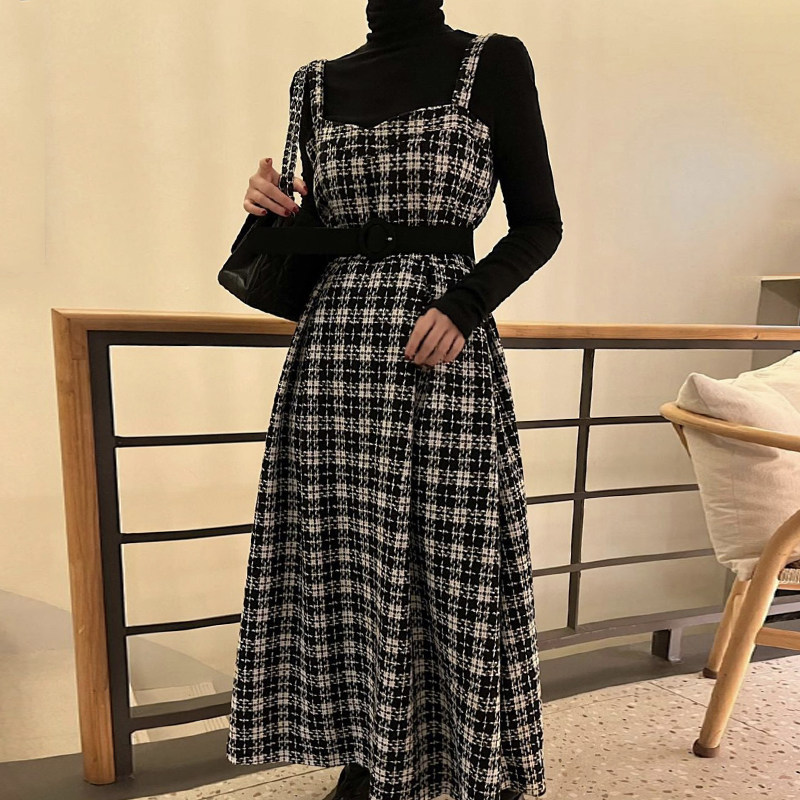 [洋裝] 【單筆訂單】春秋冬韓版時尚復古修身顯瘦T卹+無袖洋裝套裝