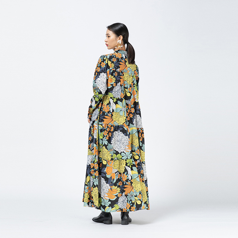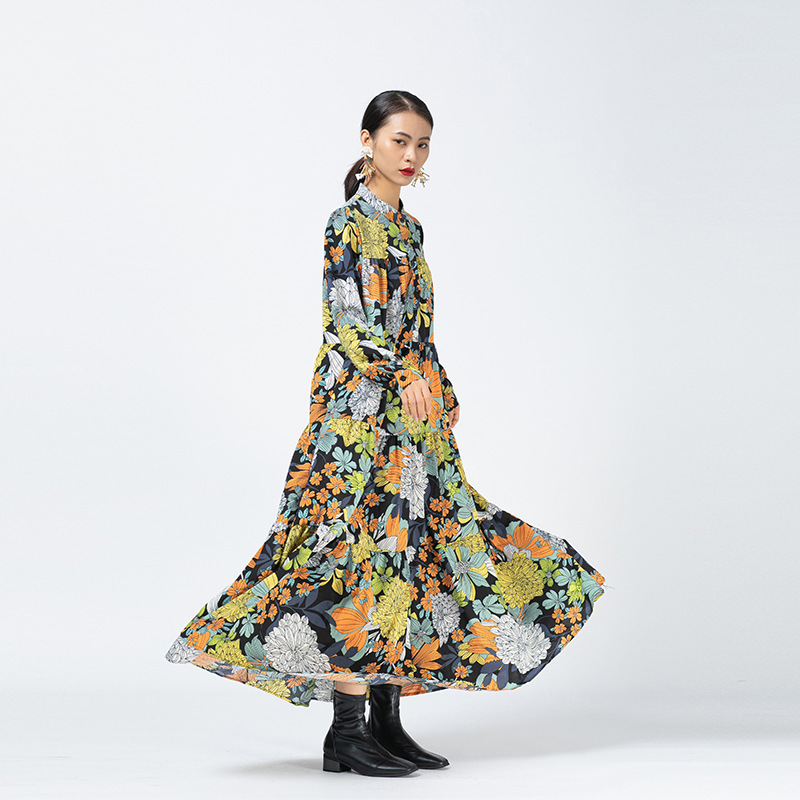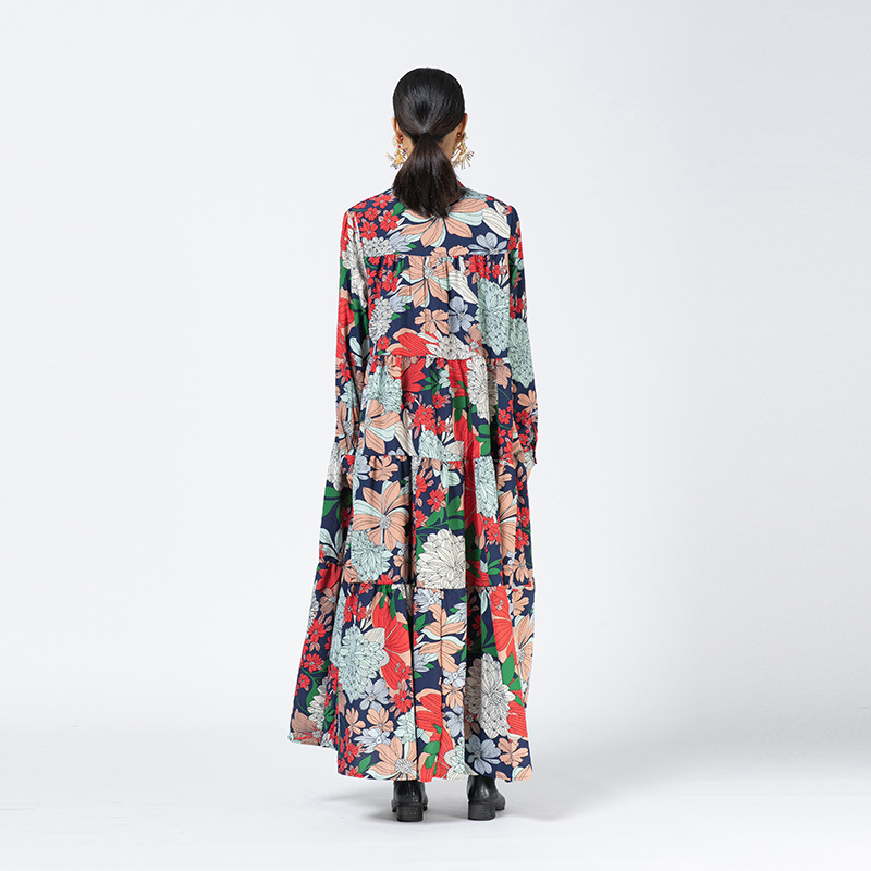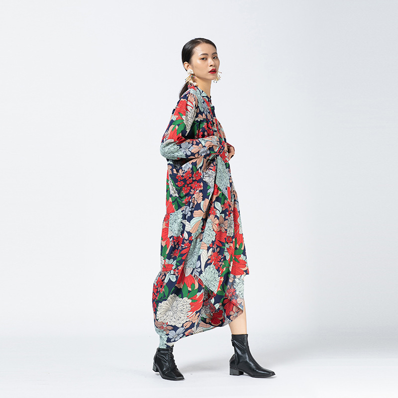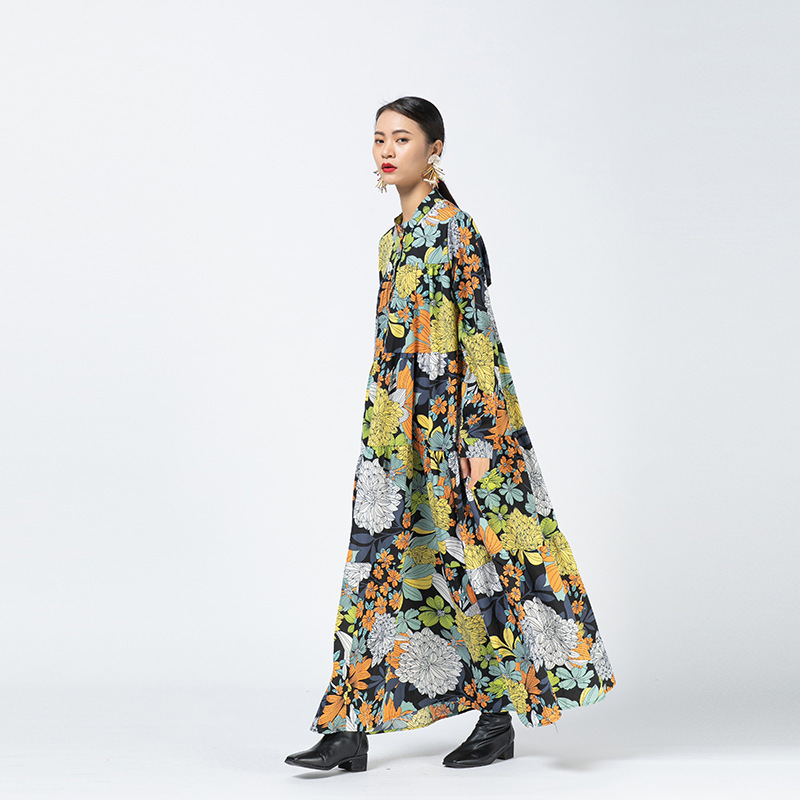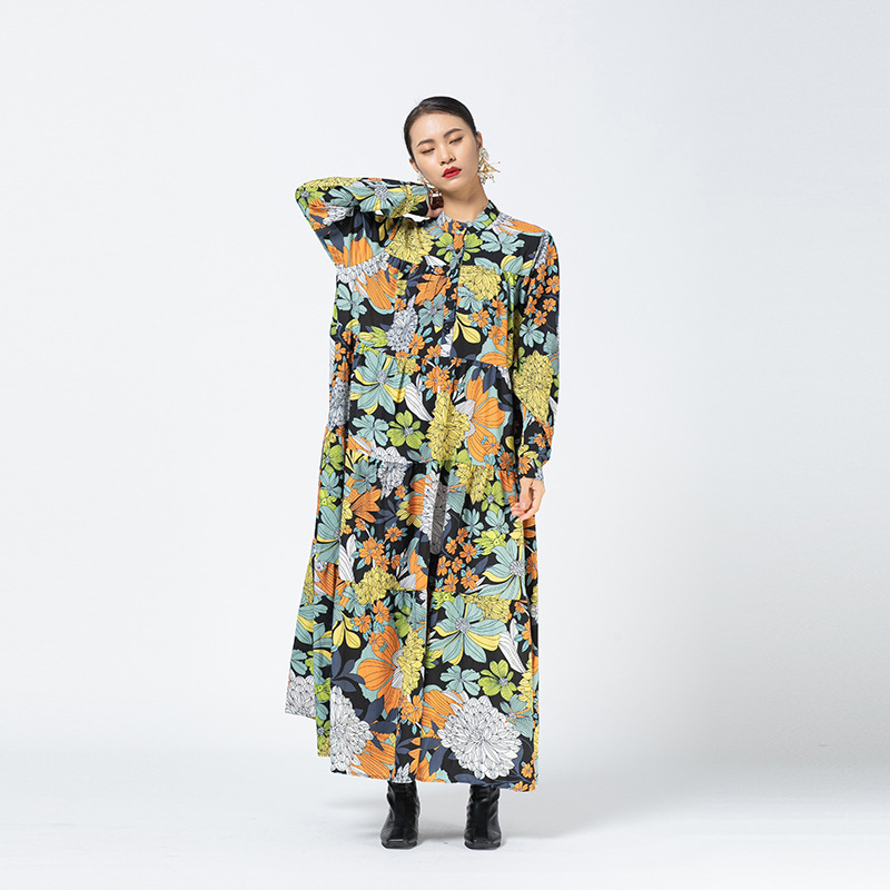 【商品名稱】【洋裝】碎花大尺寸寬鬆休閒長袖連身裙