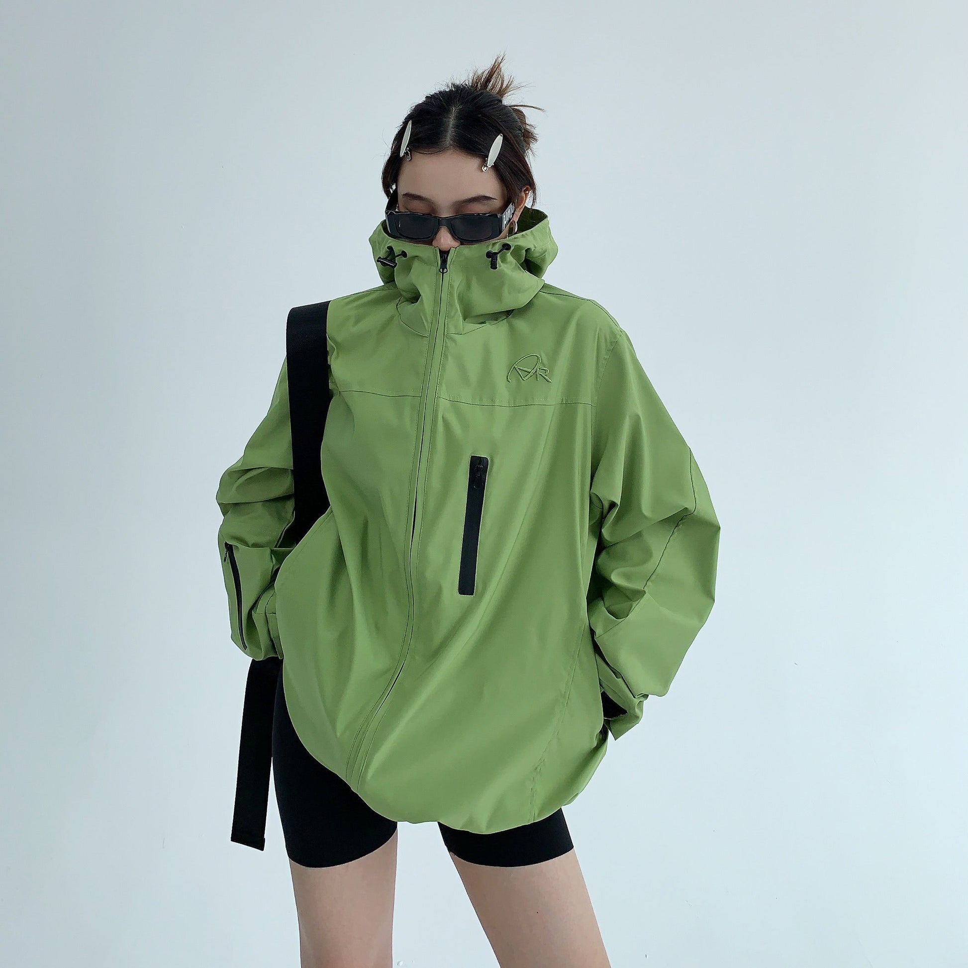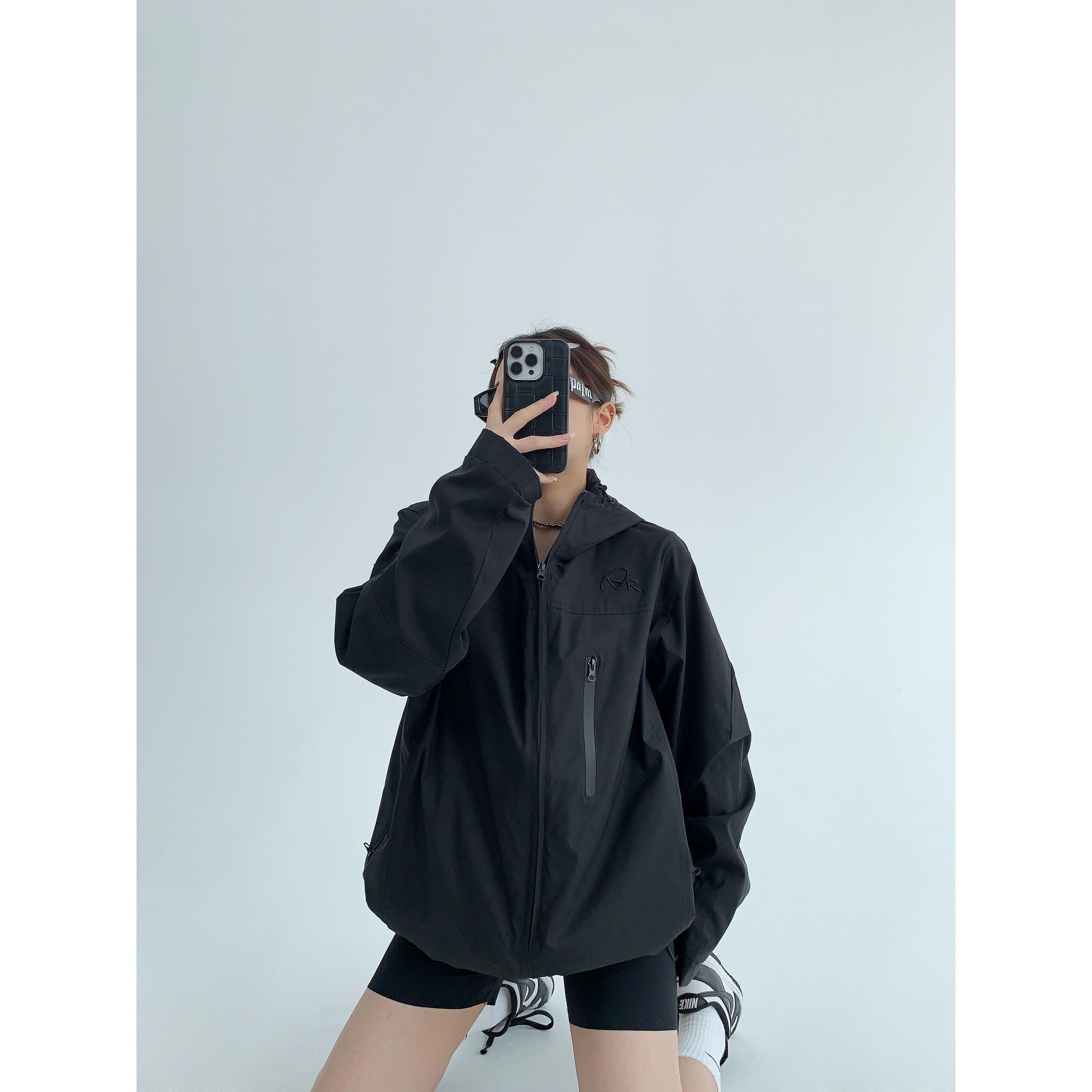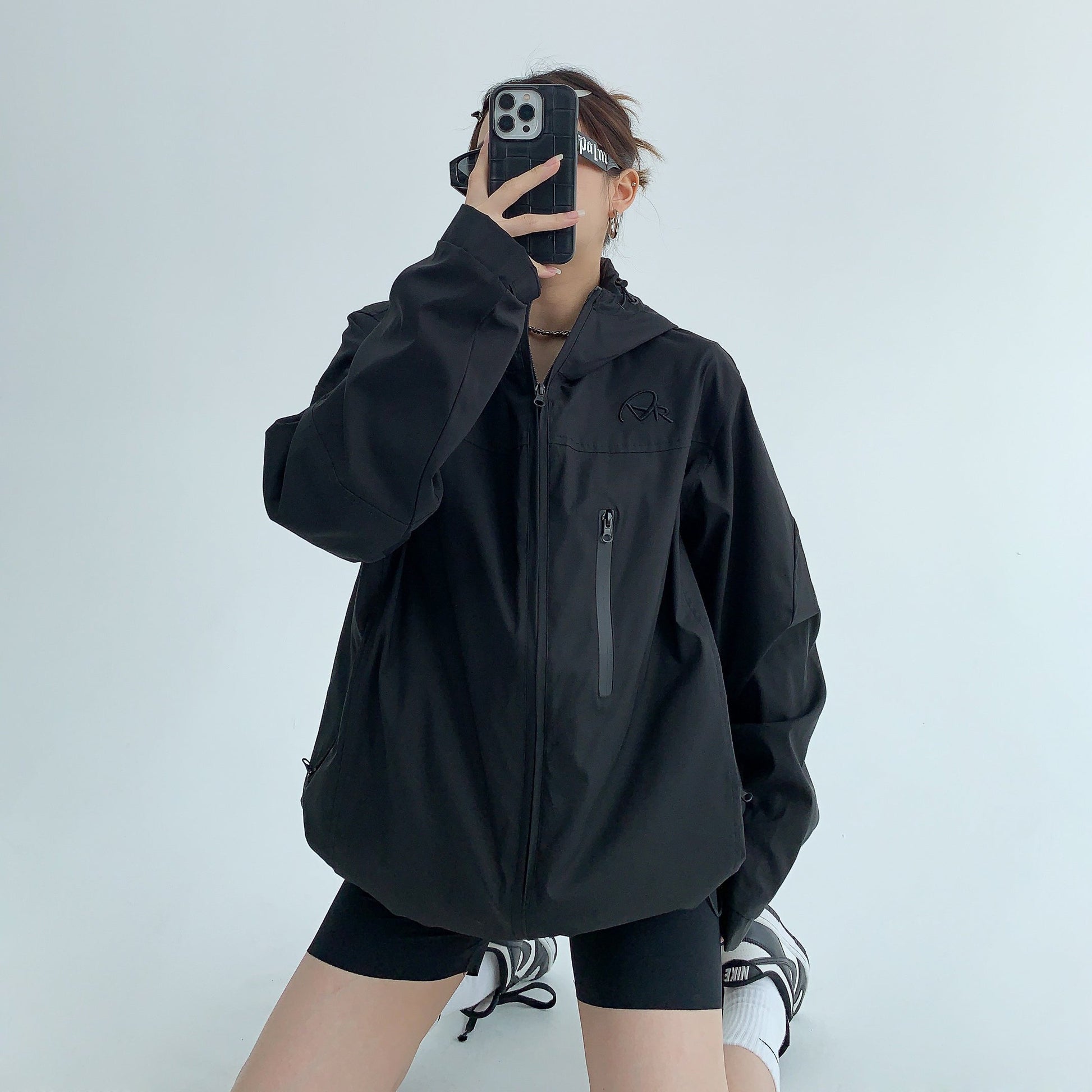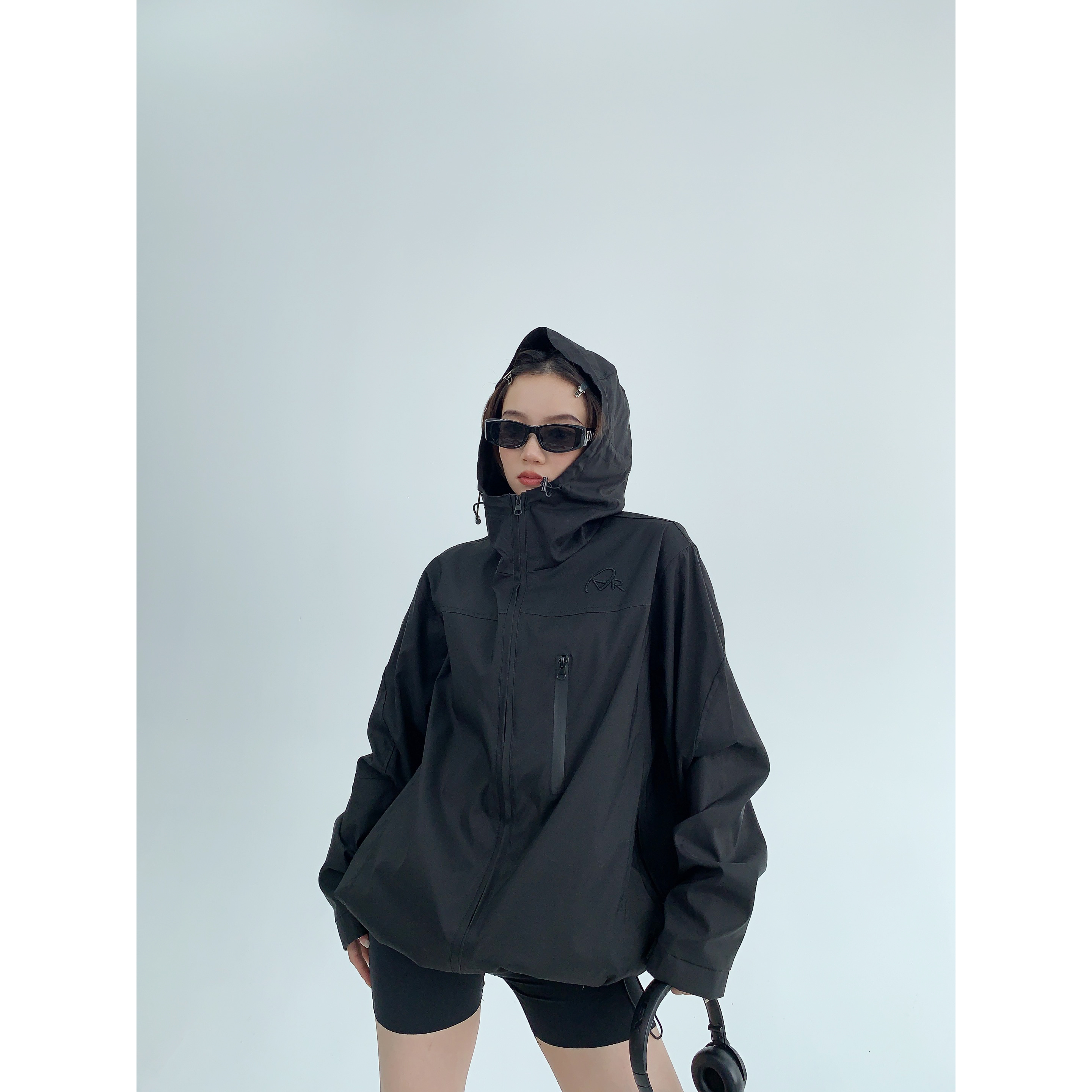 【商品名稱】【外套】美式高端薄款寬鬆刺繡連帽外套