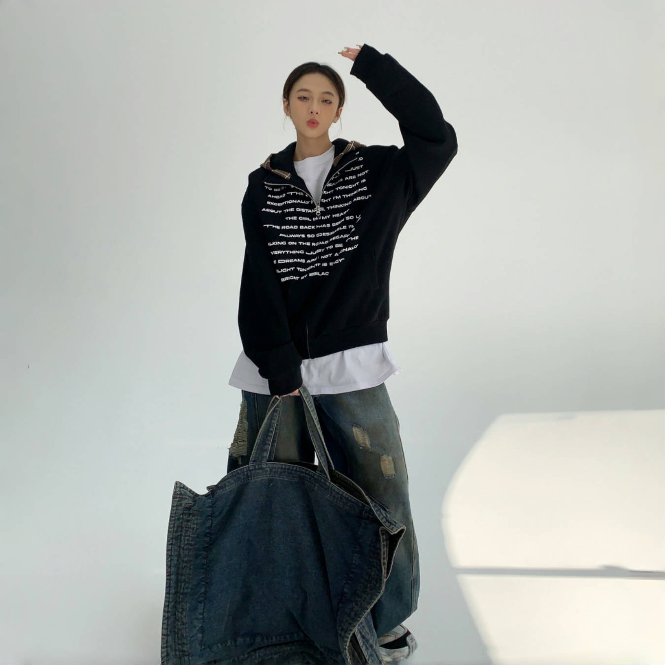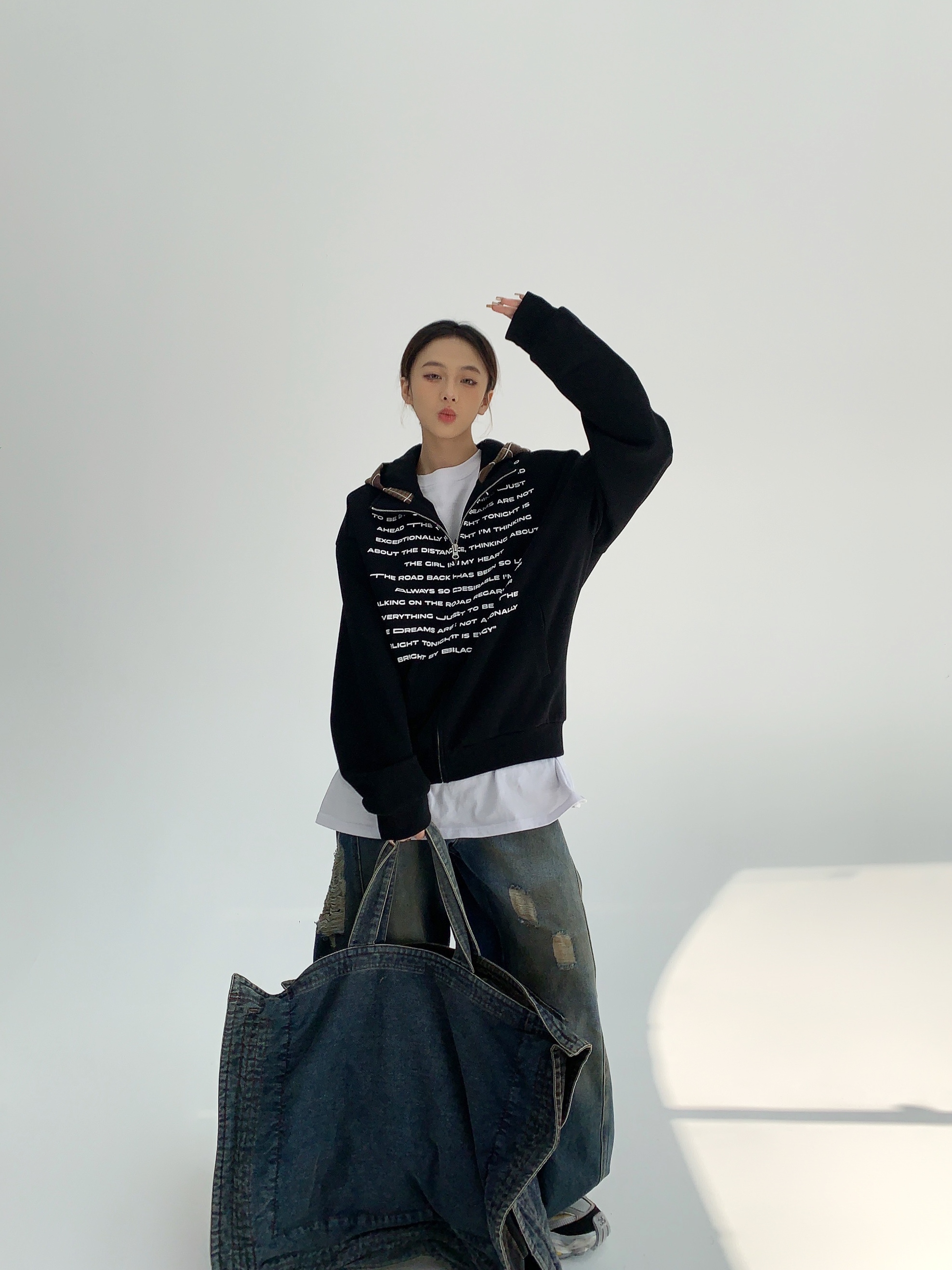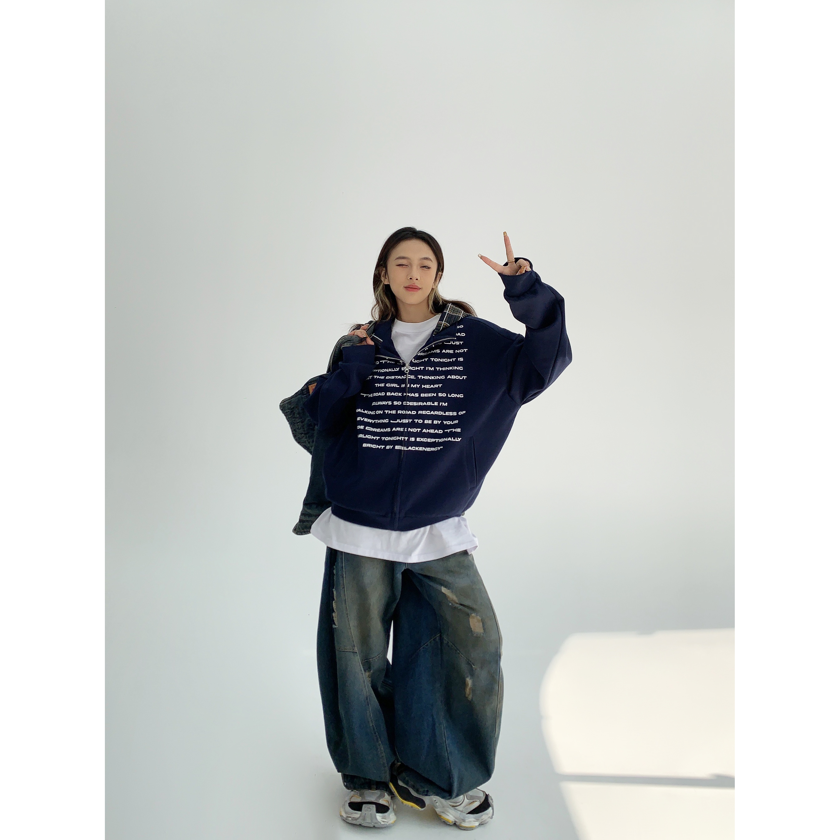 【トップス】💖カップルでも着られる!ワイドフーディ 裏起毛 重工パッチ&刺繍 レディース 冬新作【FCシリーズ】