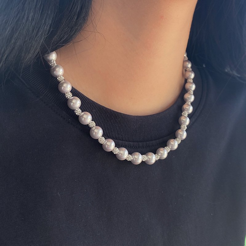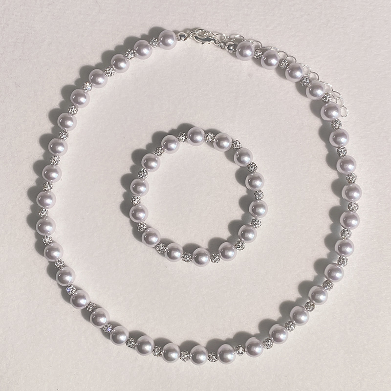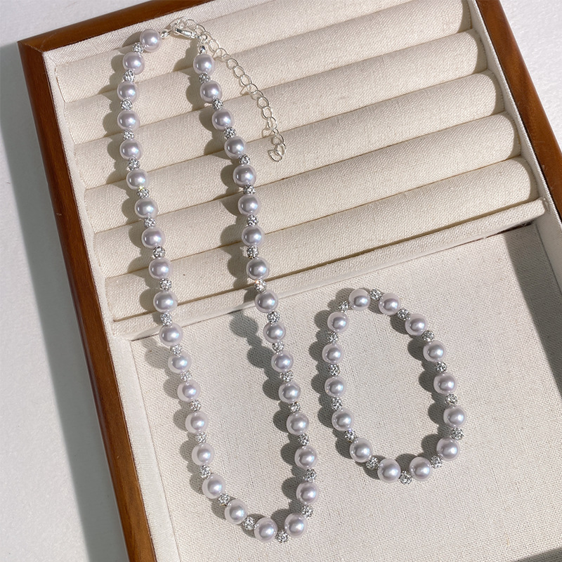 [商品名稱] [週邊商品] 優雅閃耀鋯石人造珍珠手鍊+項鍊2件套