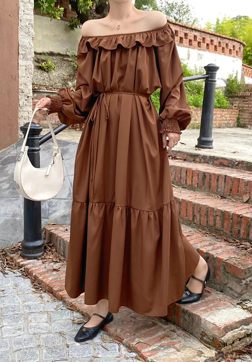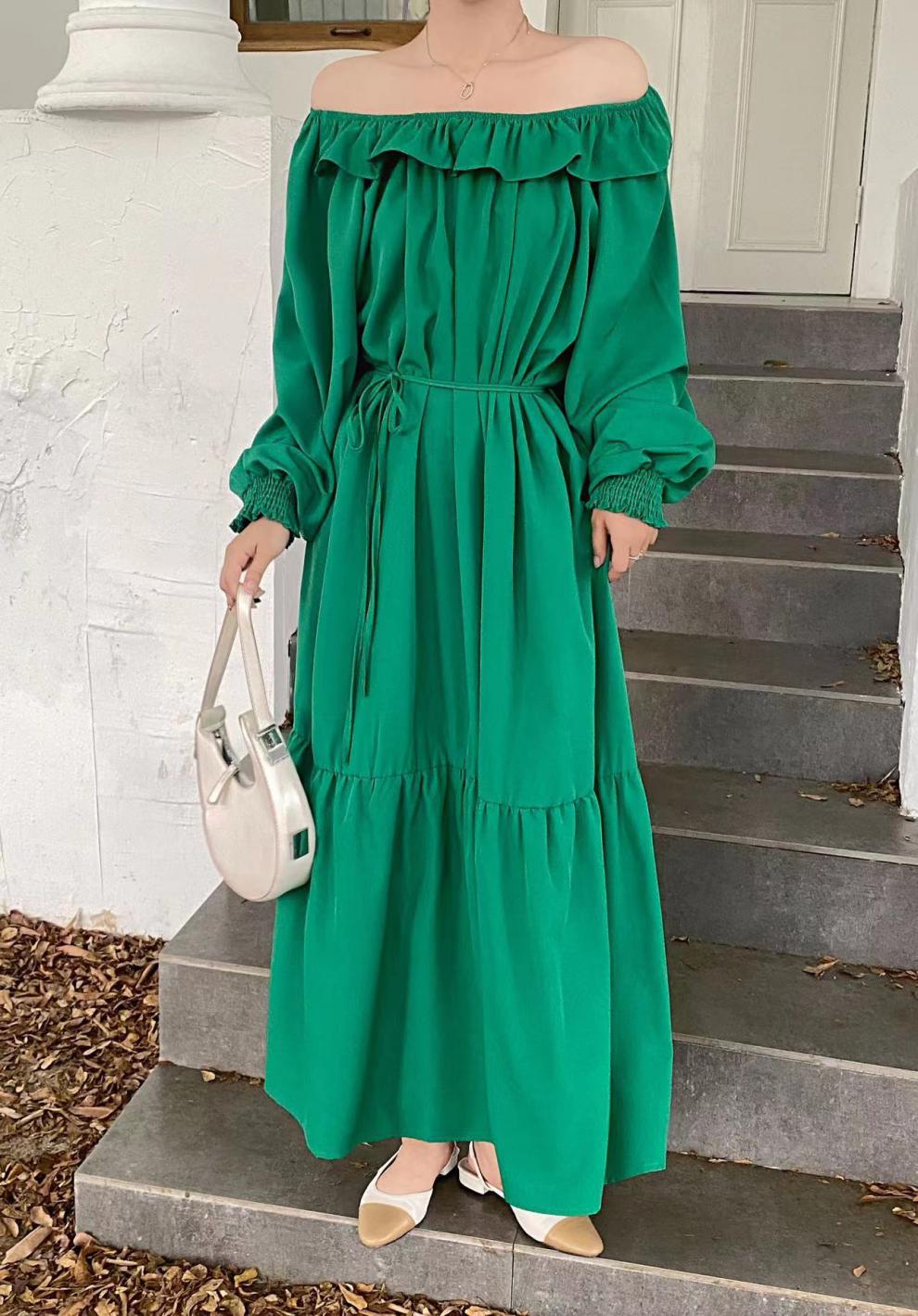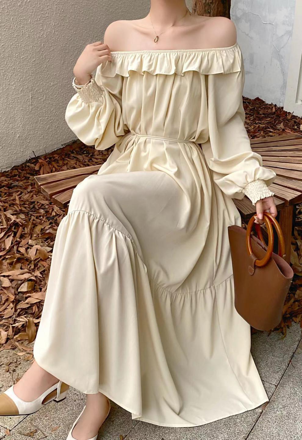 [商品名稱] [洋裝] 韓版露肩寬鬆2way長袖洋裝
