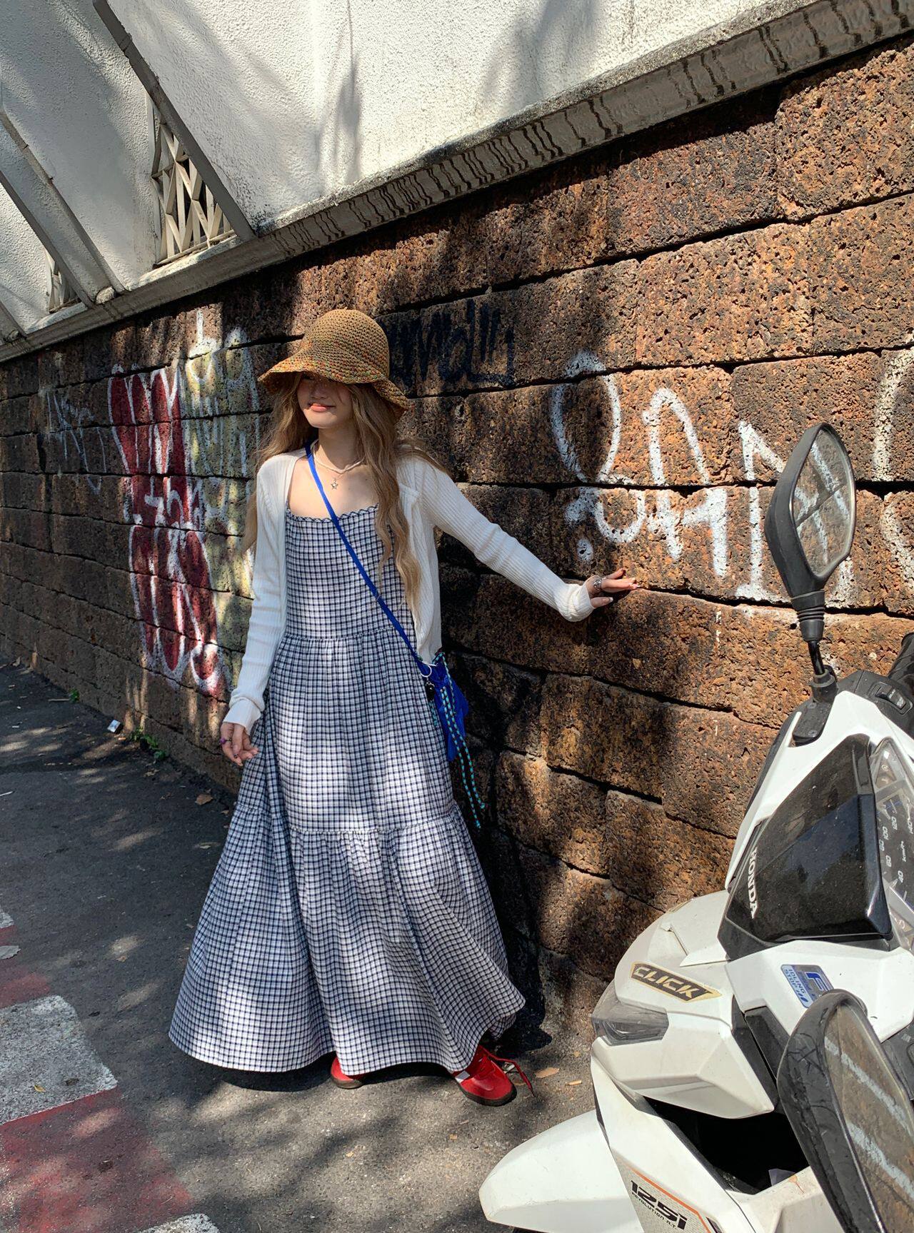 【單筆訂單】【洋裝】韓版時尚春夏復古優雅顯瘦格紋無袖洋裝+開襟衫兩件套【SH系列】