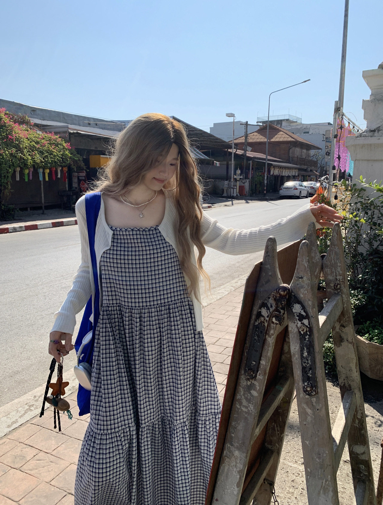 【商品名稱】【單筆訂單】【連身裙】韓版chic春夏復古優雅修身格紋無袖連身裙+開襟衫兩件套【SH系列】