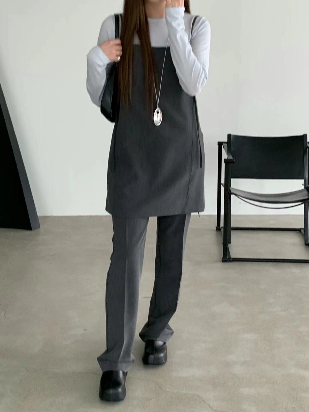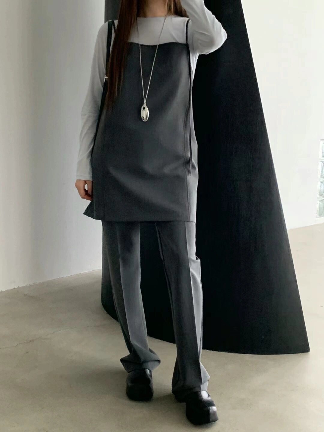 【ワンピース】細見え 日系 Vネック 無地 長袖ワンピース 切替デザイン ゆったり 気質ロング【JZシリーズ】【AHシリーズ】