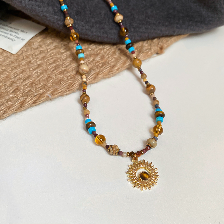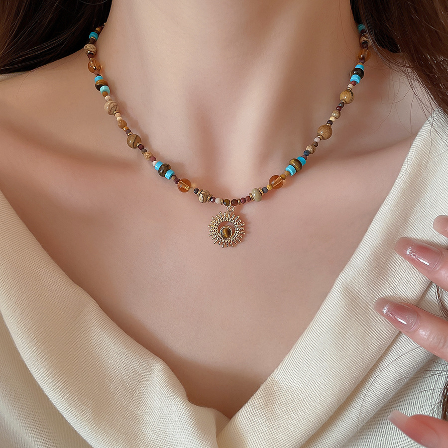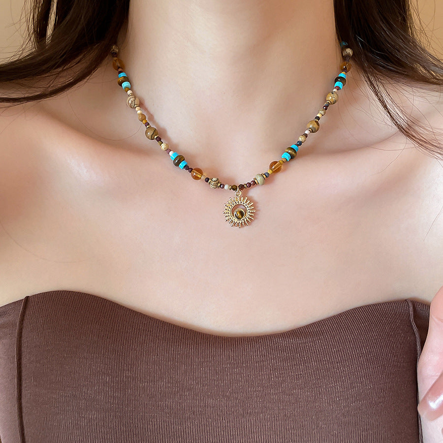 【產品名稱】【商品】鈦鋼珠太陽花項鍊 新中式復古風奢華choker項鍊