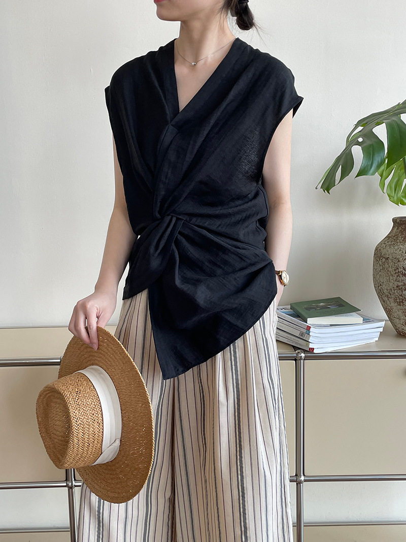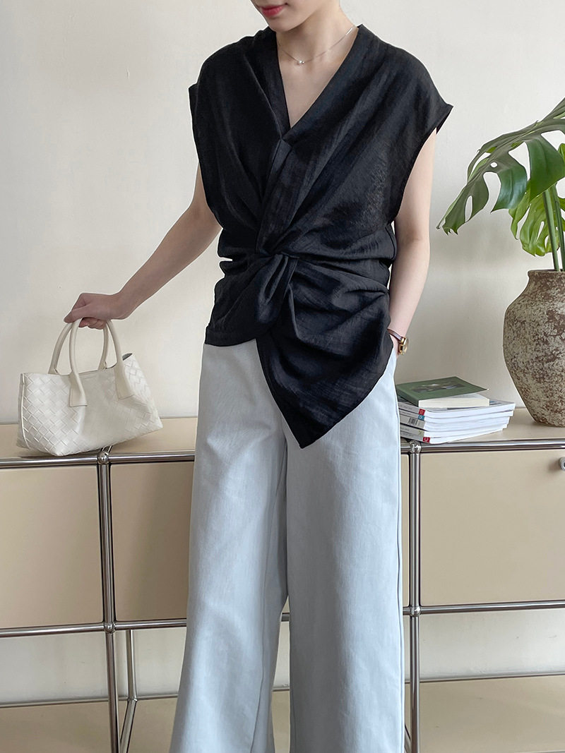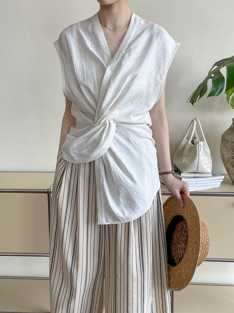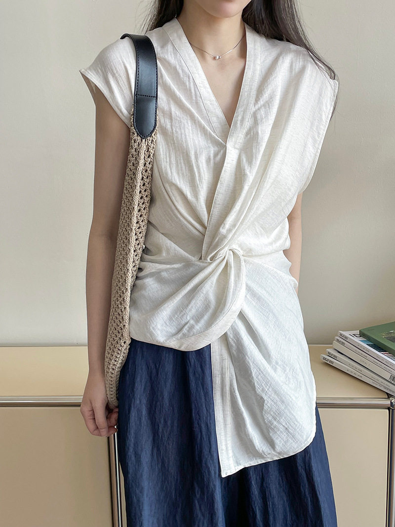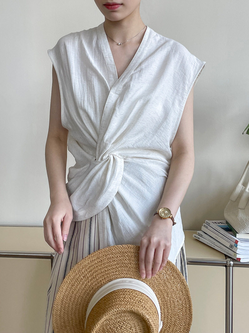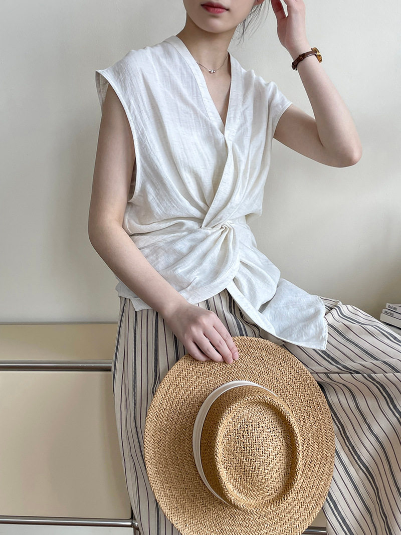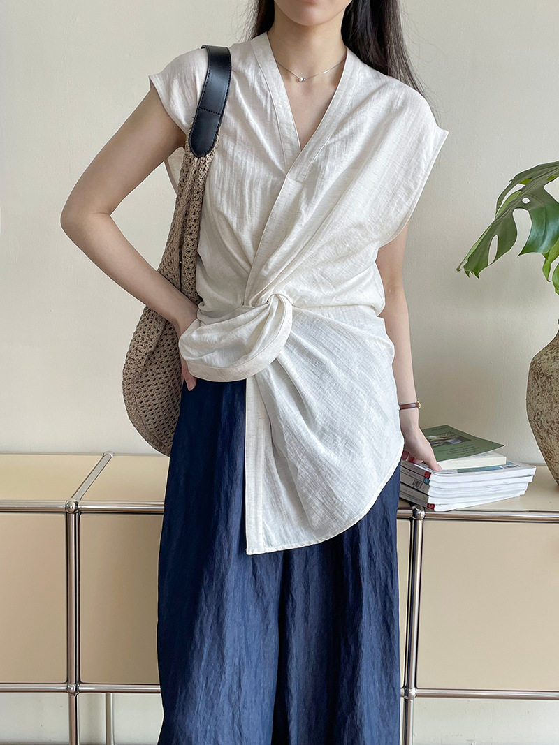 [商品名稱] [上衣] 夏季新品 V領 優雅輪廓 無袖襯衫 [JZ系列]