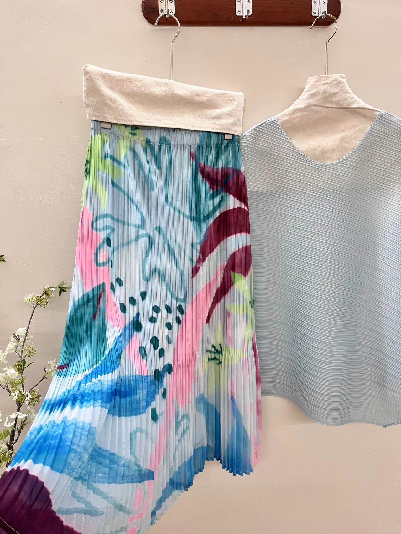 [下裝] 【單筆訂單】韓版夏裝不規則褶皺法式上衣+裙子套裝【SH系列】