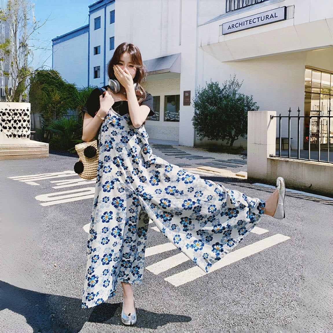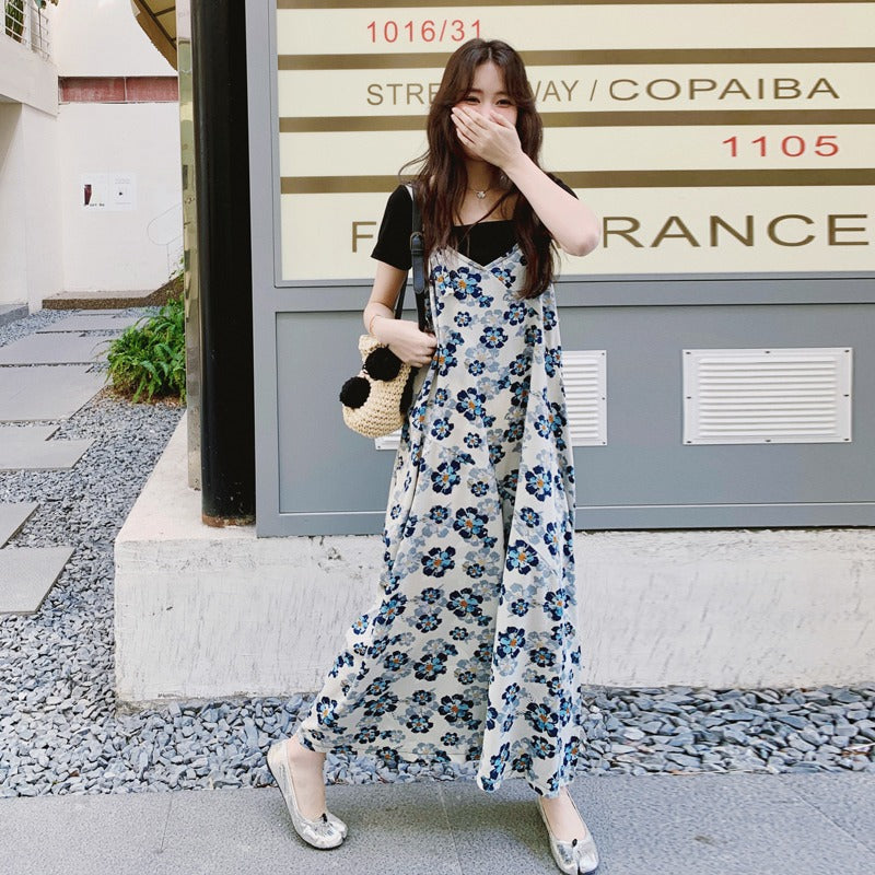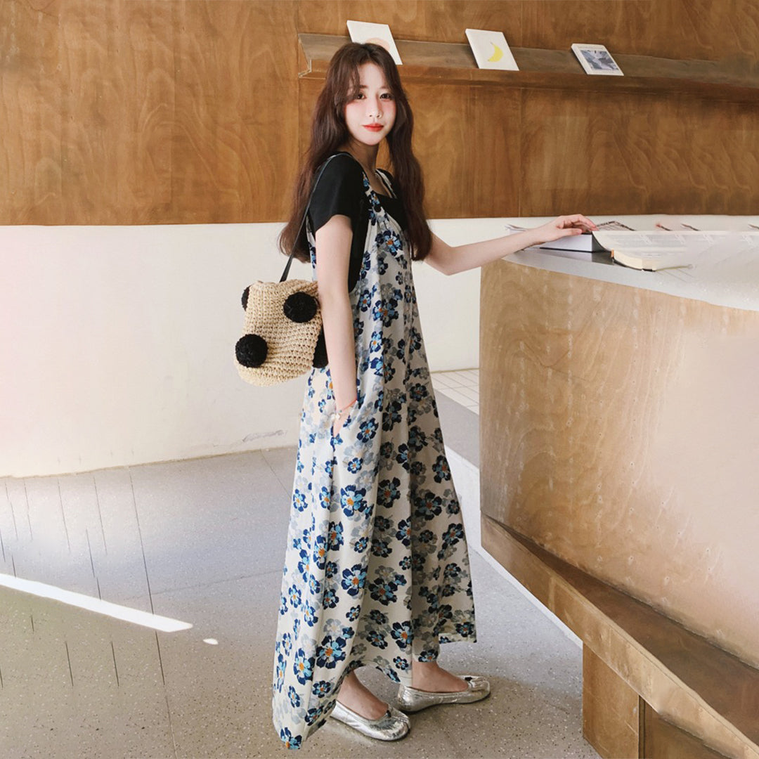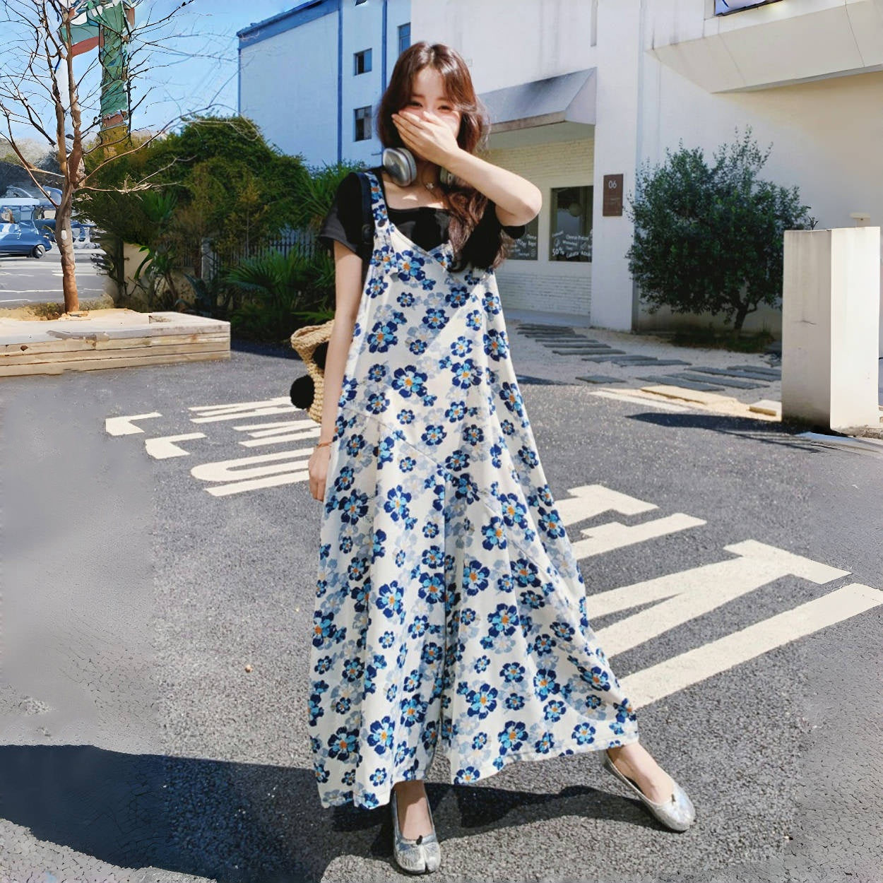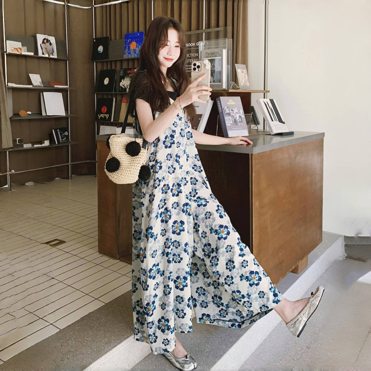 [洋裝] 夏季度假風格花卉圖案寬鬆休閒連身衣 [SH系列]