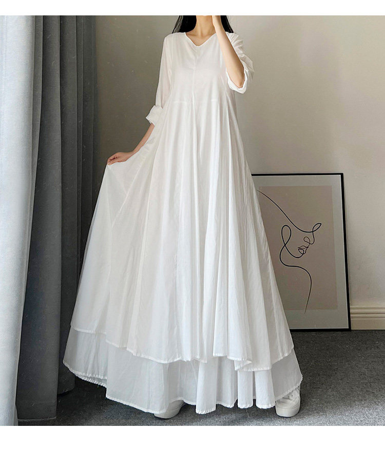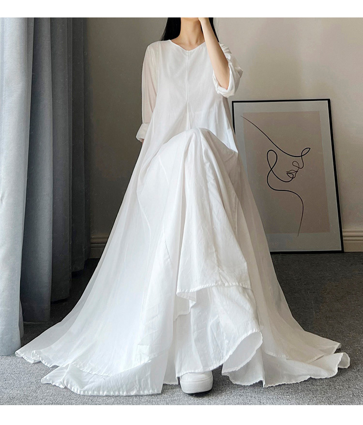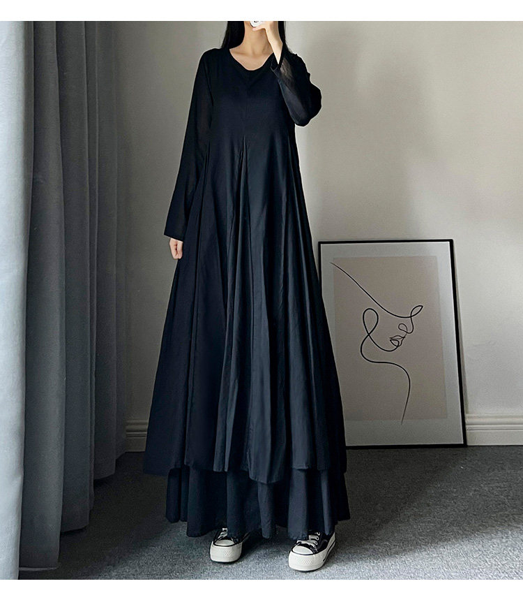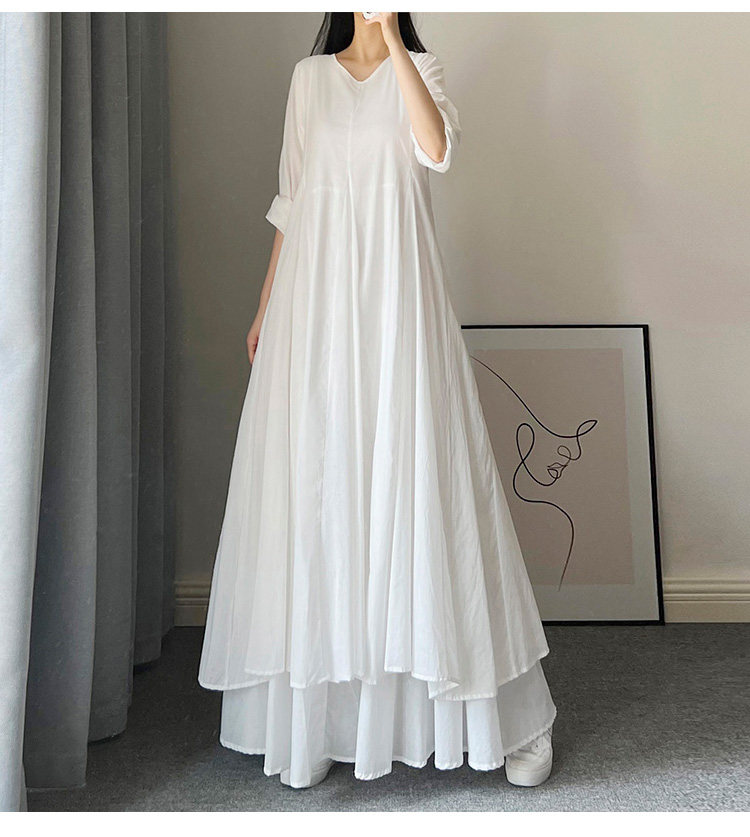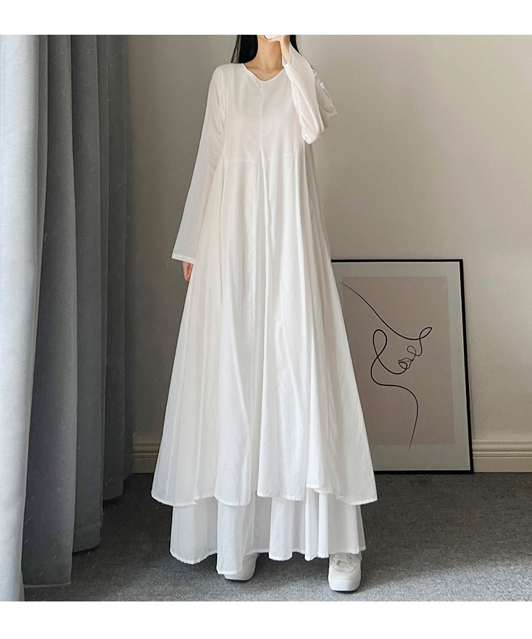 【商品名稱】【洋裝】夏季新品:復古喇叭廓形,100%純棉,文藝風,長袖連身裙
