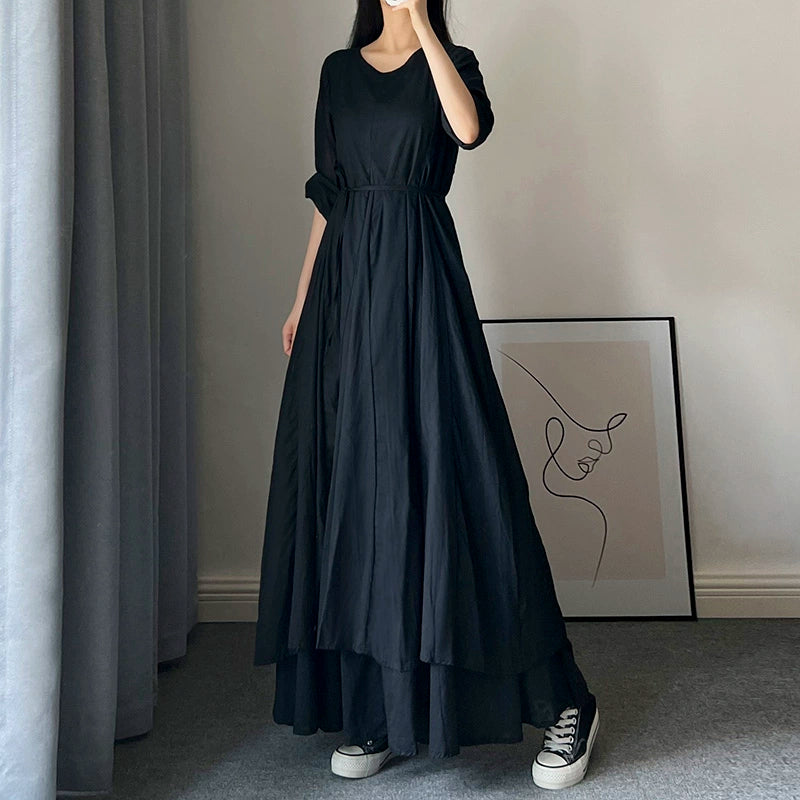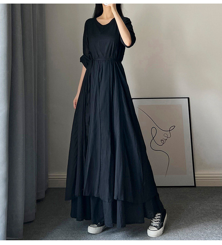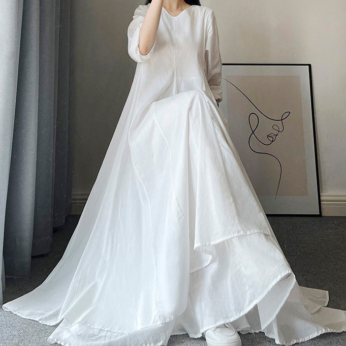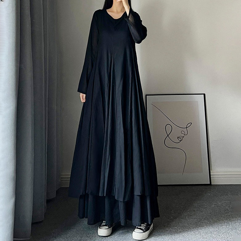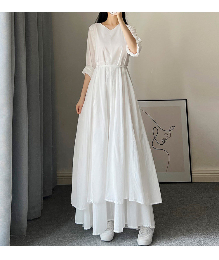 【商品名稱】【洋裝】夏季新品:復古喇叭廓形,100%純棉,文藝風,長袖連身裙